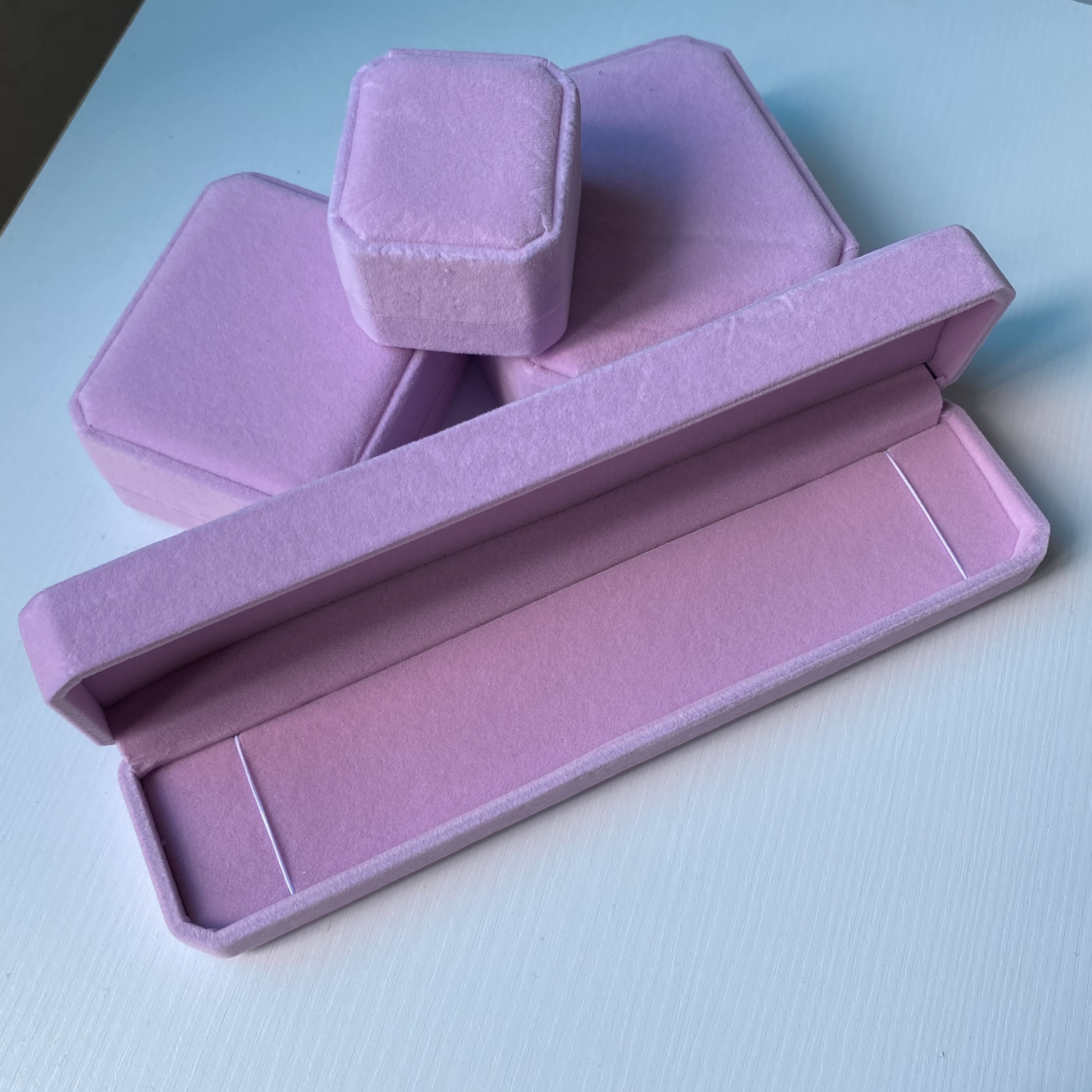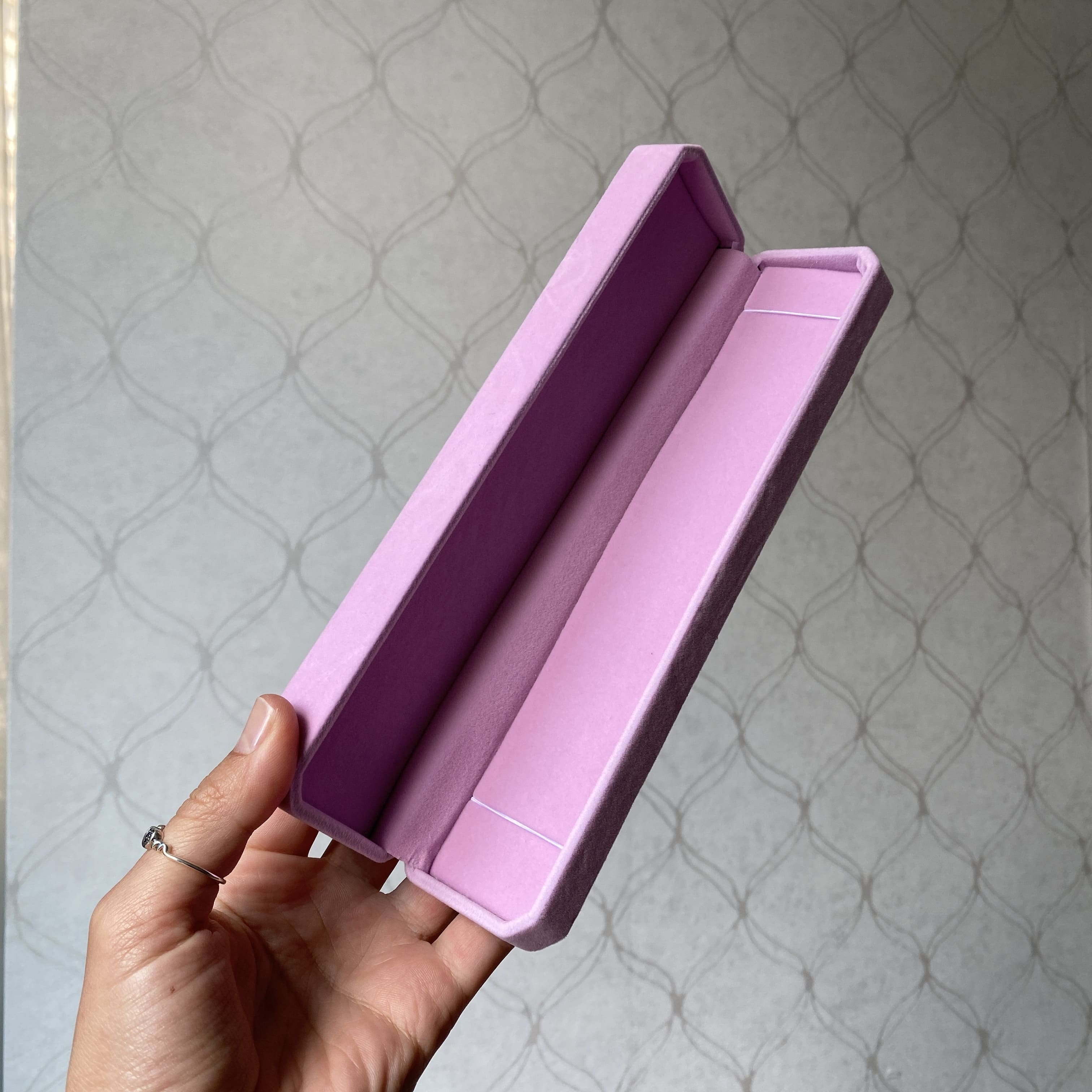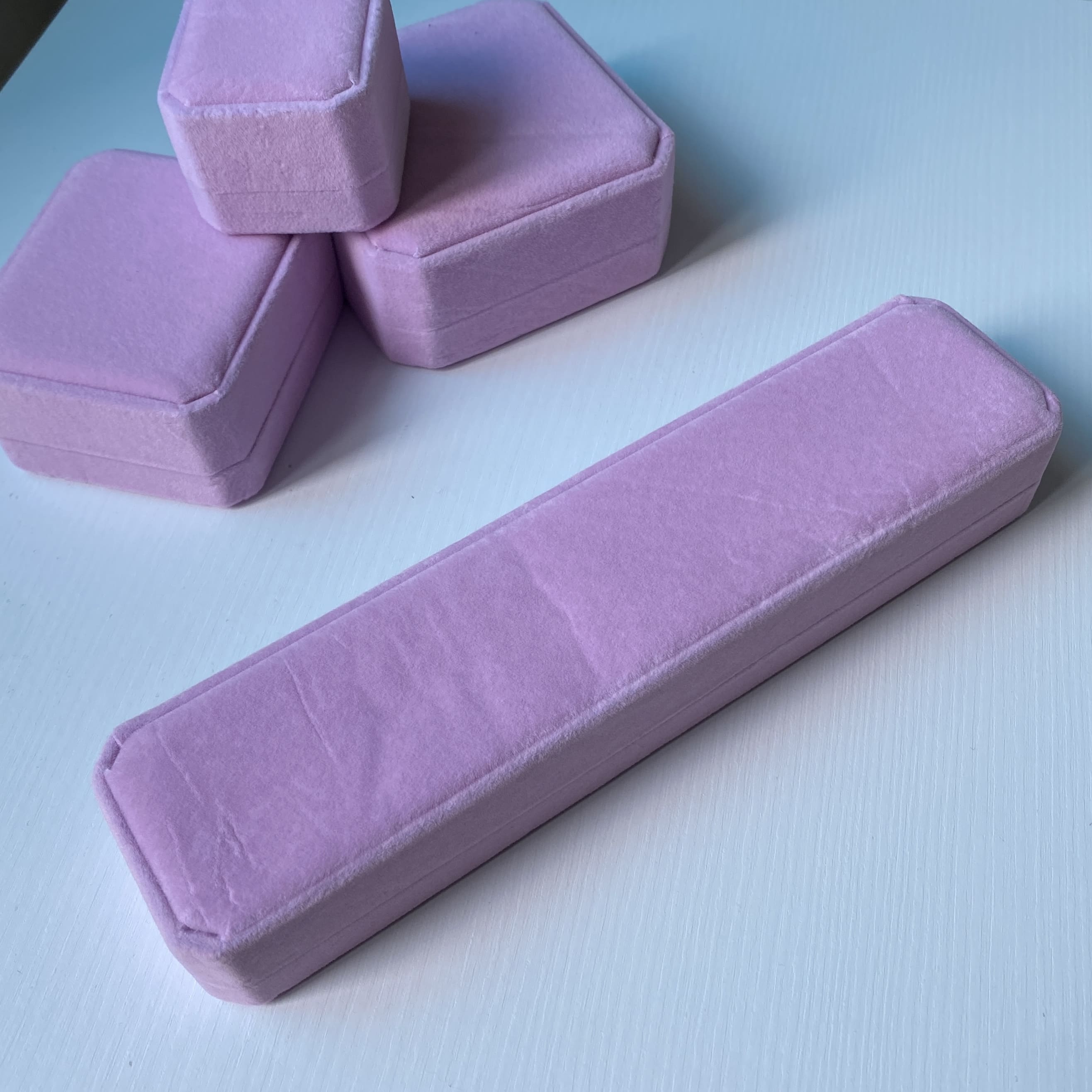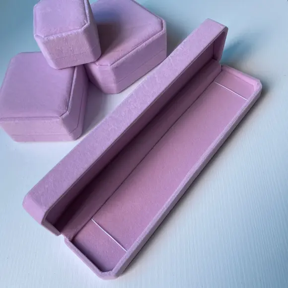Довга коробочка рожева велюрова для ланцюжка або браслета
