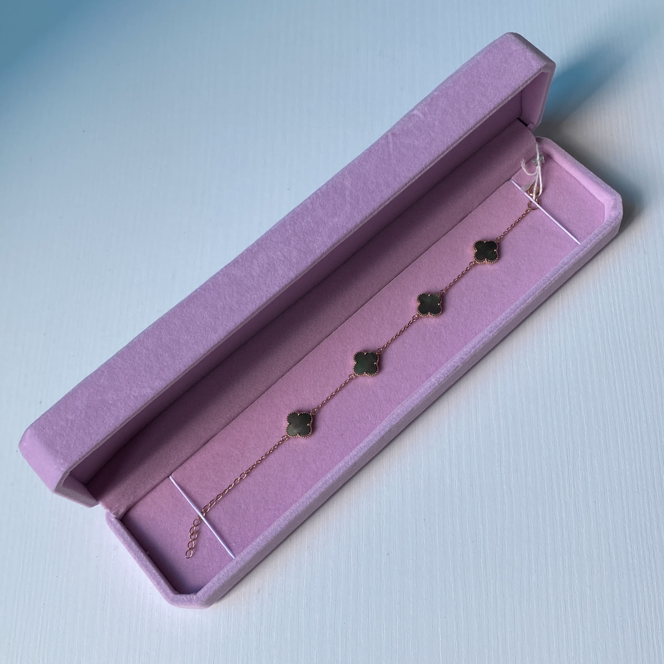 Купити пакування Довга коробочка рожева велюрова для ланцюжка або браслета окремо від прикрас можливо лише за умови повної попередньої оплати.