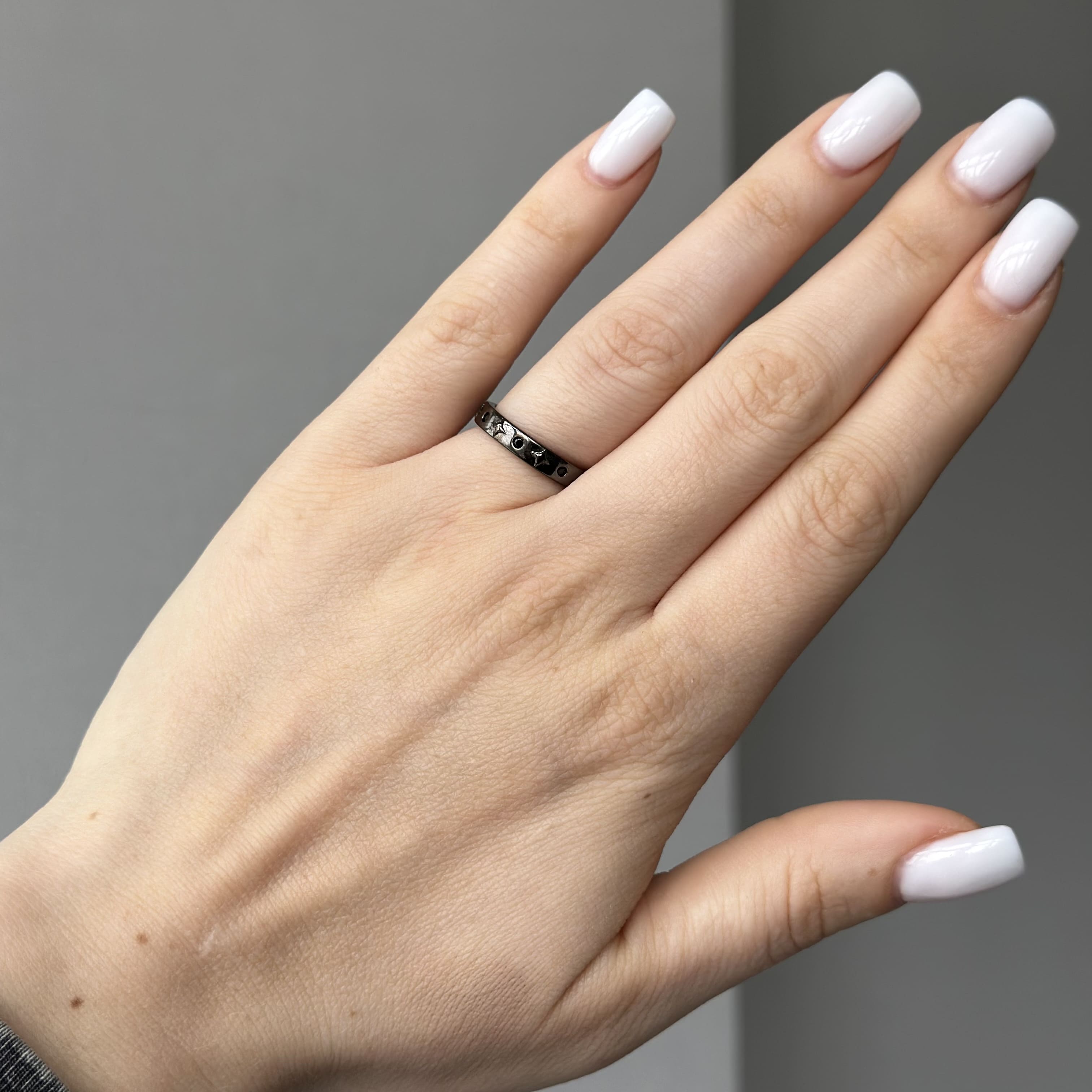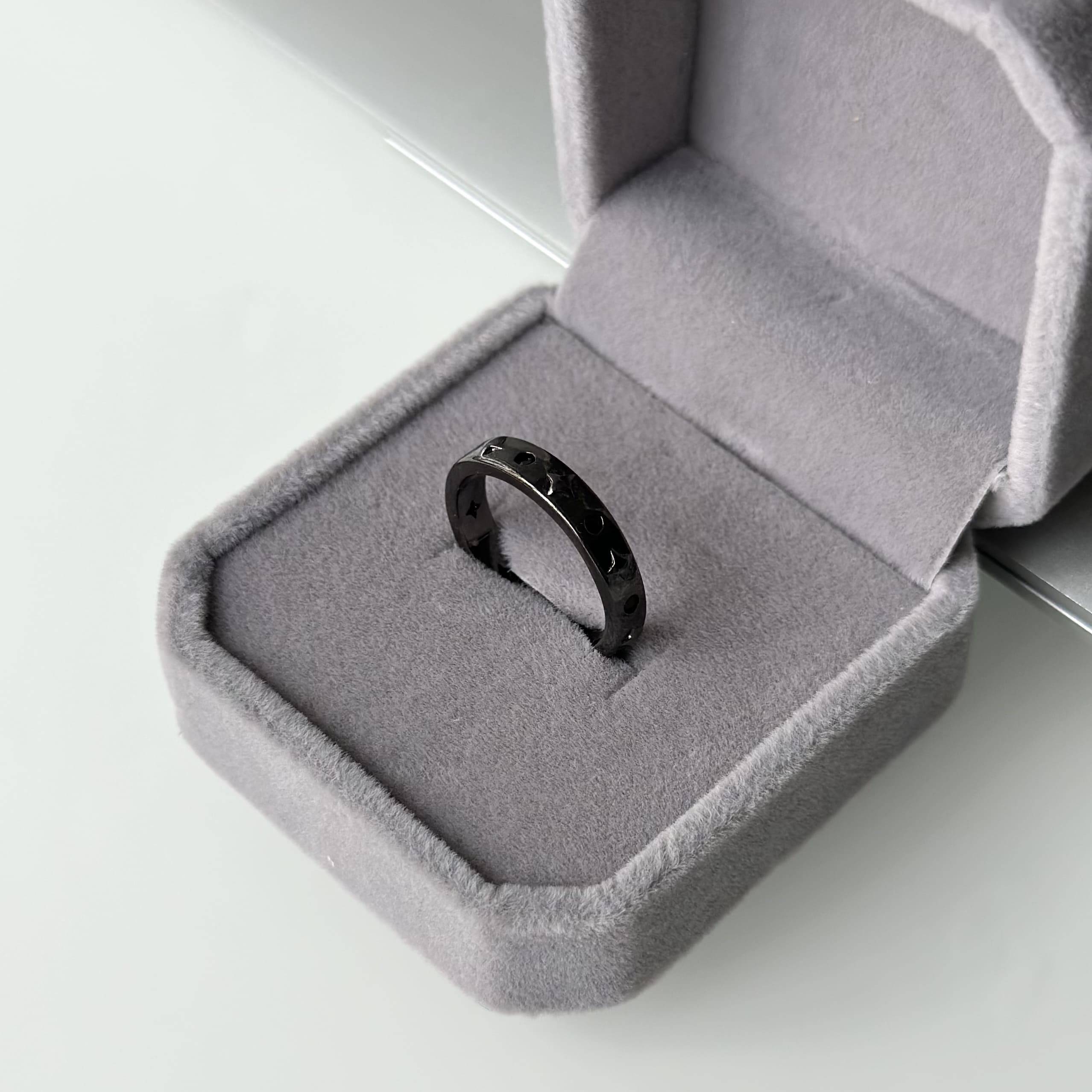 Не пропустіть можливість придбати цю стильну каблучку, яка підкреслить ваш індивідуальний стиль і додасть вашому образу завершеності. Каблучка «Чорна з зірками» – це не просто прикраса, це ваш особистий символ, який буде супроводжувати вас на кожному кроці.