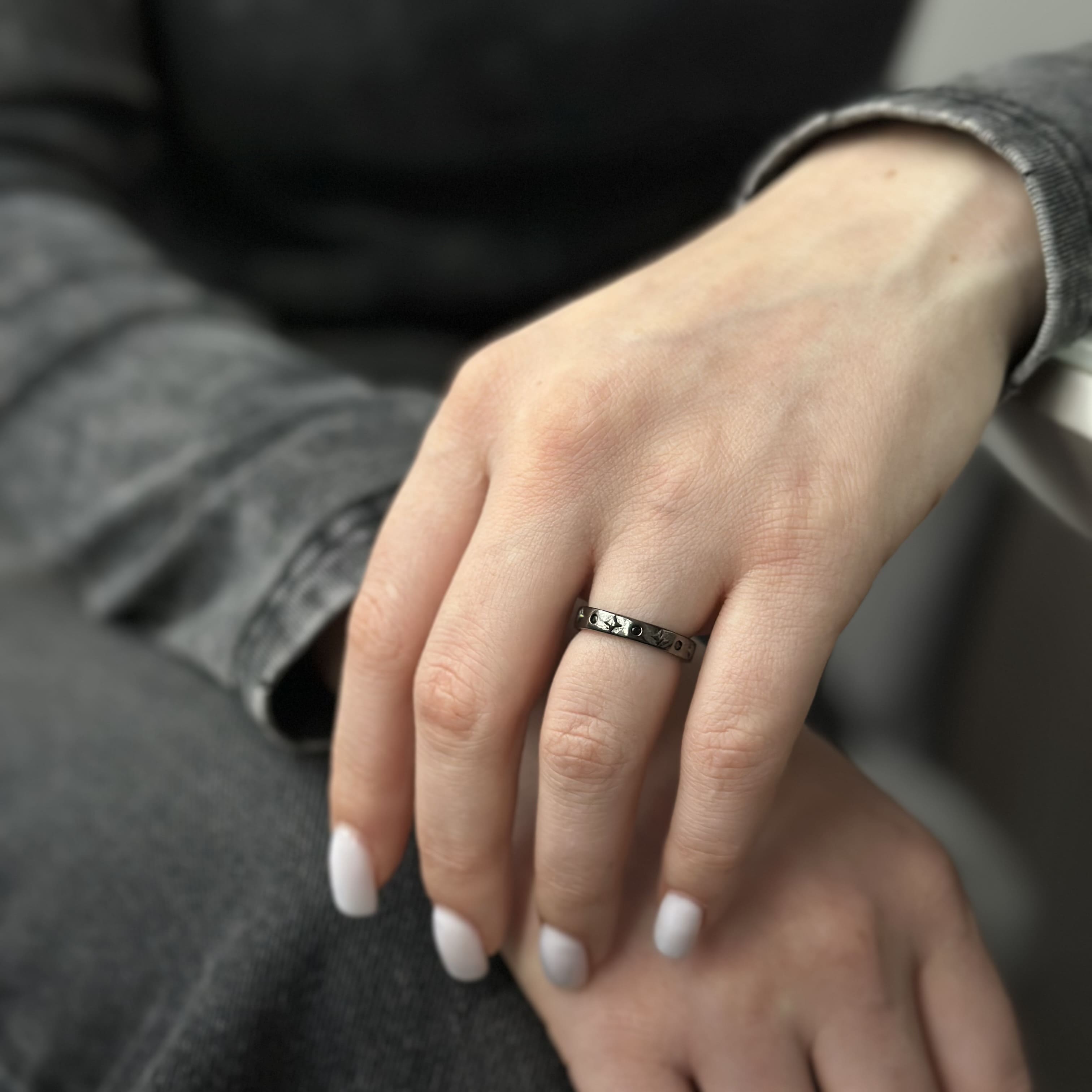 Ця каблучка стане ідеальним аксесуаром для тих, хто прагне виділитися з натовпу. Вона чудово доповнить як повсякденний, так і вечірній образ, додаючи йому нотки оригінальності та неповторності. Стриманий, але в той же час ефектний дизайн з чорним покриттям робить каблучку універсальною прикрасою, яка пасуватиме до будь-якого стилю одягу.