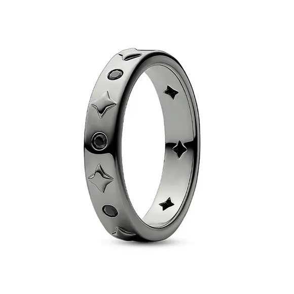 Каблучка «Чорна з зірками» – це не просто прикраса, це справжнє відображення стилю та індивідуальності. Виготовлена зі срібла високої якості, ця каблучка має елегантне чорне покриття, яке додає їй сучасного вигляду та витонченості. По всьому периметру каблучки розташовані мініатюрні зірки, що надають виробу загадковості та унікальності.
