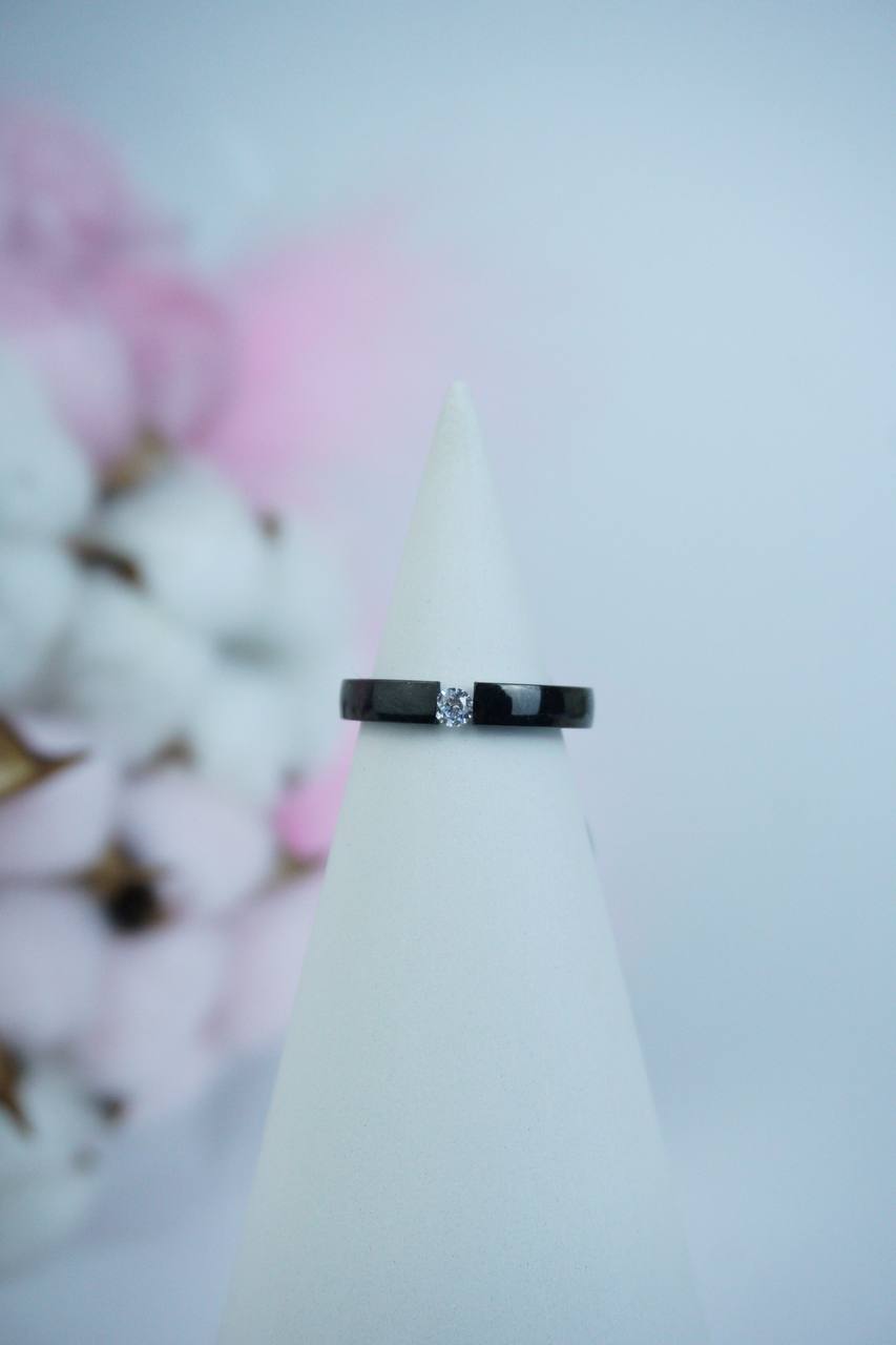 Чорний колір каблучки виражає загадковість та елегантність, а єдиний камінчик створює акцент, який привертає увагу. Ця прикраса ідеально підійде для носіння як у повсякденному образі, так і на особливих подіях.