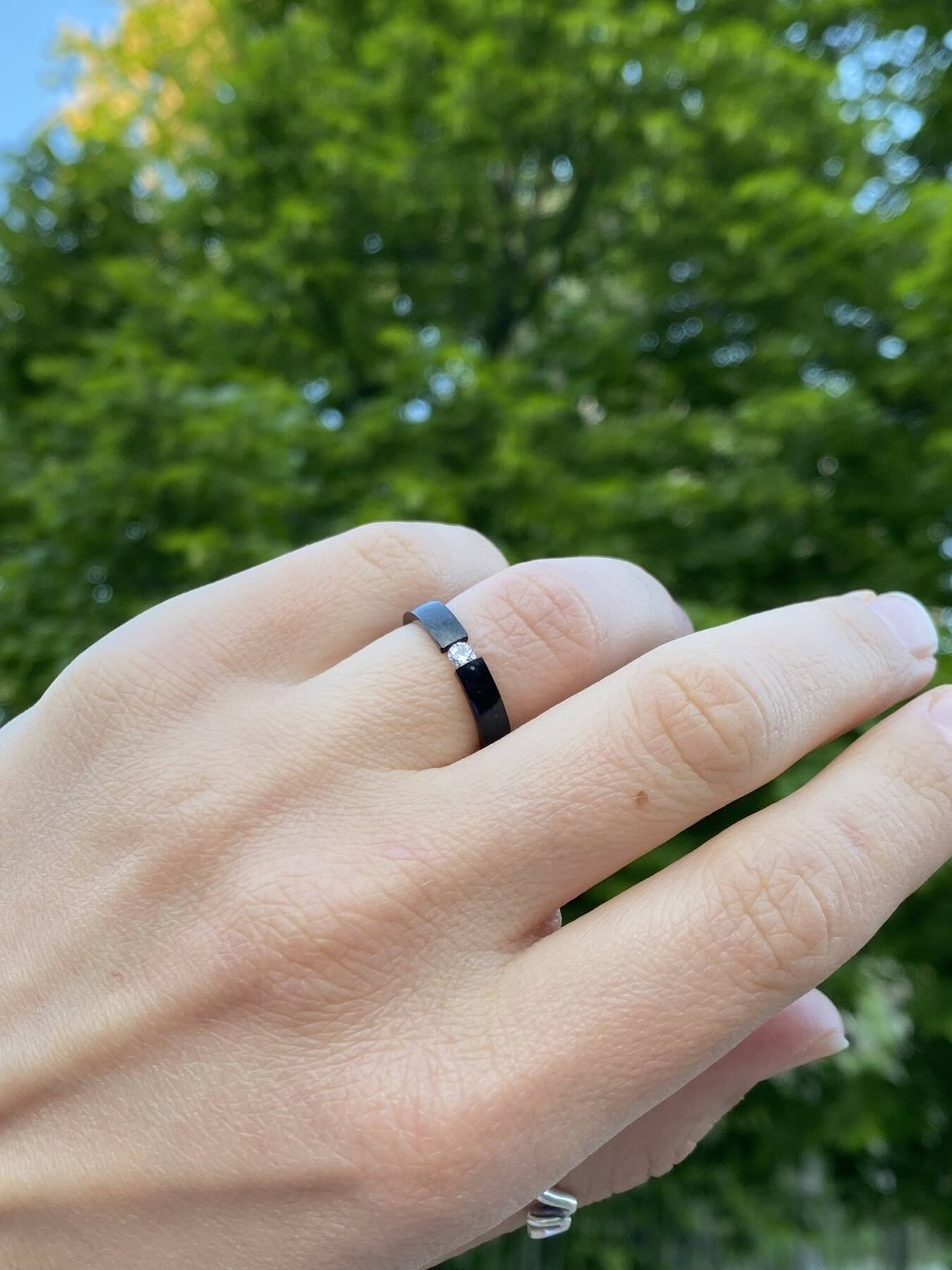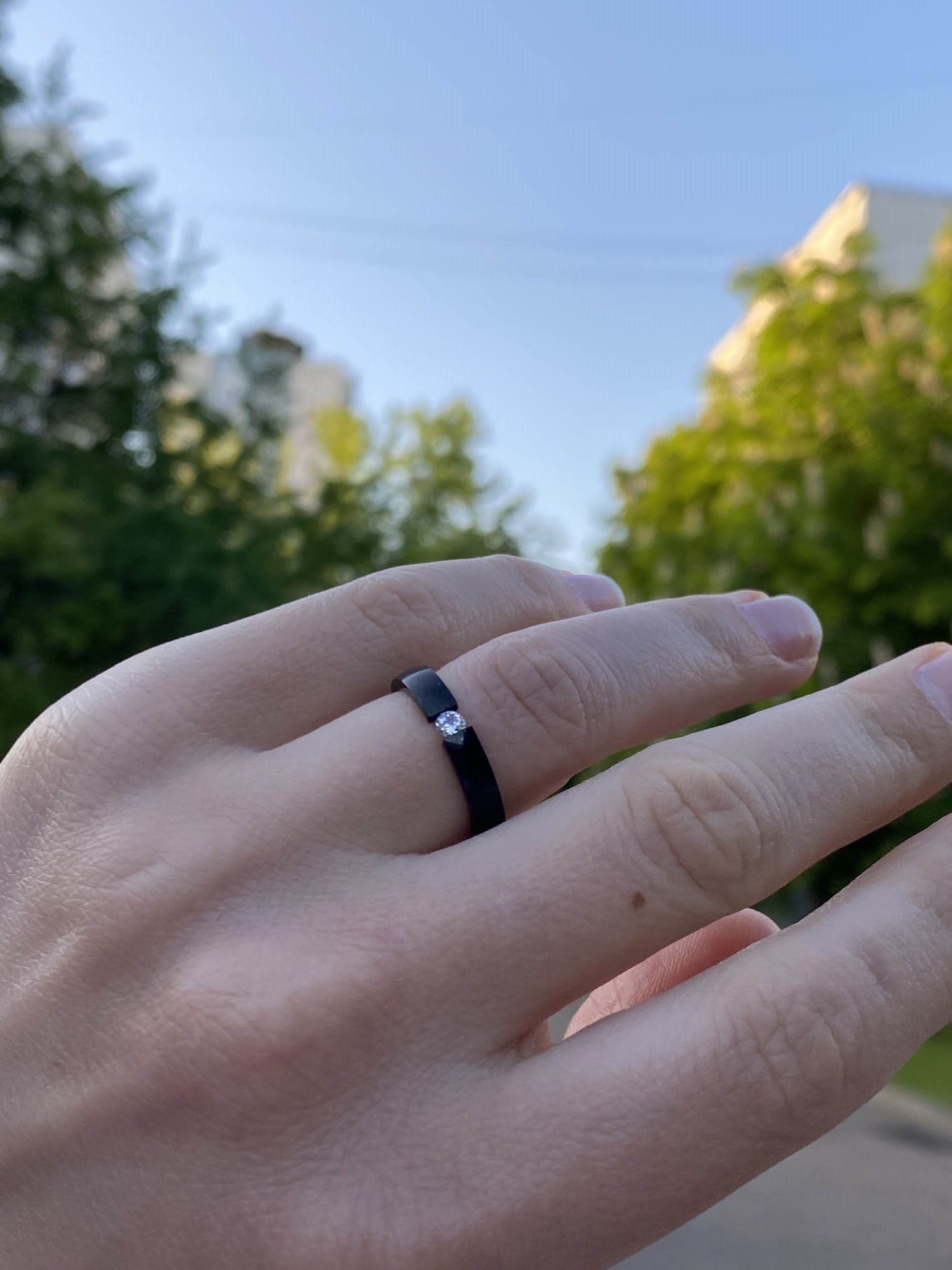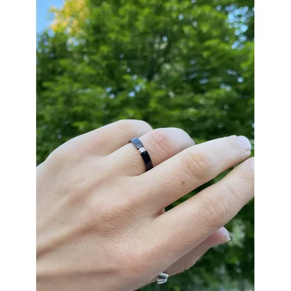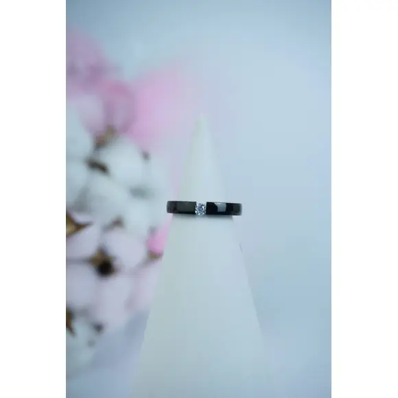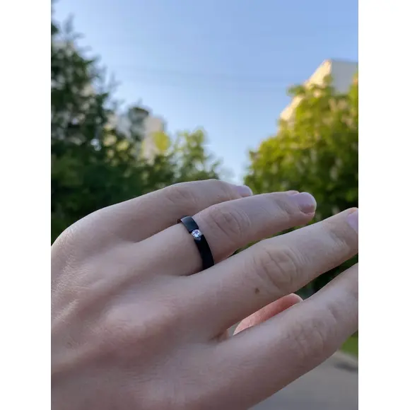 Каблучка керамічна "Камінчик" - елегантна та надзвичайно стильна прикраса для вашого зап'ястя. Ця чорна каблучка виготовлена з високоякісної кераміки і прикрашена дискретним камінчиком, що надає їй тонкий блиск.