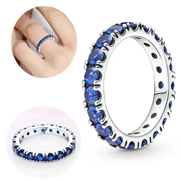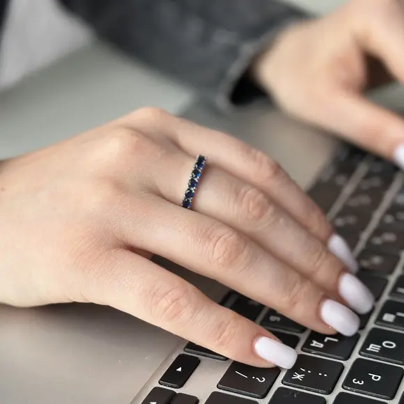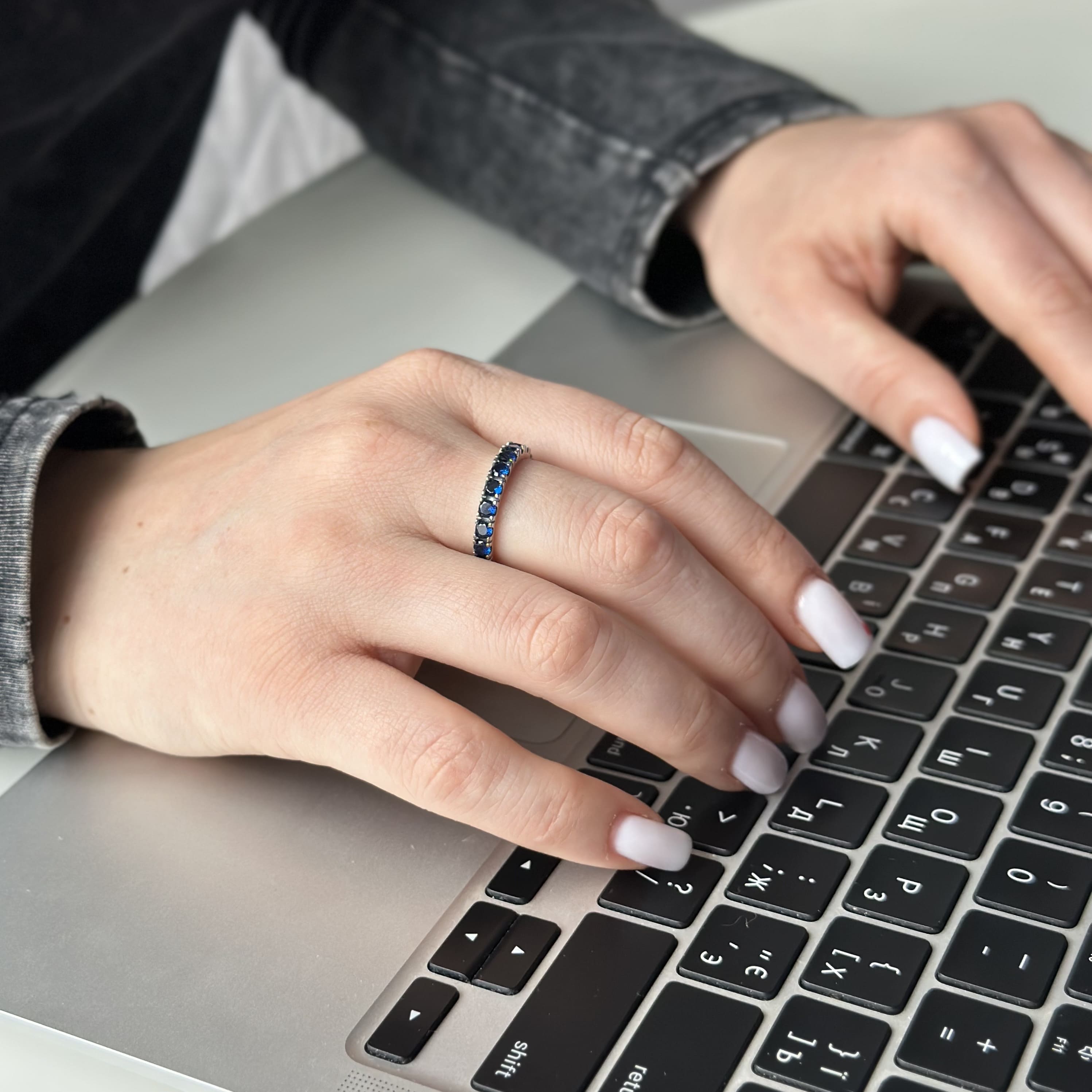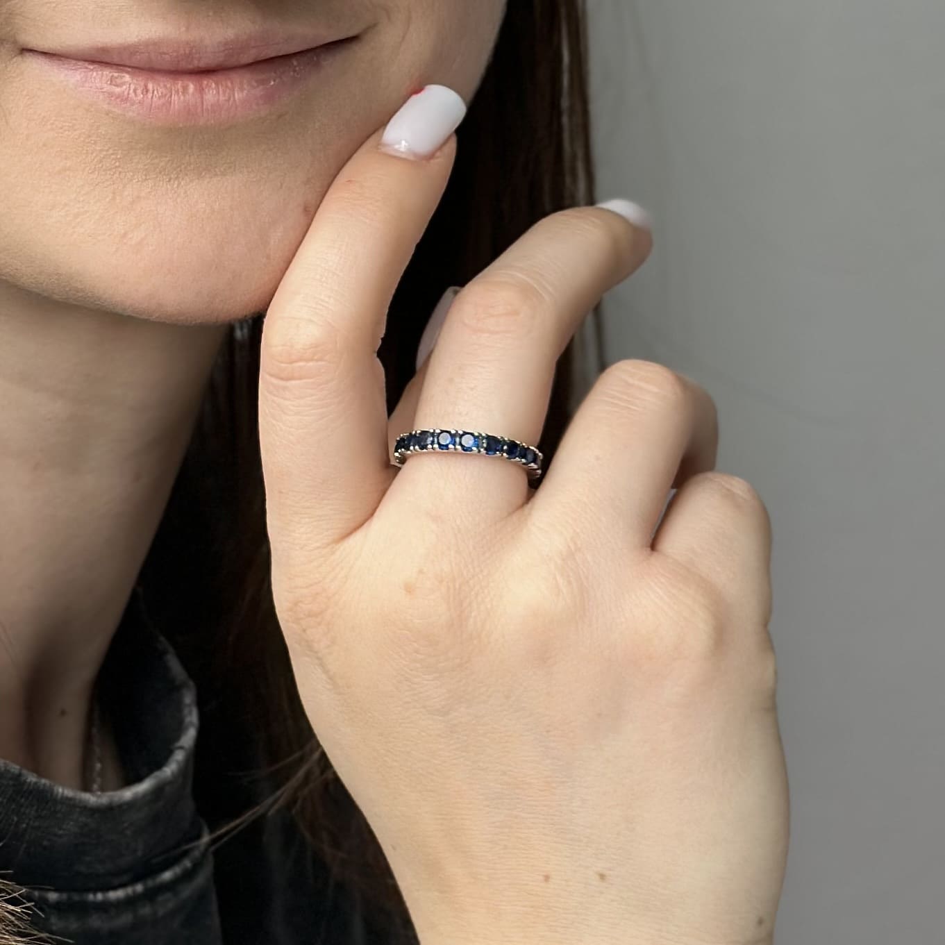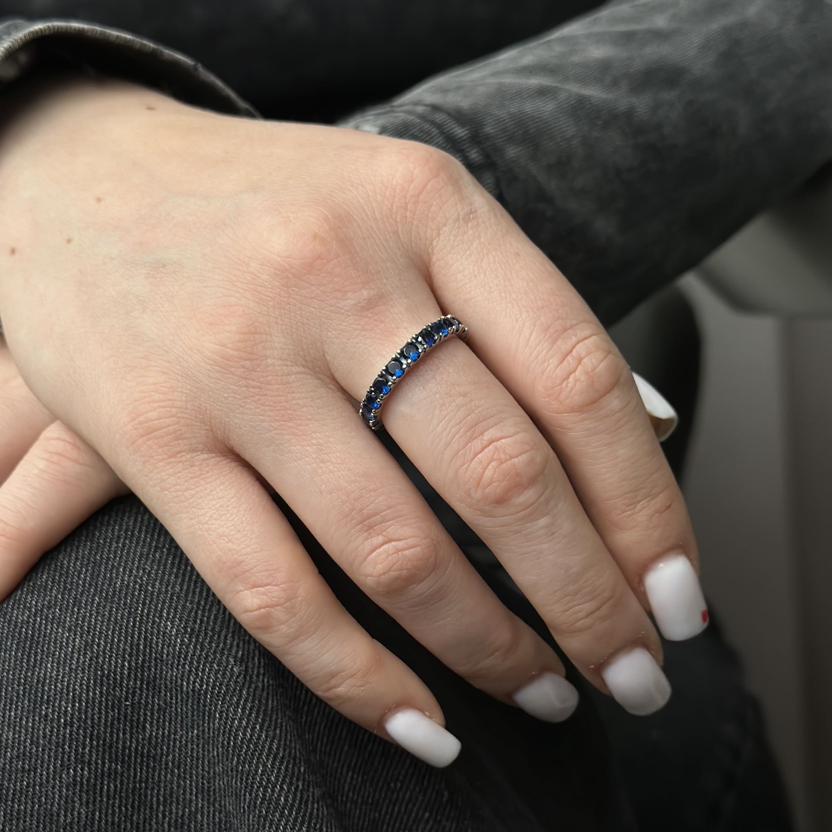 Ідеальний вибір для тих, хто шукає щось особливе, каблучка «Рядочок з синіми кристалами» підходить для подарунка на будь-яке свято чи просто для того, щоб порадувати себе.