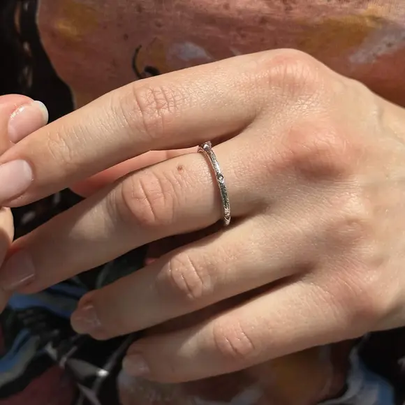 Текстурована каблучка з камінцями стане прекрасним подарунком для близької людини. Її можна дарувати на день народження, ювілей, заручини або іншу важливу подію. Ця прикраса символізує увагу до деталей, любов та турботу, роблячи кожен момент особливим та незабутнім.
