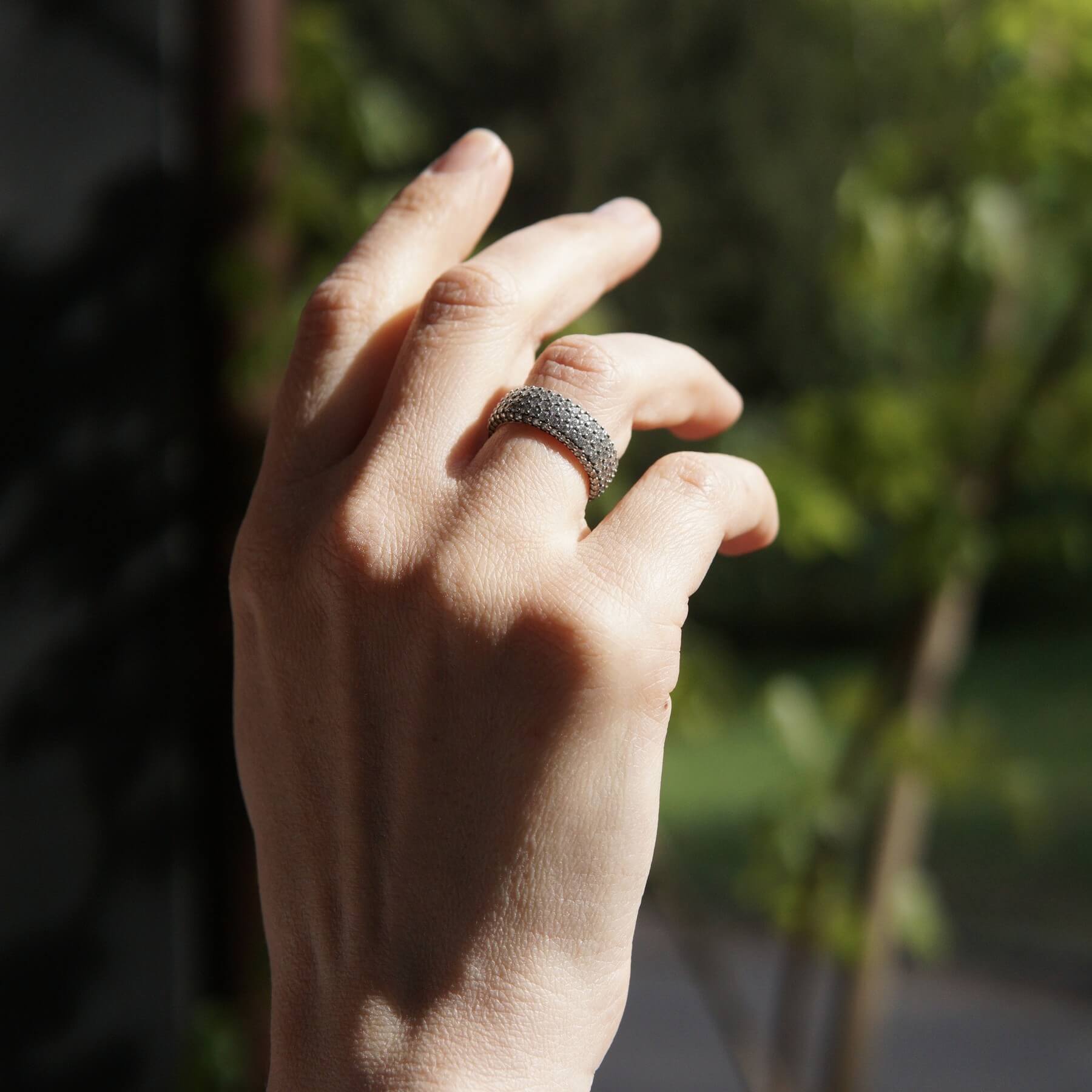 Оберіть каблучку "Три ряди паве", щоб виразити свій стиль та прикрасити своє зап'ястя неповторною елегантністю. Ця прикраса стане виразом вашої вишуканості та стилізованої краси.