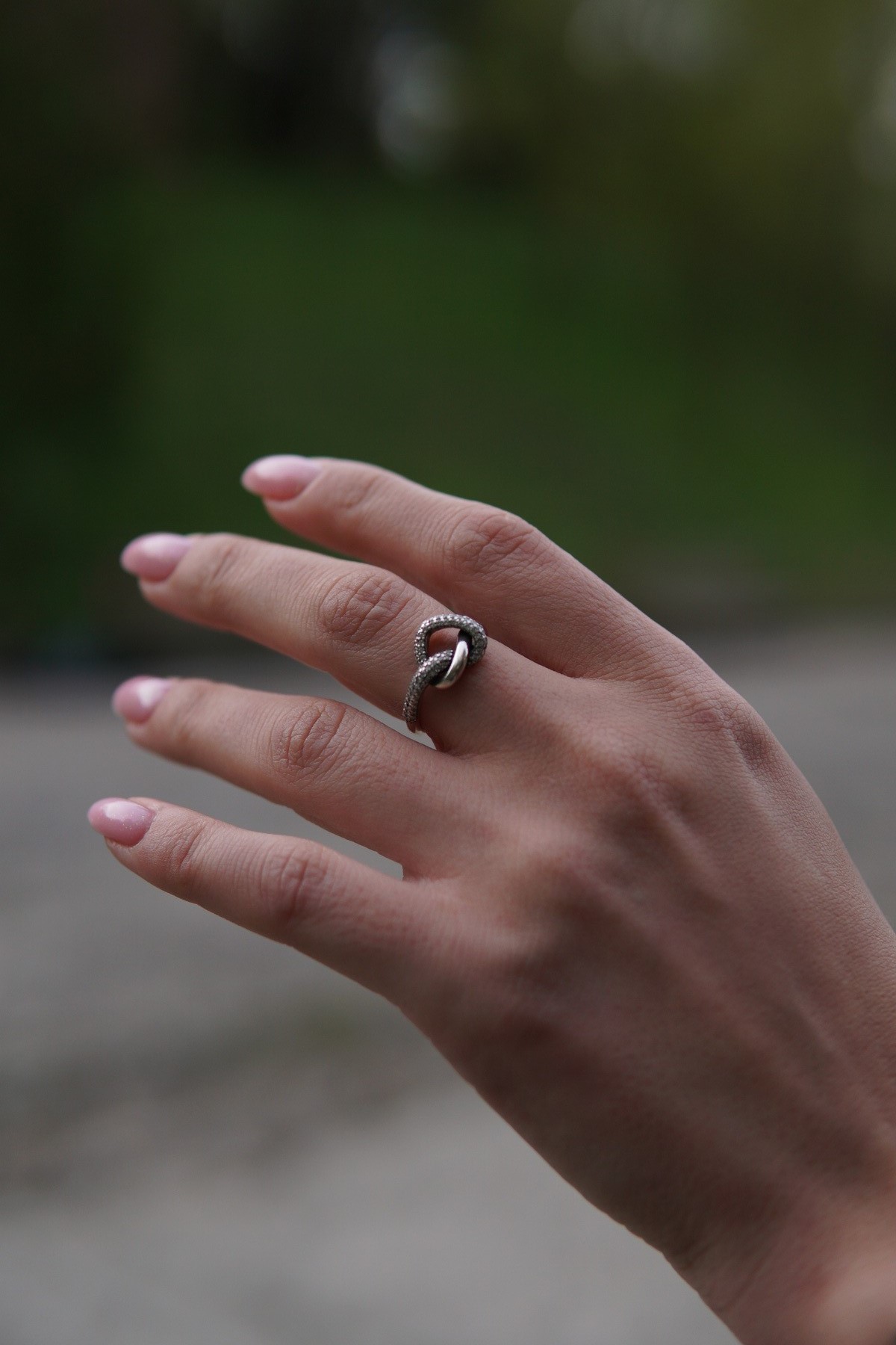 Ця каблучка втілює в собі магію та силу взаємодії, створюючи зв'язок, який незримий, але відчутний. Кожна іскра камінчиків на вузлику - це погляд коханої людини, миттєве щастя і тепло серця.