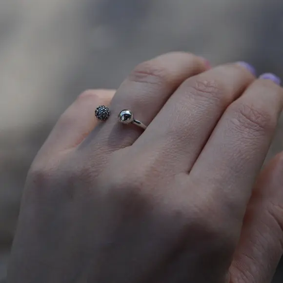Завдяки відкритій конструкції ця каблучка виглядає легкою та ніжною, як відкриті обійми, що огортають ваші почуття. Невеличкі камінчики, що прикрашають каблучку, додають блиску та шарму, підкреслюючи ваш унікальний стиль та смак.
