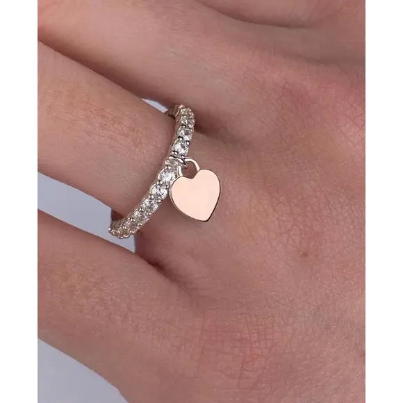 Головна деталь каблучки – маленька підвіска-серце з блискучою позолотою, яка вишукано звисає, додаючи прикрасі динаміки та акцентуючи увагу на руках. Такий аксесуар стає не просто ювелірним виробом, а справжнім символом любові, тепла і романтики.
