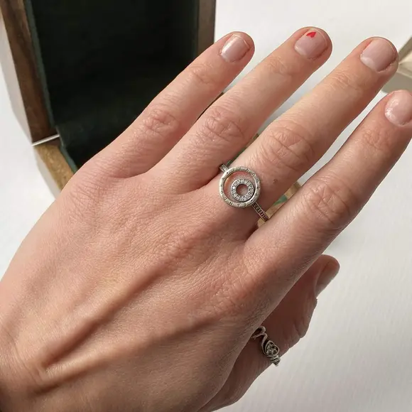 Логотип на каблучці виражає пристрасть до вишуканості та якісного дизайну. Кільця, що оточують логотип, додають прикрасі сучасний та трендовий акцент. Ця каблучка чудово підійде як для повсякденного використання, так і для особливих випадків.