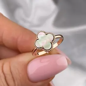 Срібна каблучка «Біла конюшина» у стилі Van Cleef – мінімалізм і вишуканість Срібна каблучка «Біла конюшина» у стилі Van Cleef – це поєднання мінімалістичного дизайну та символічного змісту. Вона виготовлена зі срібла 925 проби та оздоблена ніжною білою конюшиною, яка є символом удачі,...