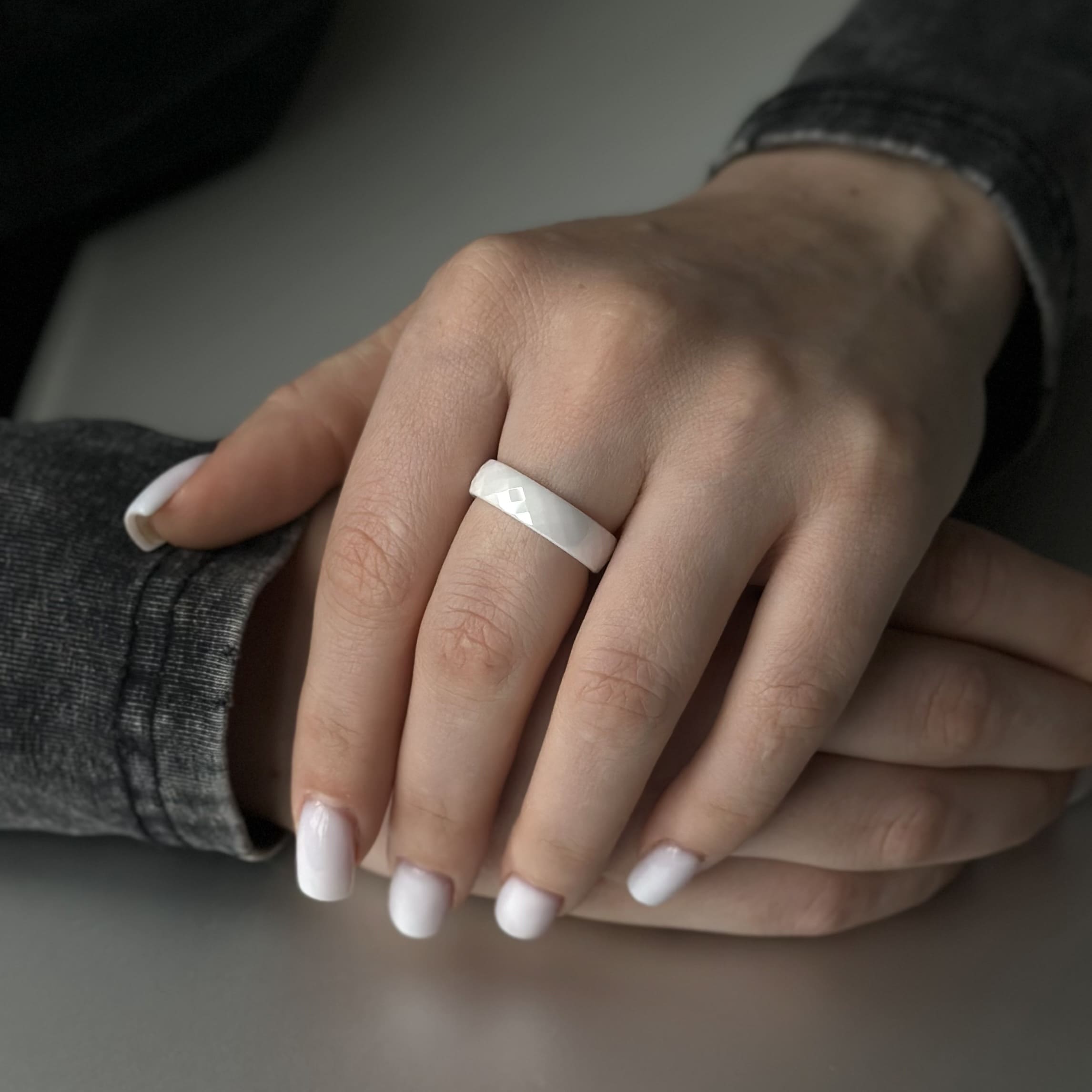 Ця каблучка виготовлена з високоякісної кераміки, що забезпечує їй міцність та довговічність. Багатогранна форма каблучки надає їй оригінальності та виразності, дозволяючи створити унікальний образ.