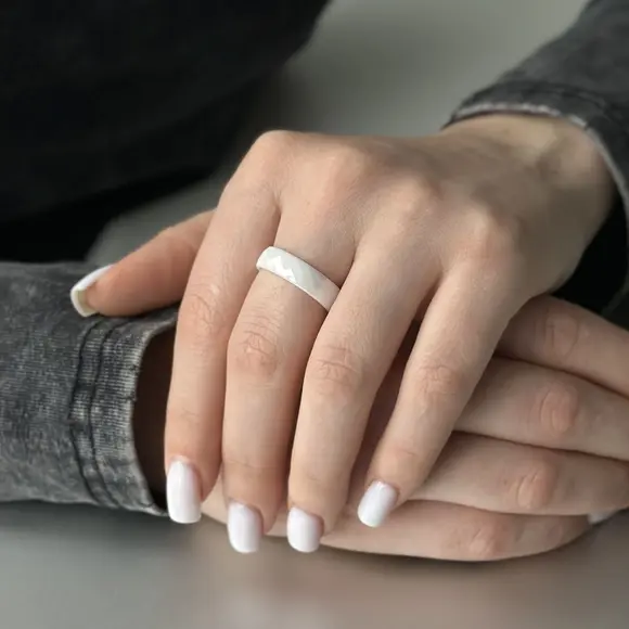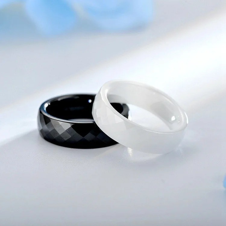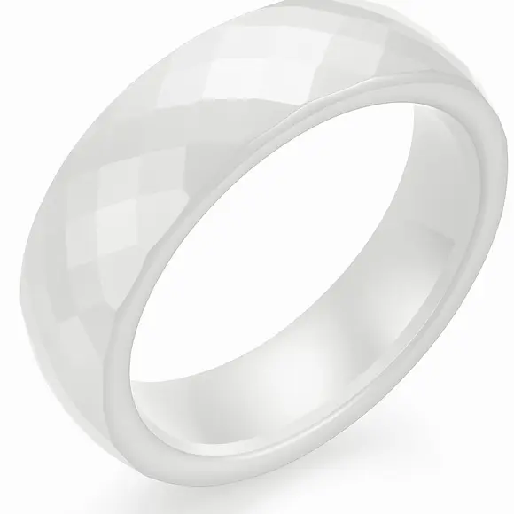 Біла керамічна каблучка ширини 6 мм - це втілення чистоти та елегантності. Її яскравий білий колір символізує світло та ніжність, створюючи образ чистоти та гармонії.