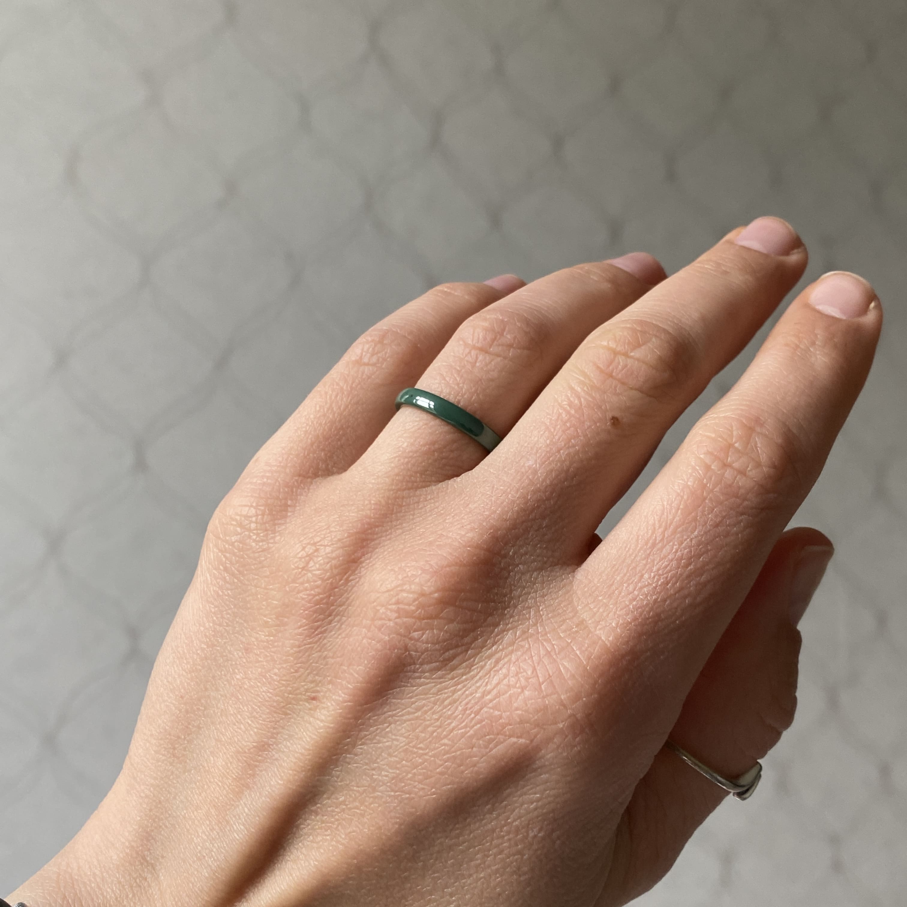 Керамічна каблучка зелена з перламутром 3 міліметри