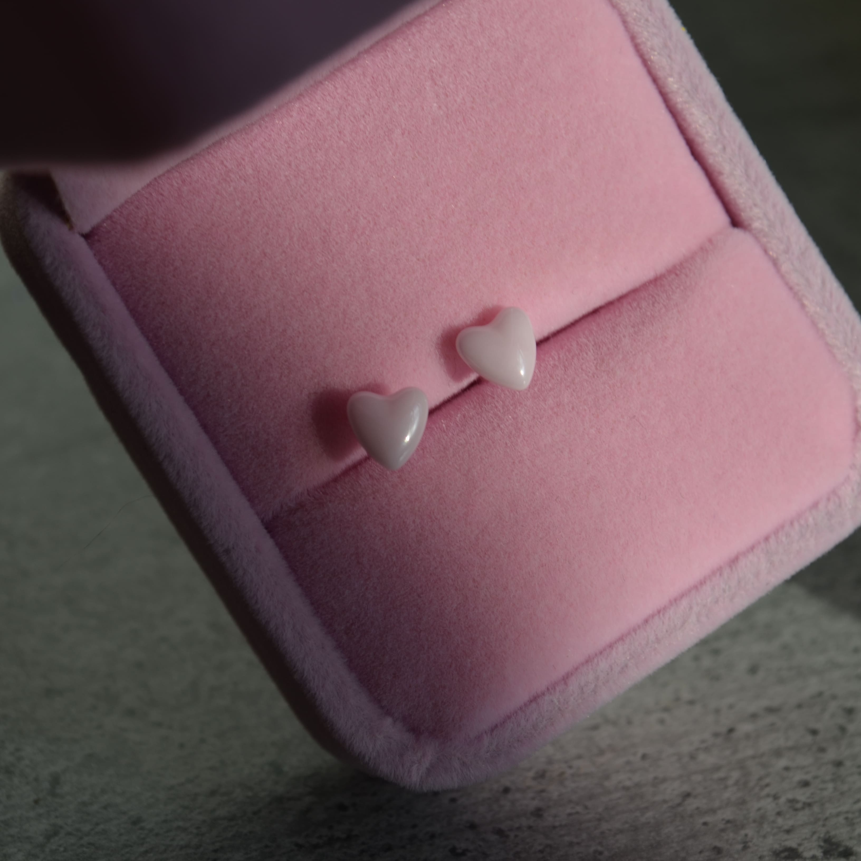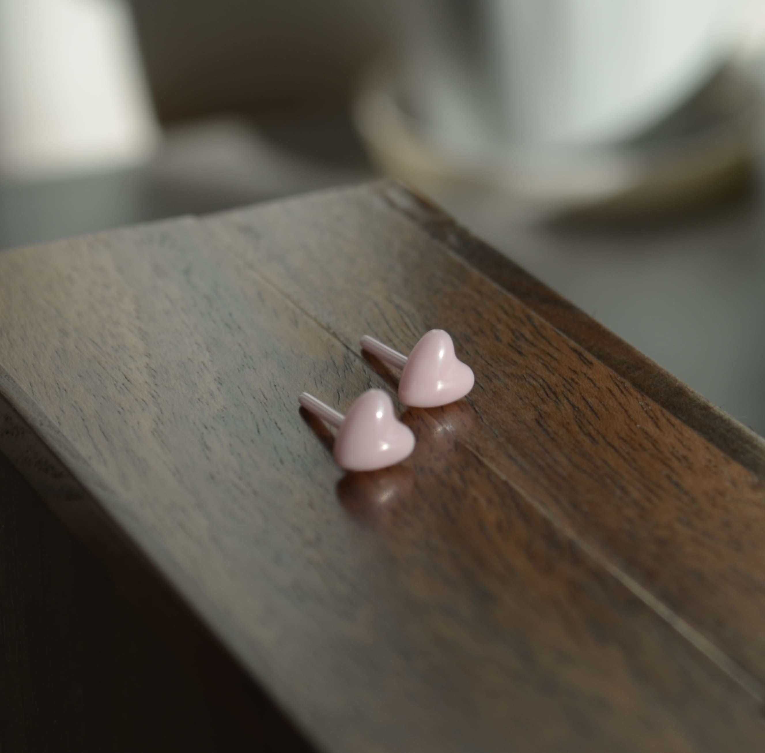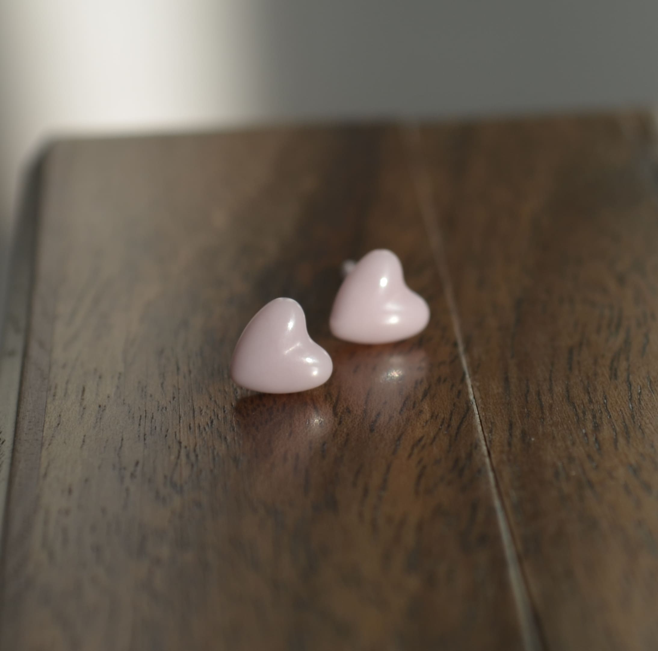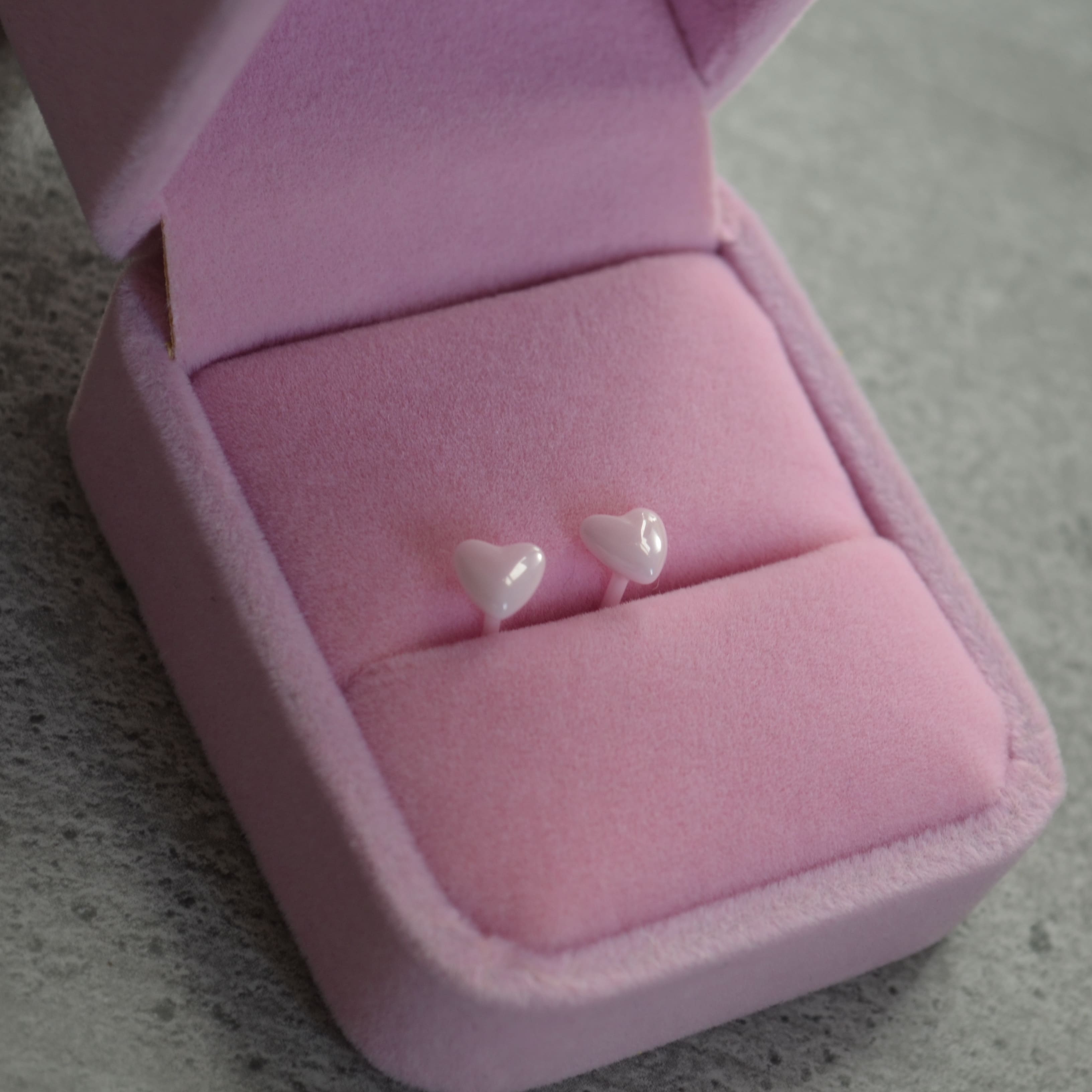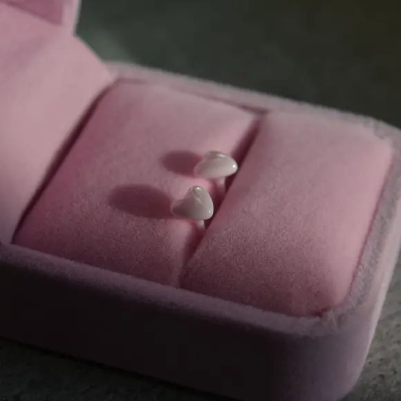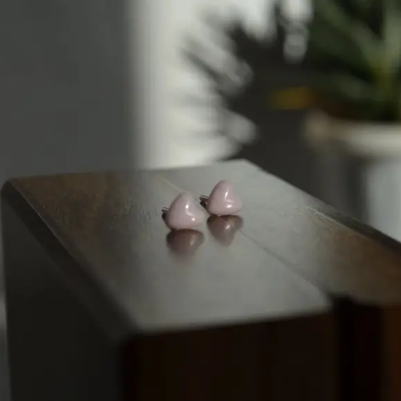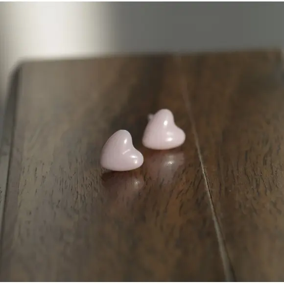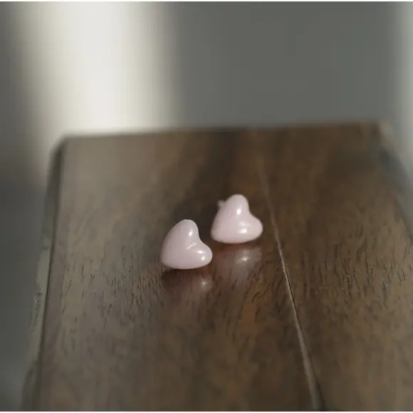 Керамічні пусети сердечко рожеве перламутр