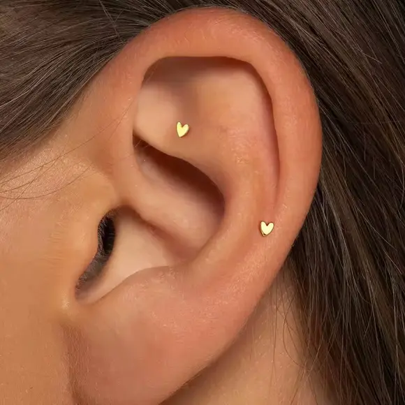 Міні пусети сердечка в позолоті