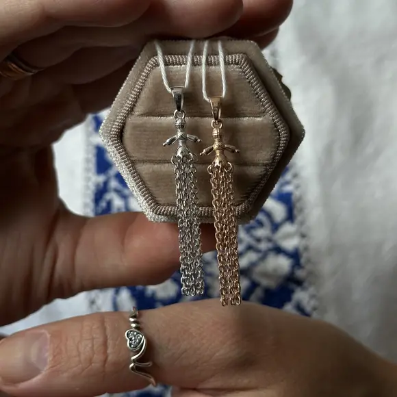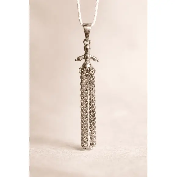Лялька-мотанка — один із найдавніших оберегів українського народу. Її створювали без обличчя, щоб у ній не оселився чужий дух, а натомість — зберігалася чиста енергія дому. Вона уособлювала життєву силу, захист, добробут, материнську турботу й родову пам’ять. Саме ці глибокі сенси лягли в основу дизайну срібної підвіски, яка поєднує традиційні мотиви з витонченістю сучасної прикраси.