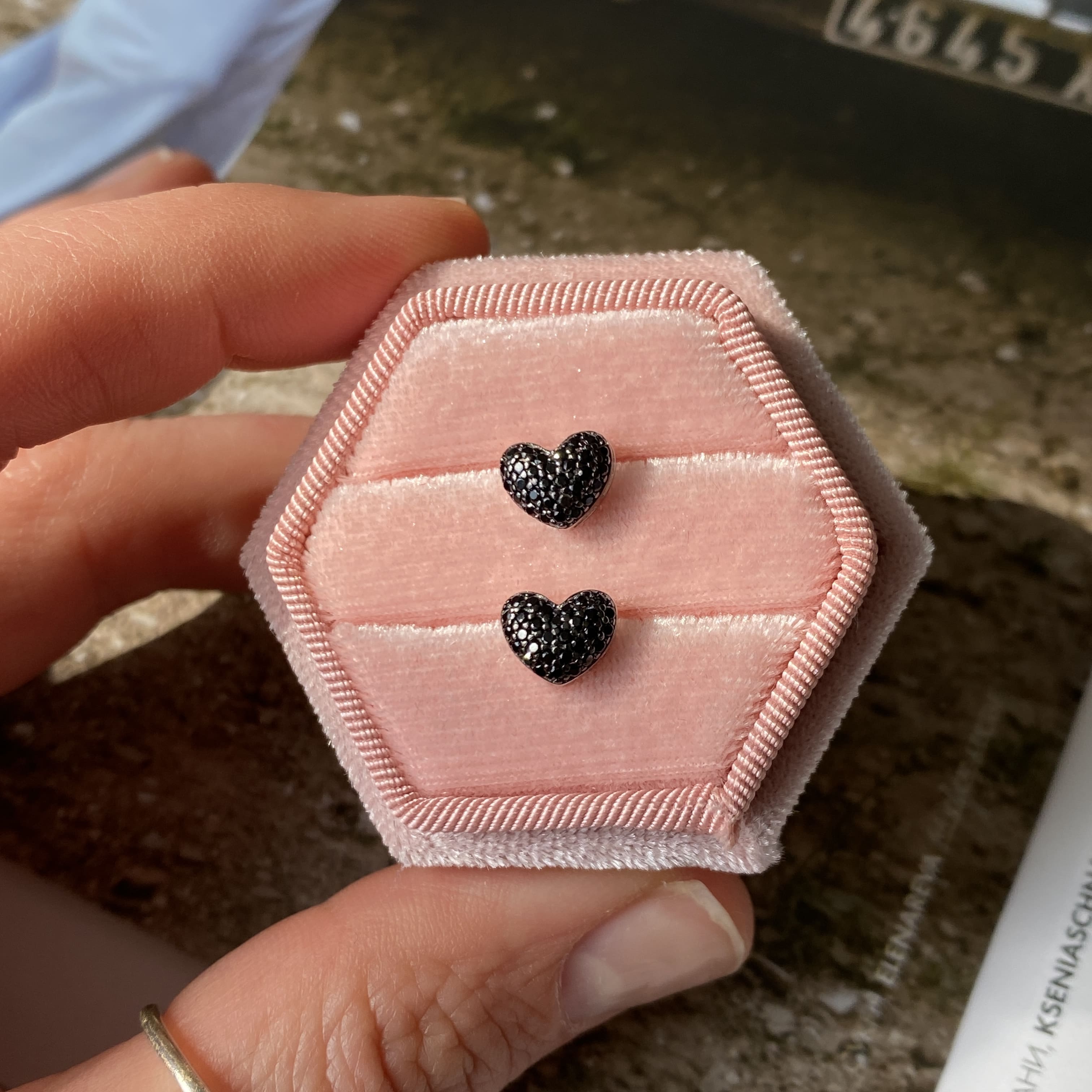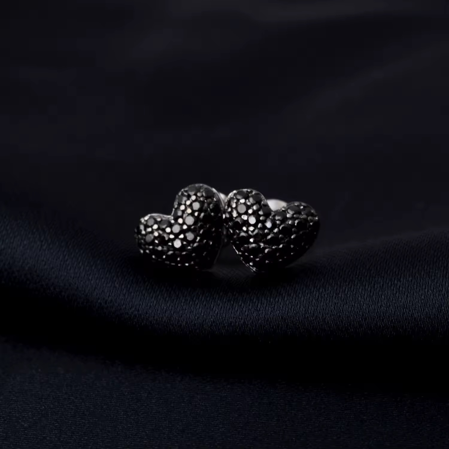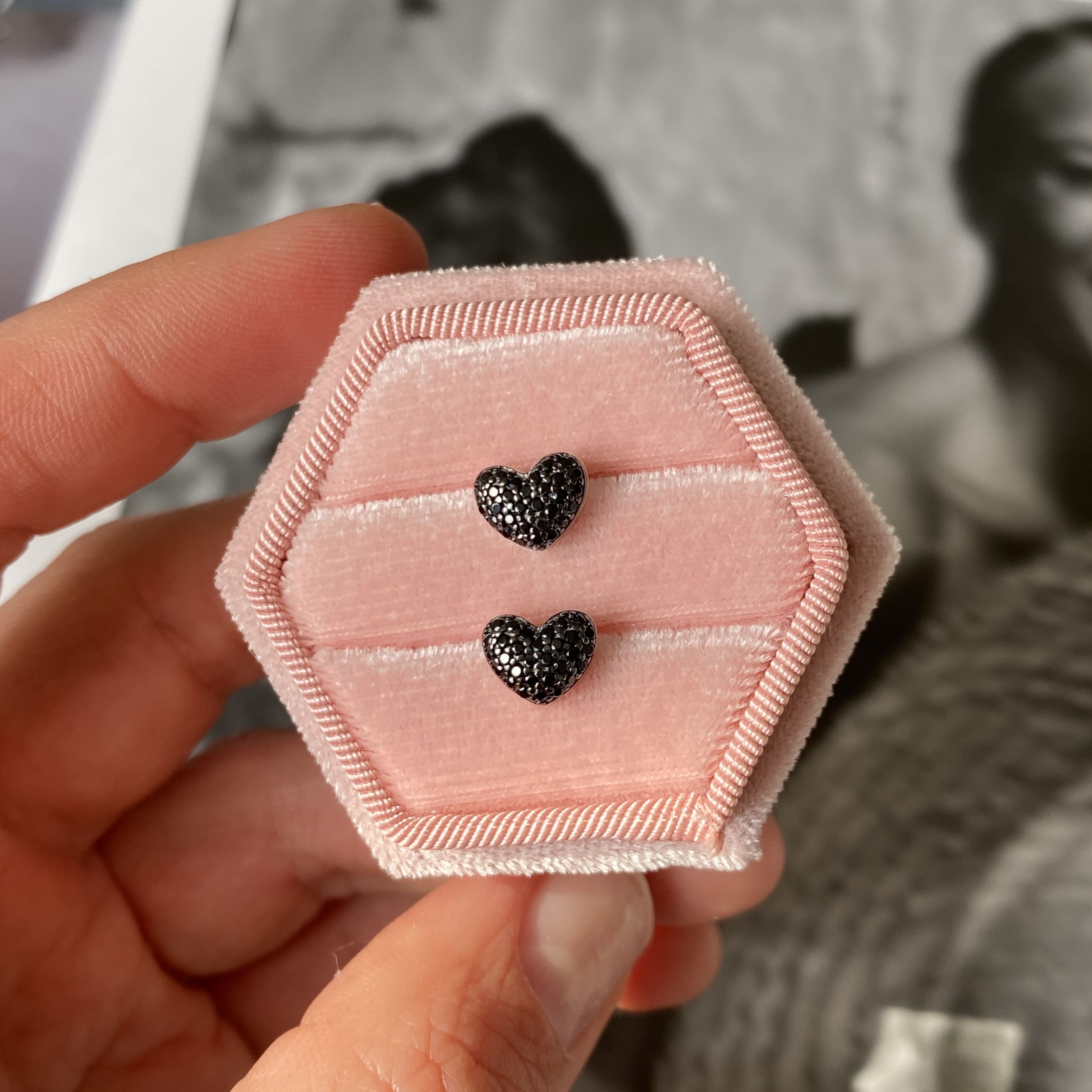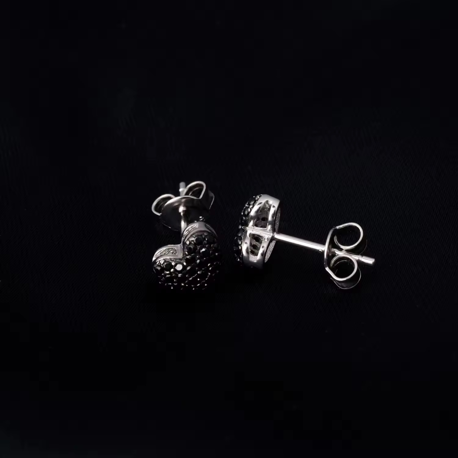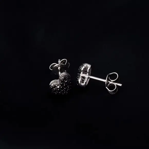 Чорне паве створює ефект суцільного сяйва з темним відтінком, який красиво грає зі світлом і підкреслює форму серця. Такий дизайн виглядає стильно й нестандартно, водночас залишаючись елегантним і універсальним. Пусети не перевантажують образ, але одразу привертають увагу.