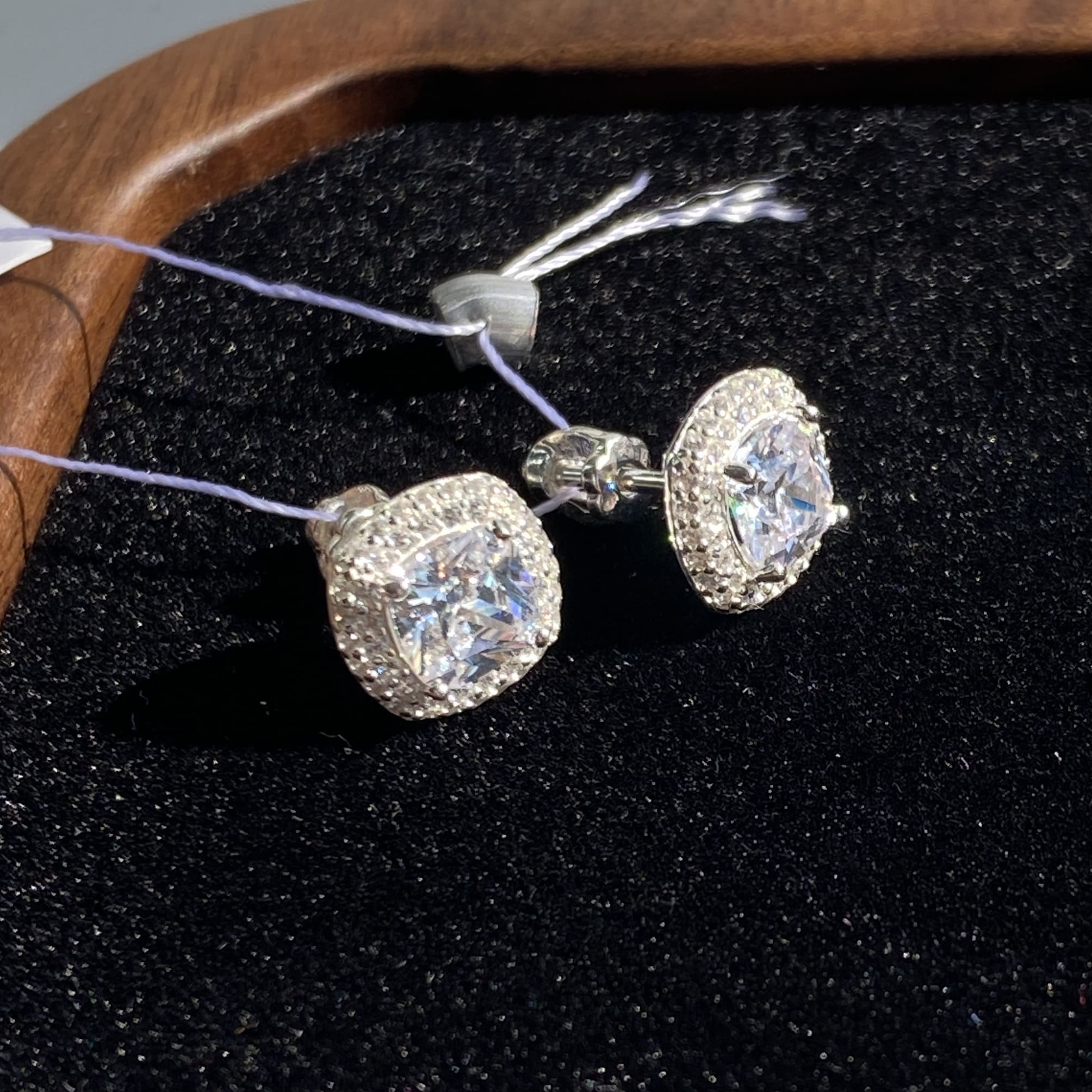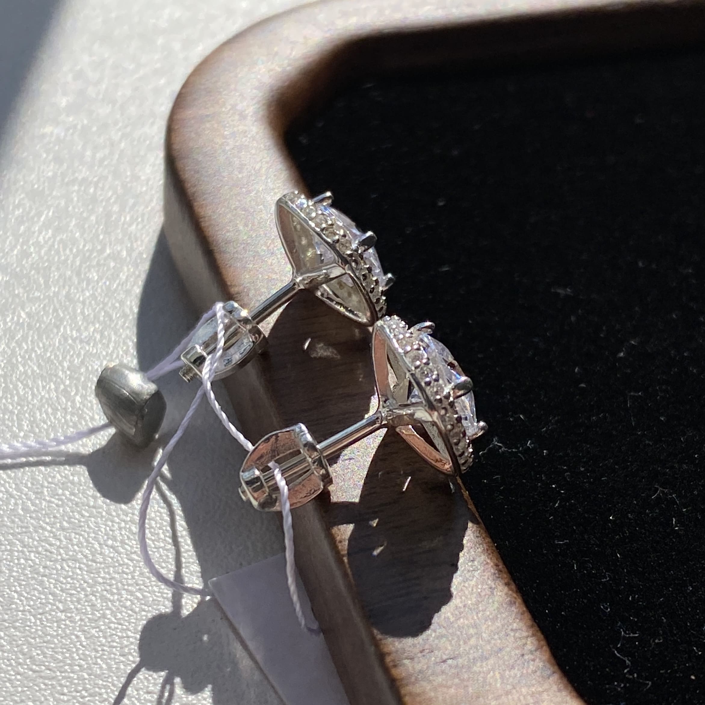 У центрі кожної сережки сяє великий фіаніт із бездоганною огранкою, що відбиває світло у десятках променів. Камінь обрамлений мініатюрними кристалами, які підсилюють його блиск і створюють ефект «корони». Завдяки цьому сережки виглядають дорого, витончено й привертають увагу навіть у м’якому освітленні.