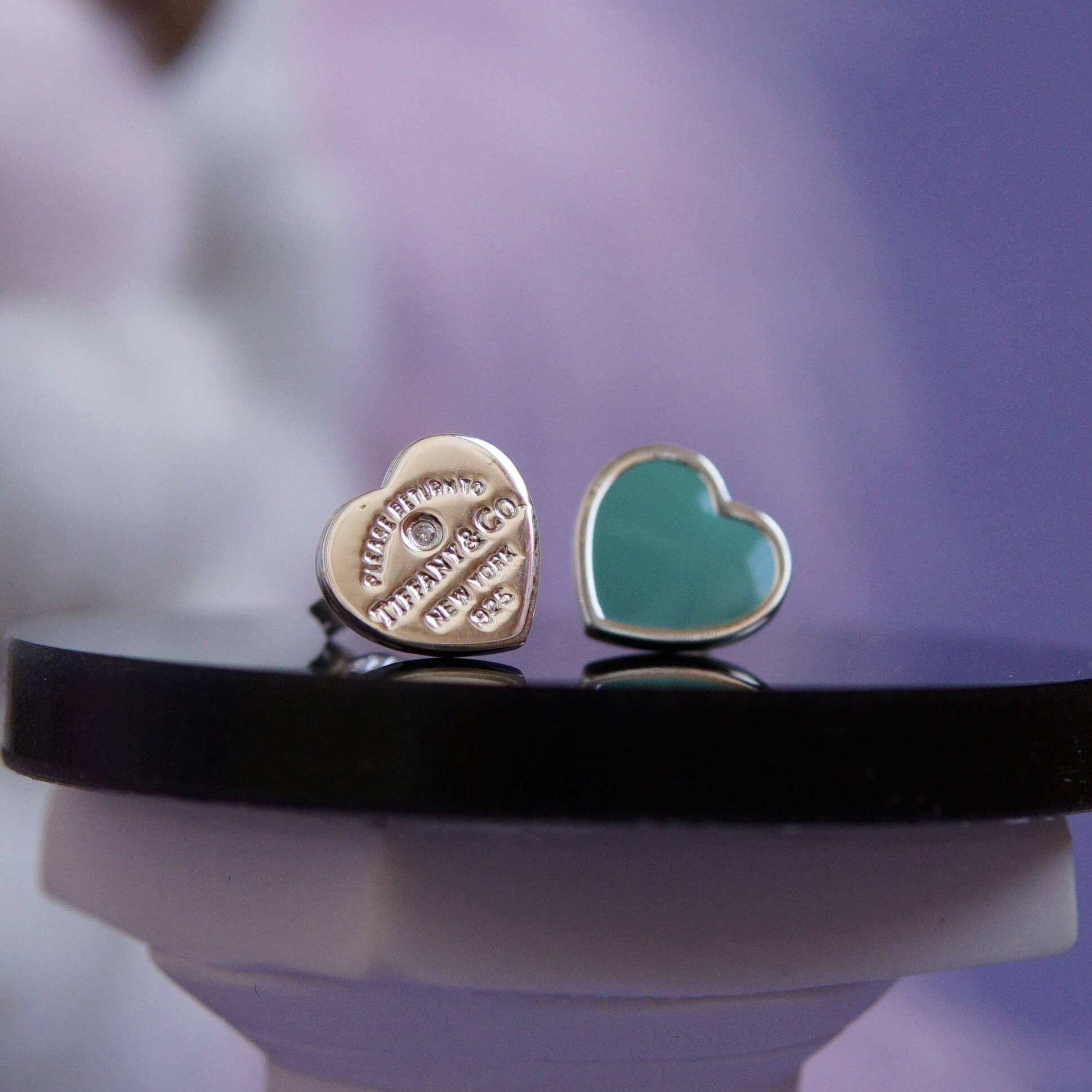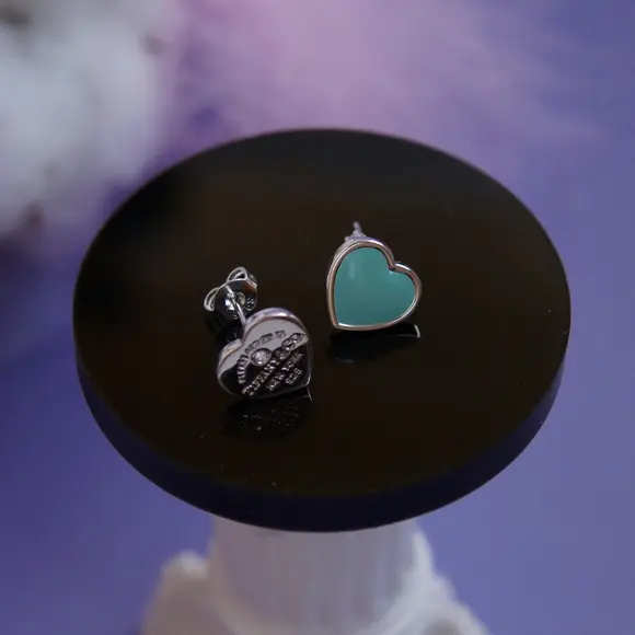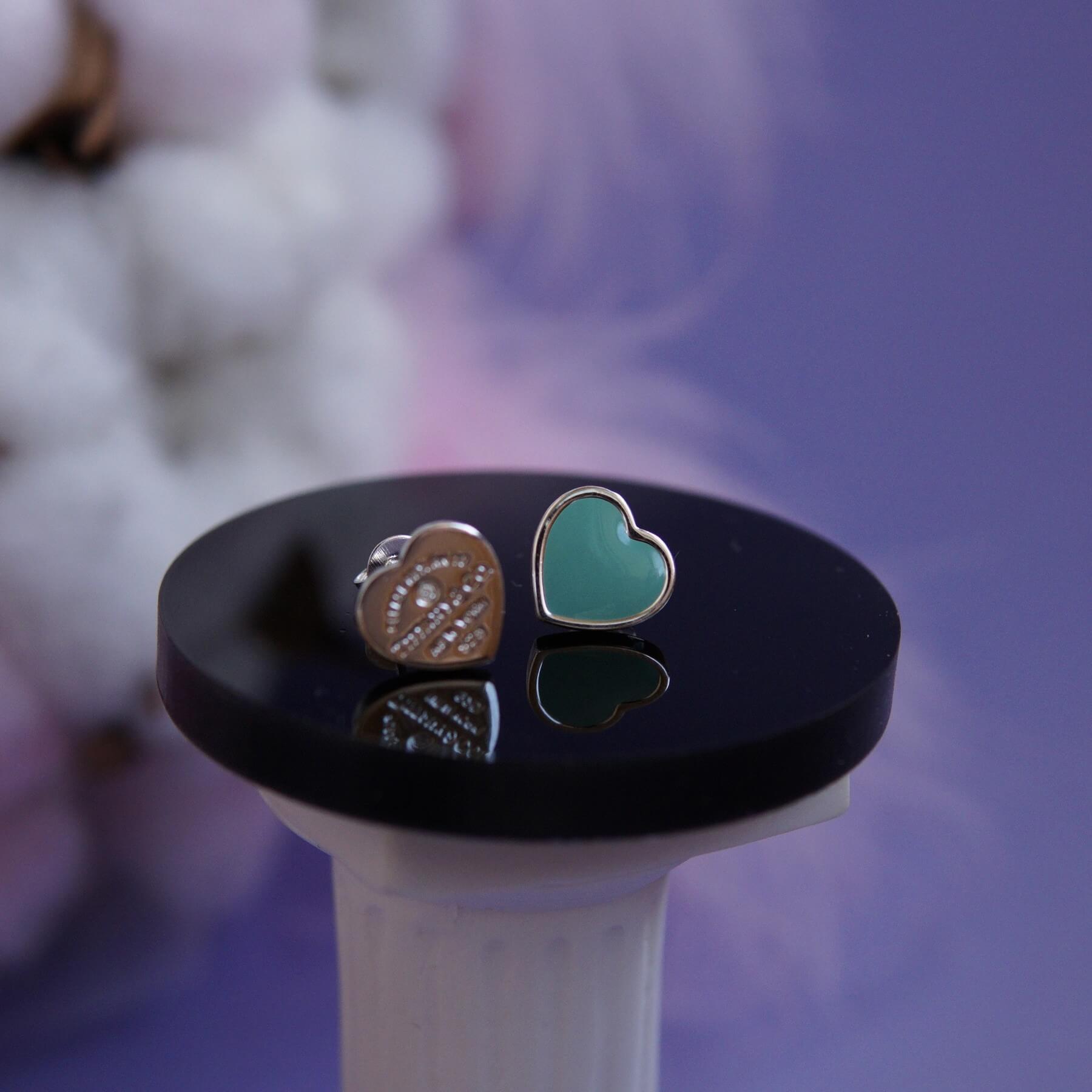 Ці витончені сережки Mini Heart які є реплікою легендарного бренду Tiffany & Co втілюють стиль і елегантність у найменших деталях. Їхній дизайн у формі серця, прикрашений емаллю бірюзового кольору, дарує відчуття витонченості та ніжності. Зворотна сторона сережок доповнена фірмовим написом "Please Return to Tiffany & Co" — символом виняткової якості та престижу, що вже став культовим.