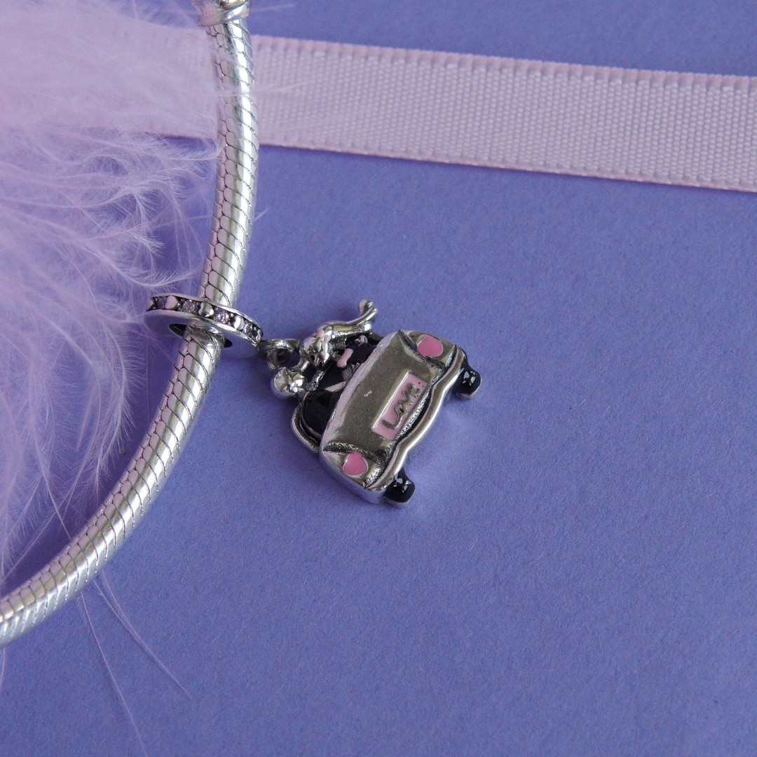 Шарм «Автомобіль наречених» ідеально підходить для браслетів Pandora, додаючи у ваш образ нотки романтики і ніжності. Цей аксесуар легко поєднується з іншими шармами, створюючи унікальний стиль, що підкреслює ваші найщасливіші моменти.