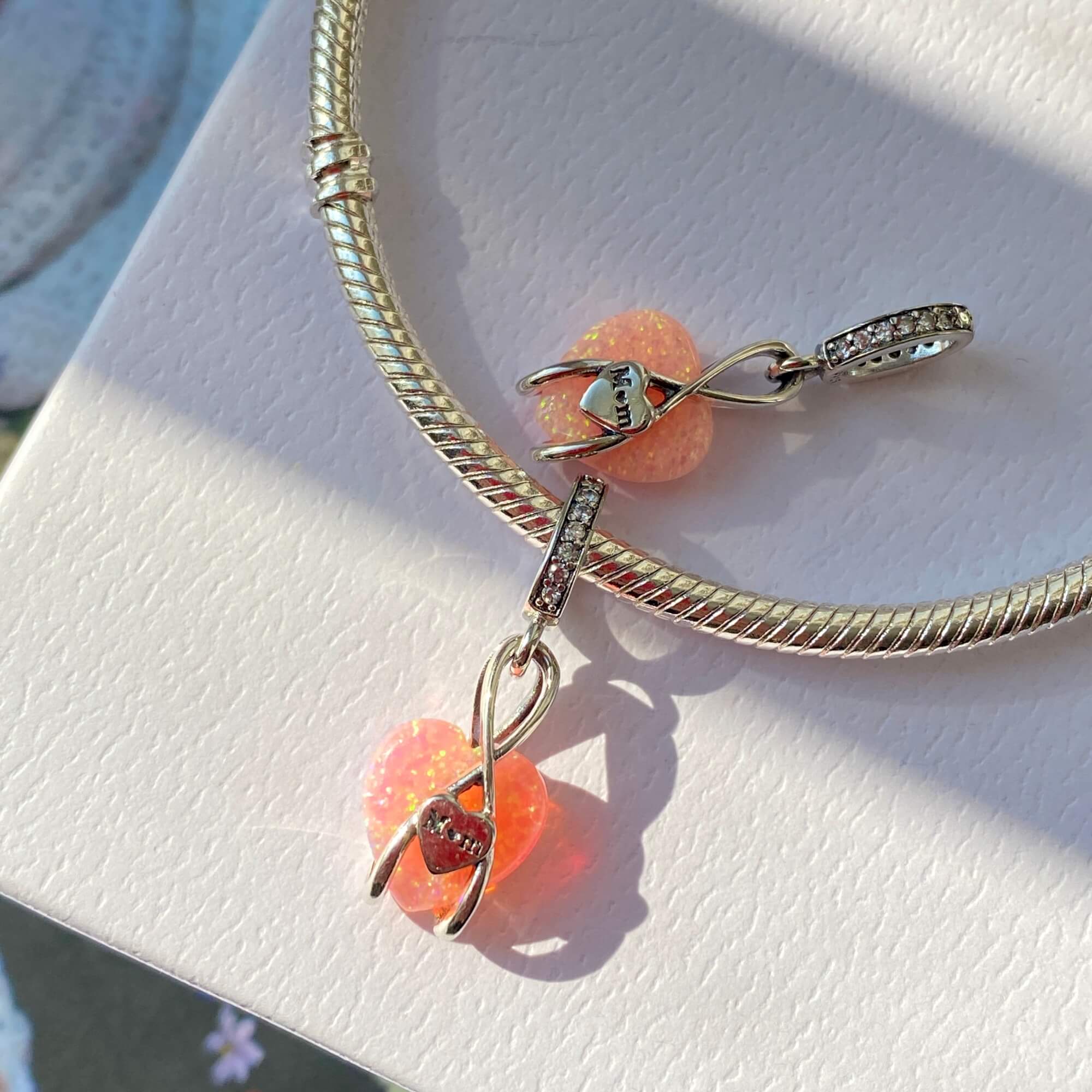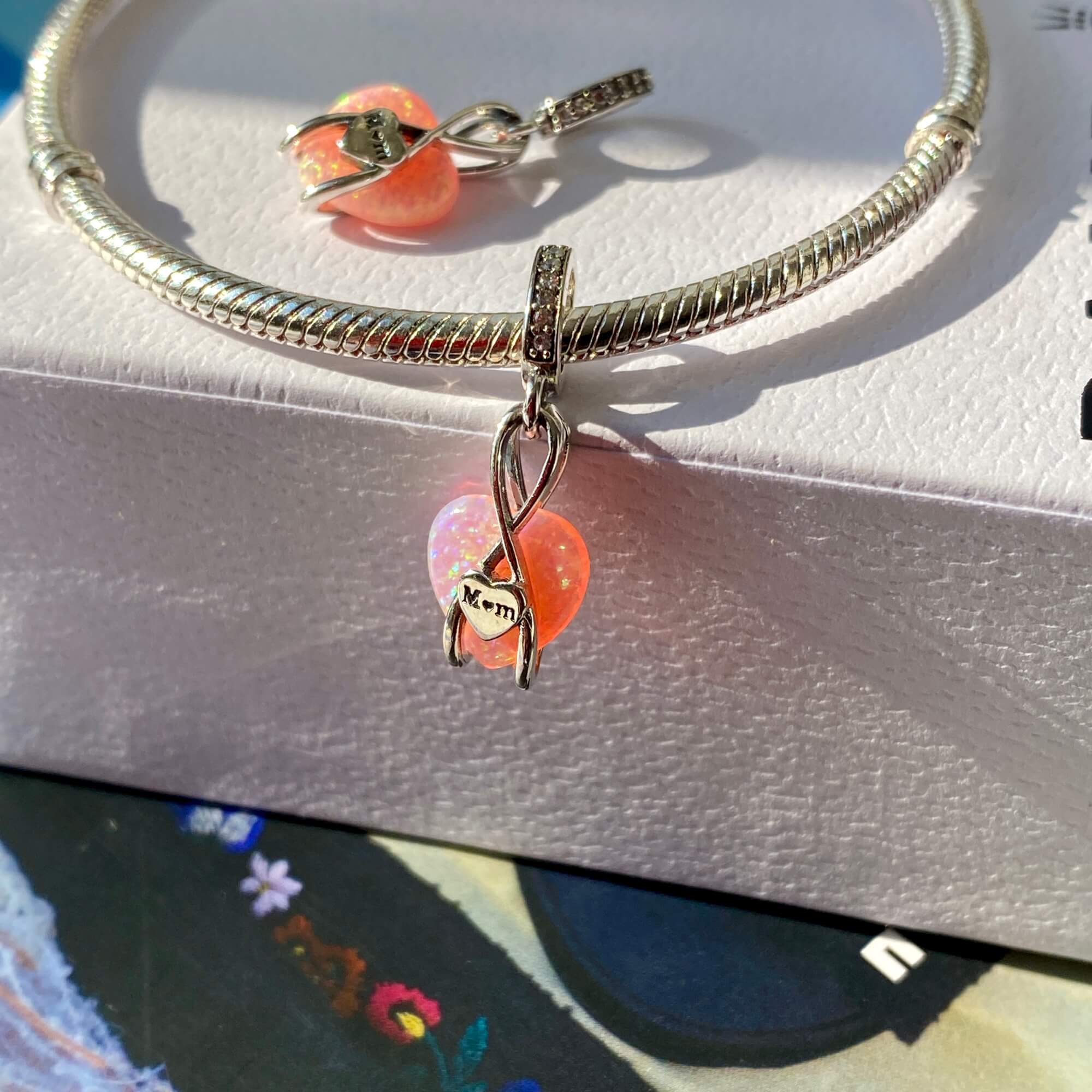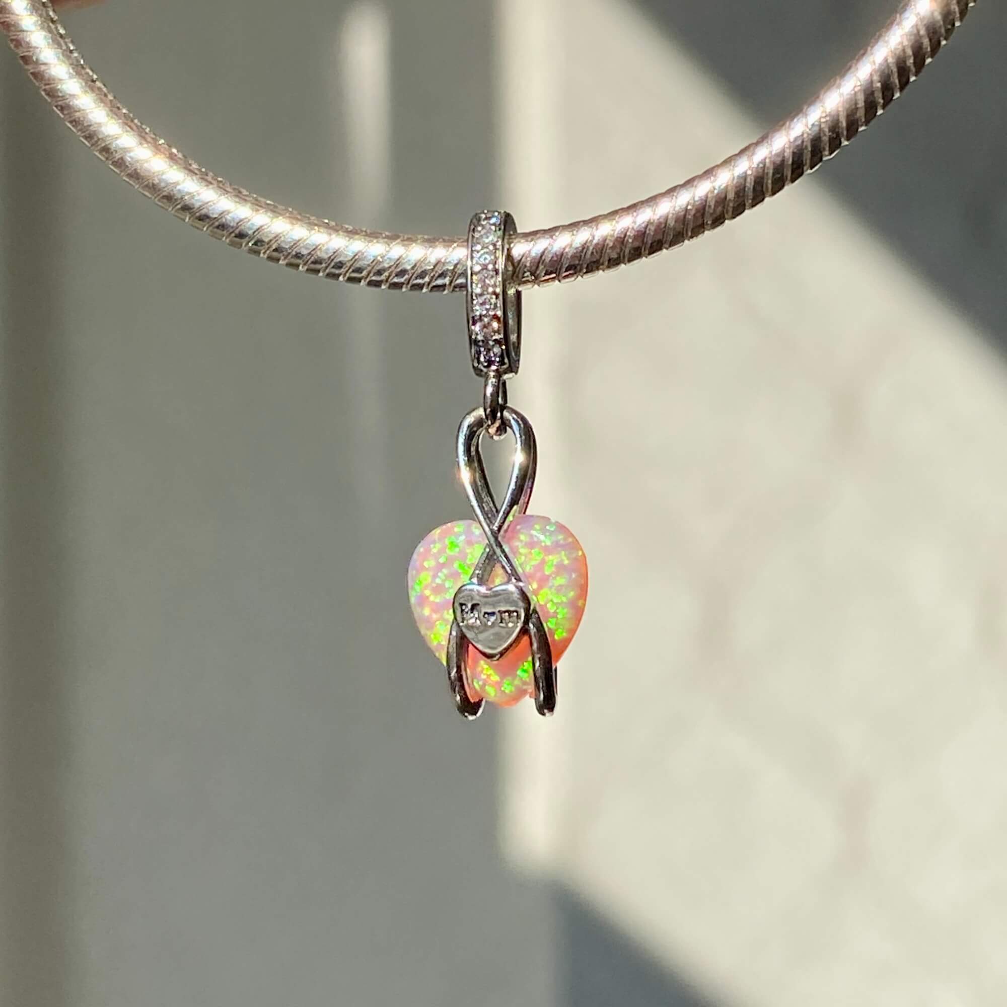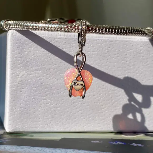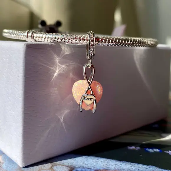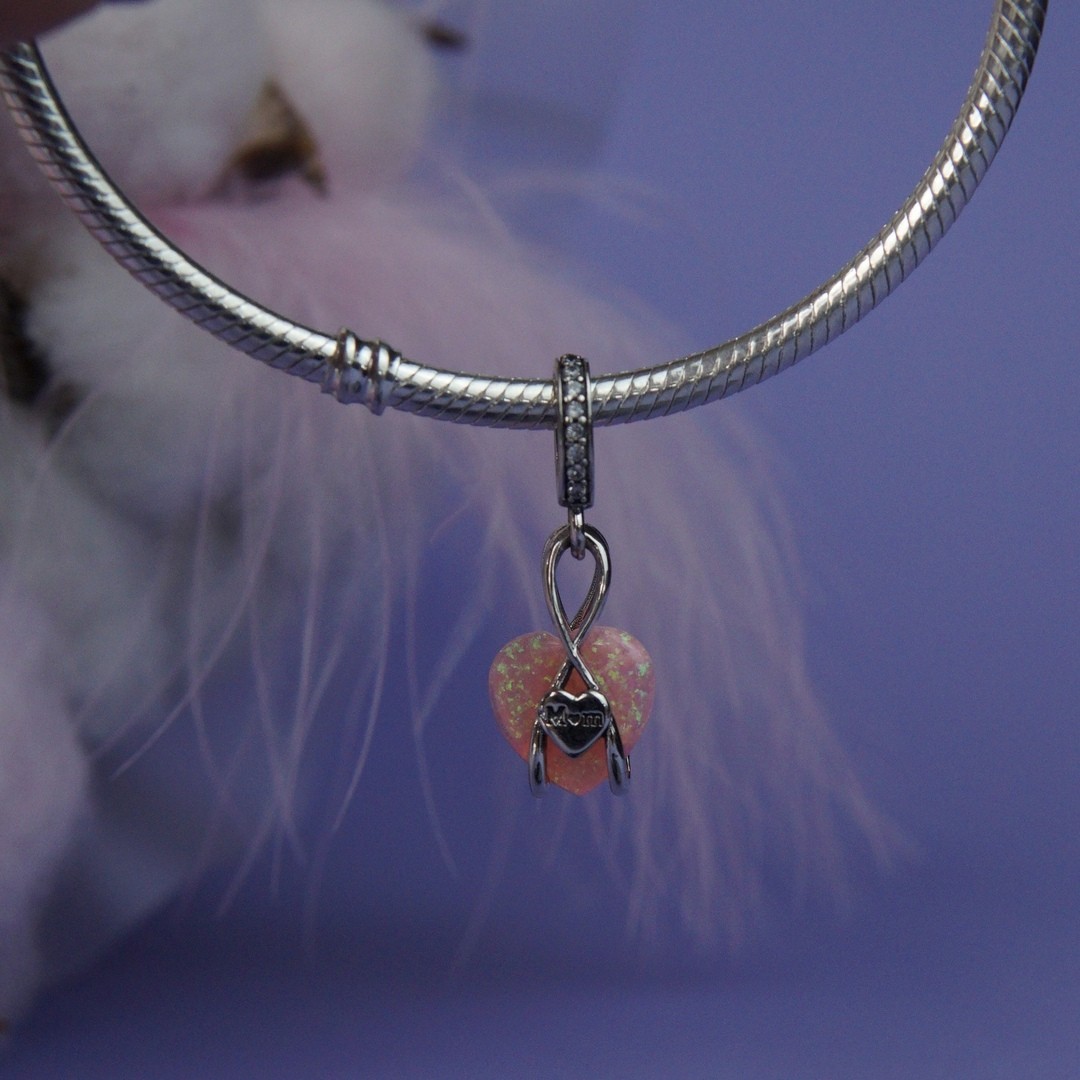 Шарм-підвіска «Безкінечна любов до мами» — це справжній символ теплих почуттів, ніжності та вдячності, які кожен з нас відчуває до найдорожчої людини. Цей шарм втілює в собі елегантність та витонченість. Центральним елементом є ніжне серце з рожевим склом, яке випромінює особливий блиск і переливається в променях світла.