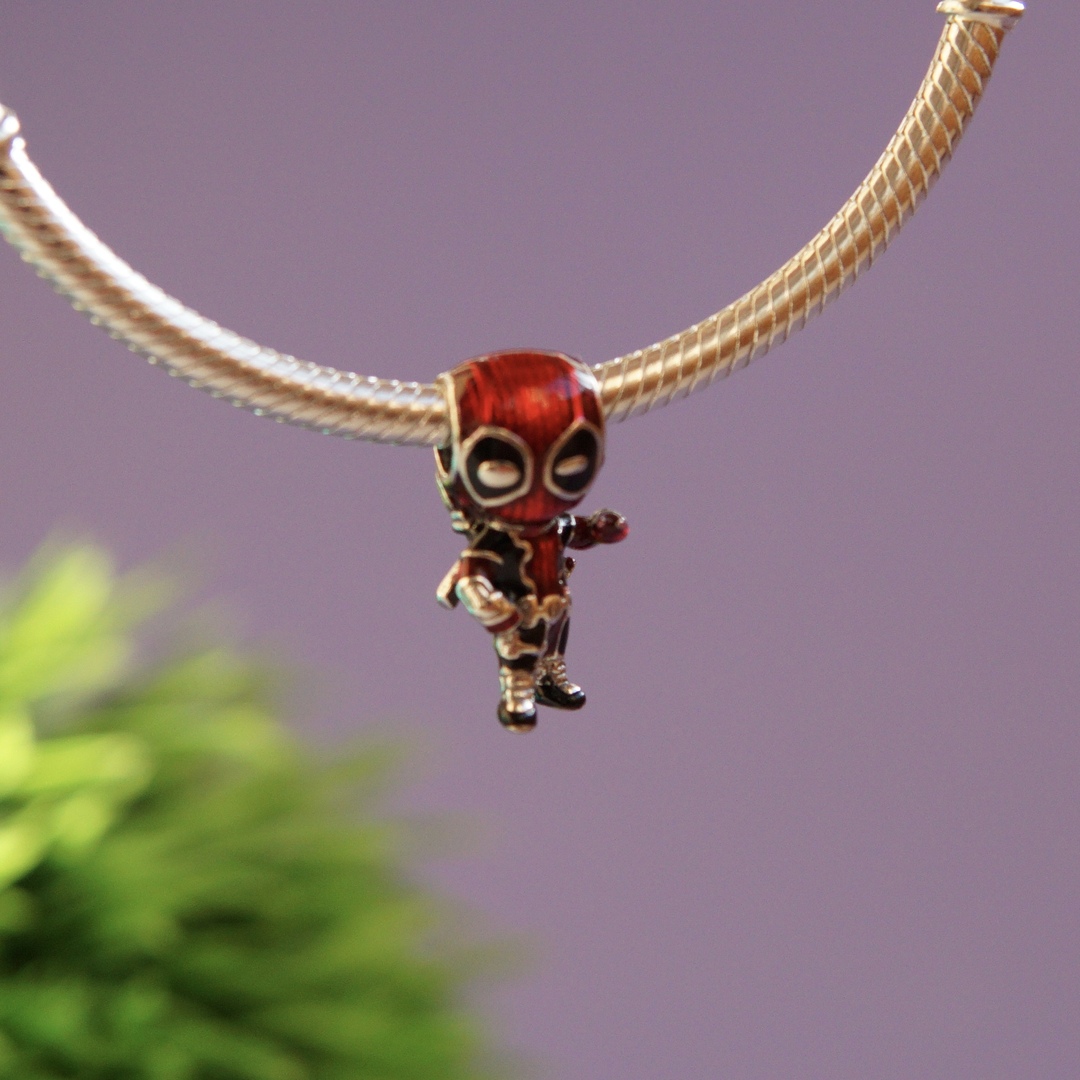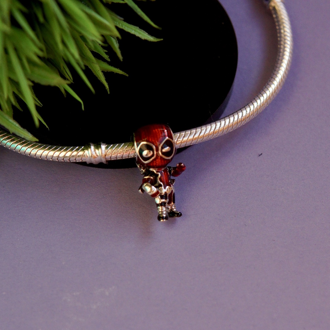 Шарм «Дедпул» — оригінальний вибір для тих, хто не боїться виділятися! Цей стильний аксесуар додасть сміливий акцент вашому браслету, створюючи атмосферу супергеройської харизми. Зображення відомого героя з його фірмовою маскою та улюбленими жартами асоціюється з упевненістю та почуттям гумору, що одразу впадає у вічі.