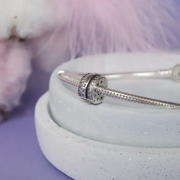 Якість на першому місці: Шарм-фіксатор виготовлений з високоякісного срібла, що гарантує його довговічність та стійкість до зношування. Логотип Pandora і камінці паве залишаються бездоганними навіть при частому використанні, зберігаючи свою первинну привабливість на довгі роки.