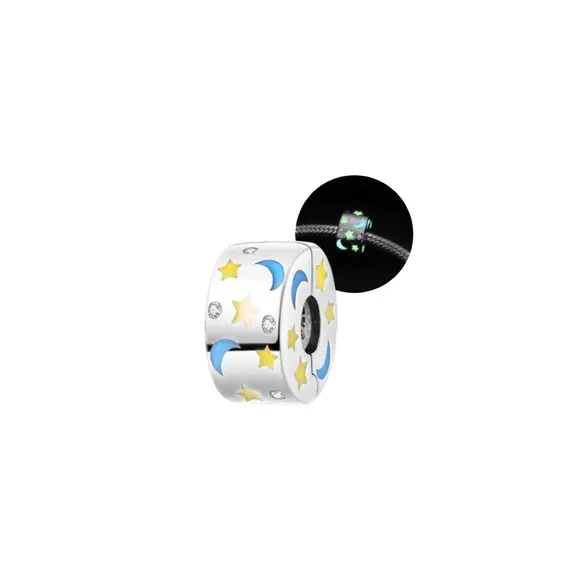 Місяць і зірки на кліпсі створюють відчуття таємниці та романтики. Світловий відблиск в темряві робить цей аксесуар неперевершеним у вечірньому вигляді. Завдяки кліпсі "Місяць і зірки" ваш браслет стане справжнім проявом вашого унікального стилю та відчуття естетики.