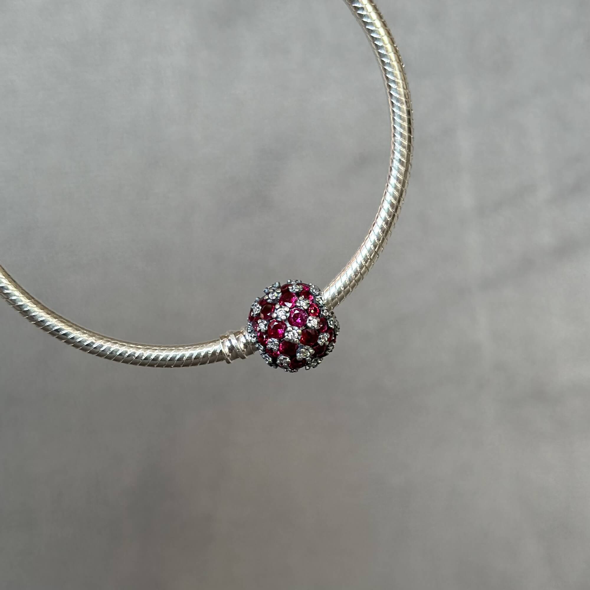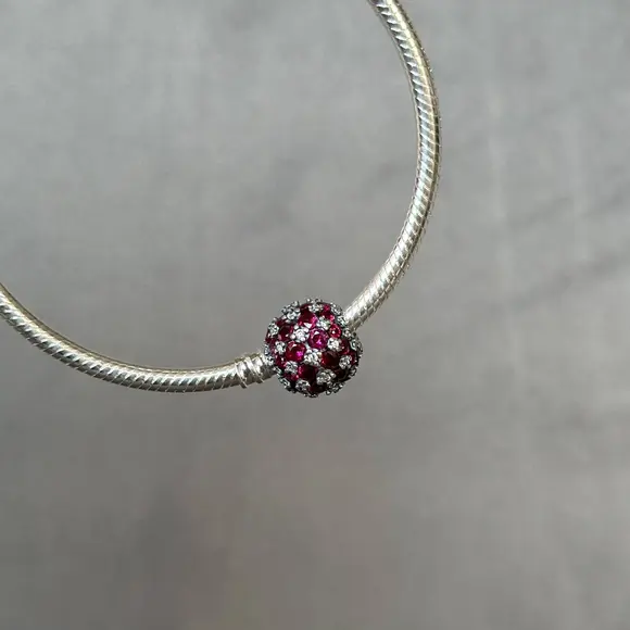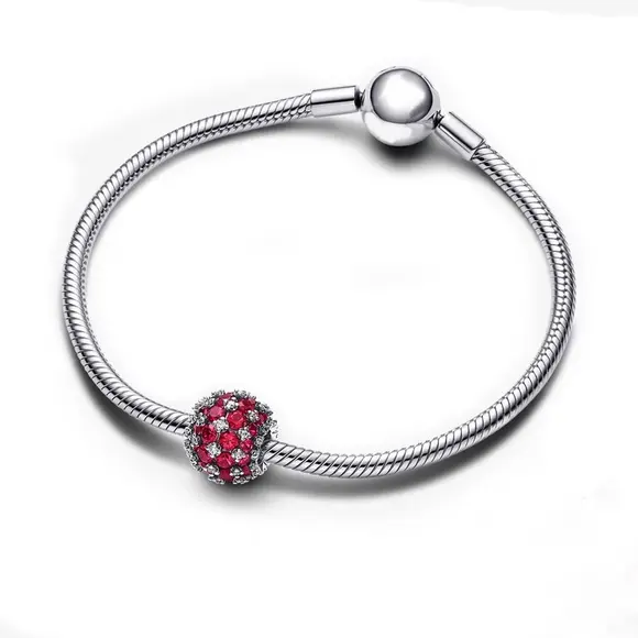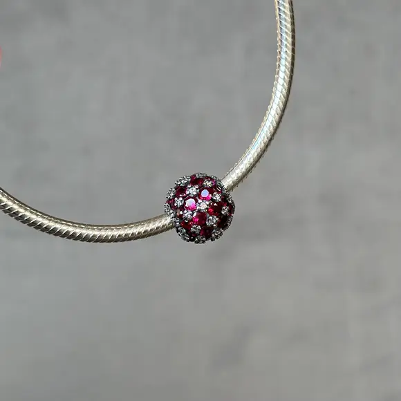 Ця намистина виготовлена з високоякісних матеріалів, що забезпечує її довговічність та стійкість до зносу. Червоні камінчики додають прикрасі неповторного шарму, створюючи відчуття розкоші та елегантності. Вони символізують пристрасть, любов та енергію, тому цей шарм стане ідеальним подарунком для коханої людини або особливої події у вашому житті.