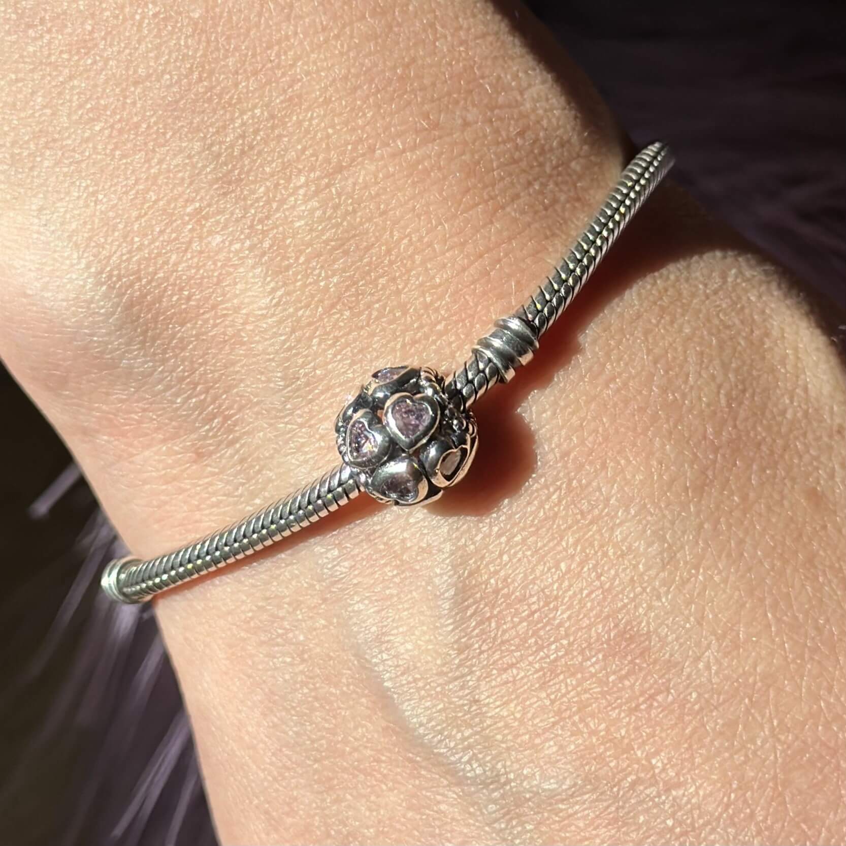 Замовляйте шарм-намистину «Рожеві серця» вже сьогодні та насолоджуйтесь красою цієї витонченої прикраси. Нехай ваш браслет стане відображенням вашої любові та ніжності з цією чарівною намистиною!