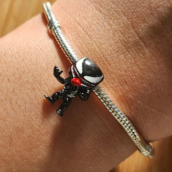 Шарм-намистина «Веном» пасує до браслетів типу Pandora та сумісних моделей, легко нанизується й утримується завдяки надійному кріпленню. Його можна комбінувати з іншими тематичними намистинами — супергероями, символами сили або мінімалістичними елементами, створюючи власну історію у вигляді браслета.