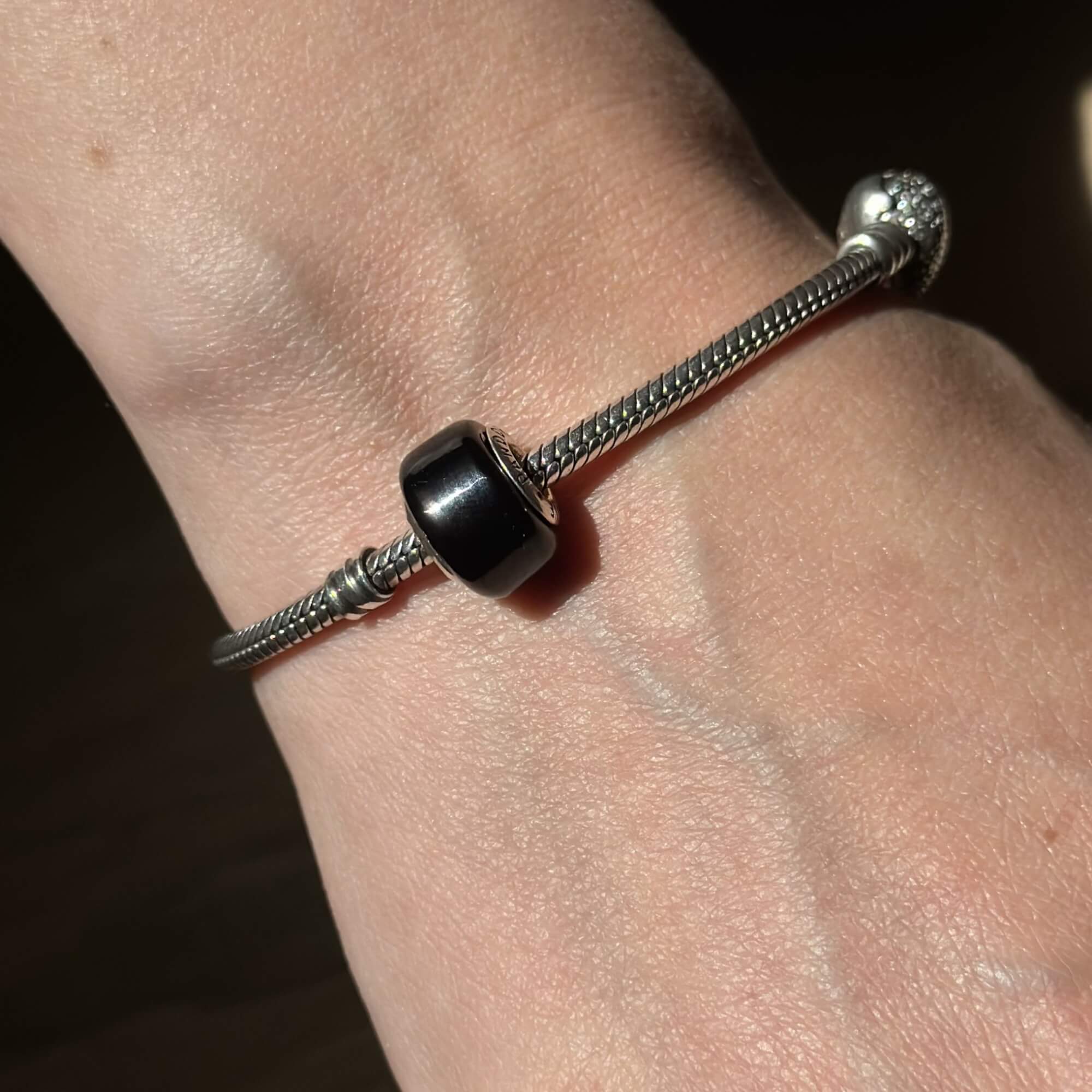 Чорний колір символізує таємничість, силу та бездоганний смак, роблячи цей шарм ідеальним доповненням до будь-якого образу. Він легко поєднується з іншими прикрасами, дозволяючи створювати унікальні комбінації, що підкреслюють вашу індивідуальність і стиль.