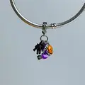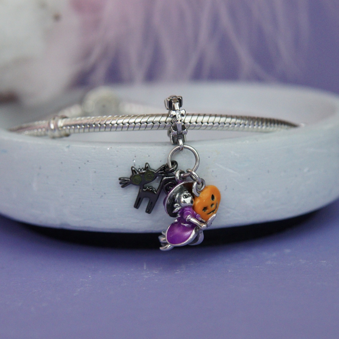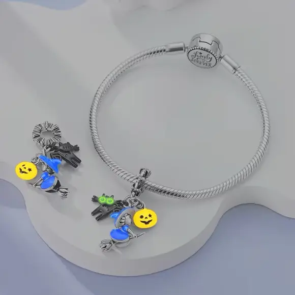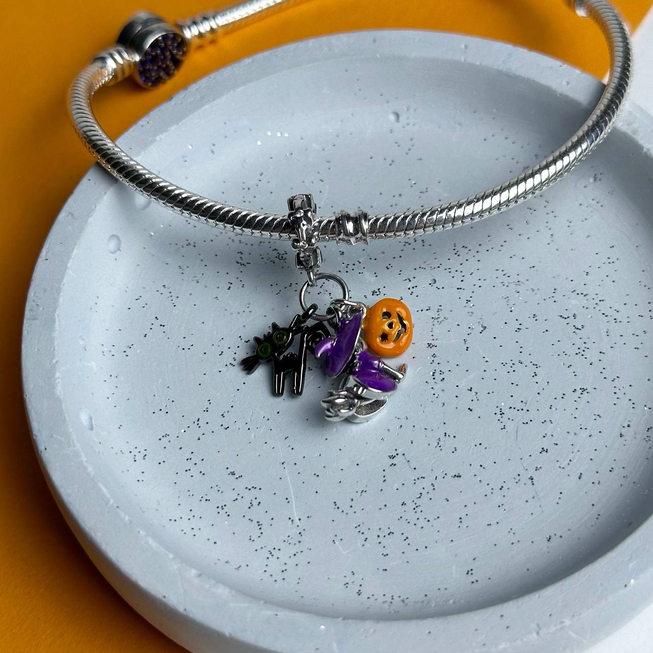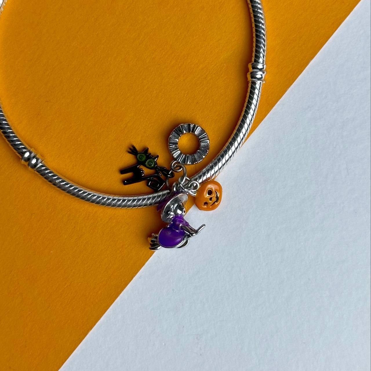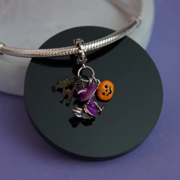Шарм-підвіска "Хелловін" - це чарівний аксесуар, який додасть вашому браслету загадковості та атмосфери свята Хеловіну. Зображення символів цього свята, таких як тикаючий гарбуз та відьма на мітлі, надає цьому шарму особливий стиль та характер.