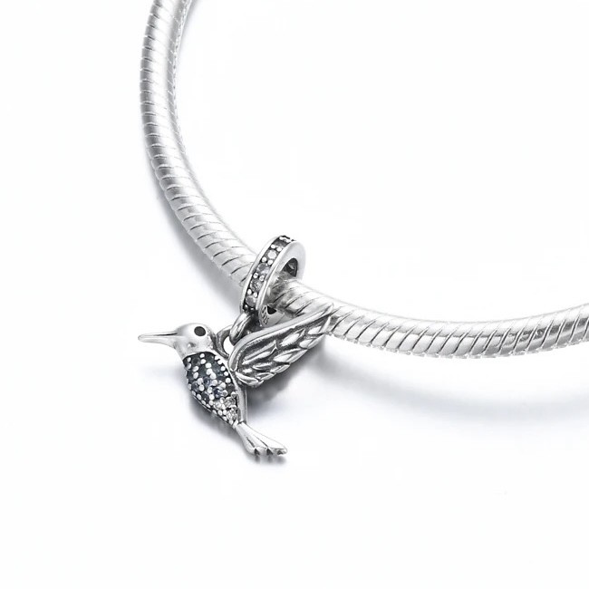Колібрі завжди асоціюються з легкістю та свободою, їх швидкі рухи і яскраве оперення зачаровують і захоплюють. Шарм-підвіска «Колібрі» виготовлена з високоякісних матеріалів, що забезпечує її довговічність та бездоганний вигляд. Витончена форма птаха, прикрашена блискучими камінчиками, надає прикрасі особливого шарму та блиску, роблячи її справжнім витвором мистецтва.
