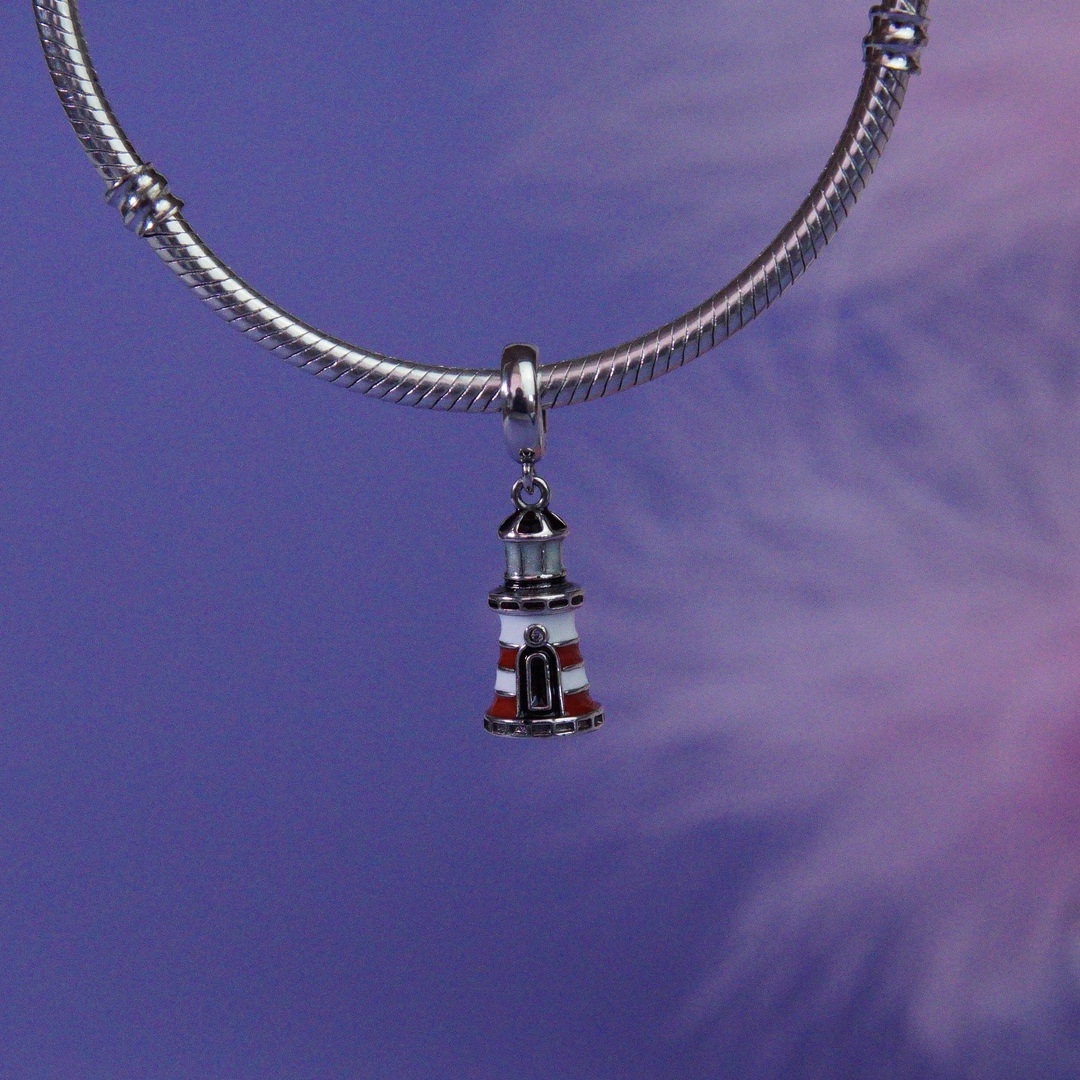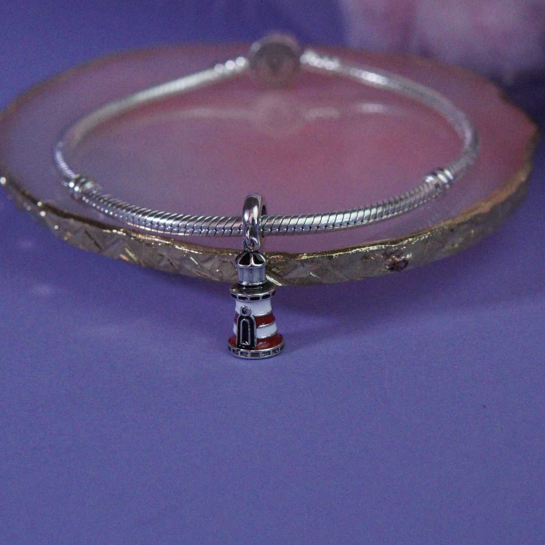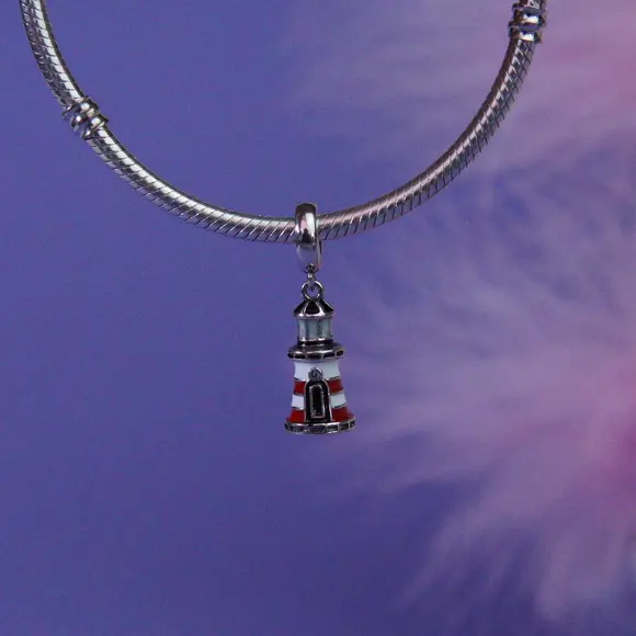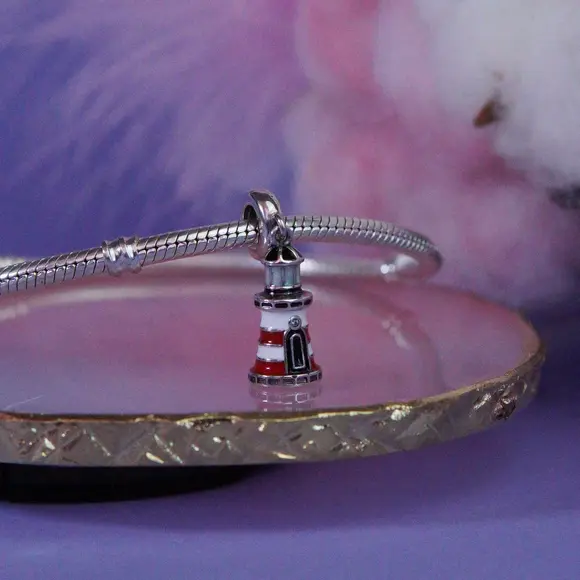 Яскраві біло-червоні смуги маяка створюють атмосферу живої морської легенди, а світловий елемент додає інтерактивності – підвіска дійсно світиться у темряві, що робить її унікальною та особливою. Такий шарм ідеально підходить для колекції на браслеті Pandora, особливо для тих, хто мріє про далекі мандрівки або має особливу прив’язаність до моря.