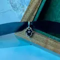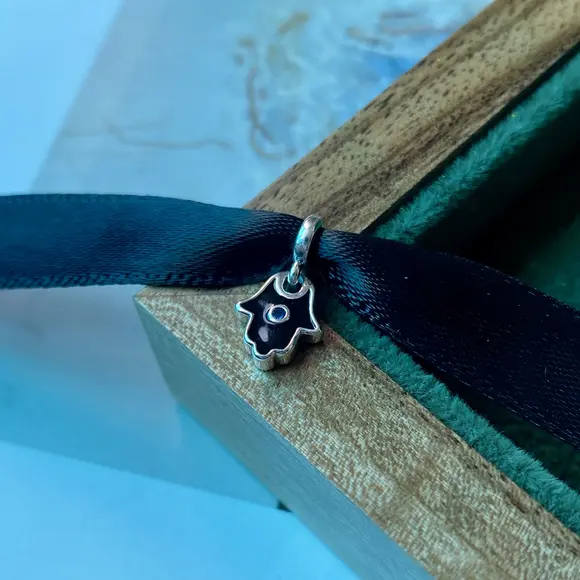 Цей шарм уособлює єдність духовного й матеріального, захист від зла та водночас естетику сучасного ювелірного стилю. Темна гама та вставка глибокого чорного відтінку додають прикрасі містичного шарму, підкреслюючи її магічну сутність. Срібна основа гармонійно контрастує з чорним елементом, створюючи ефект глибини та благородного сяйва.