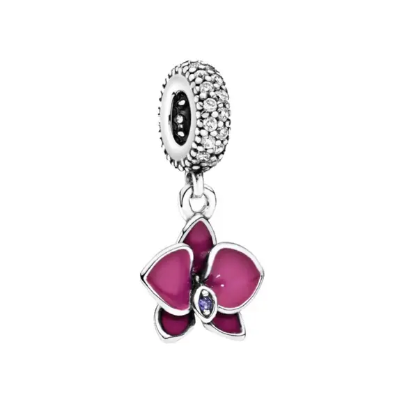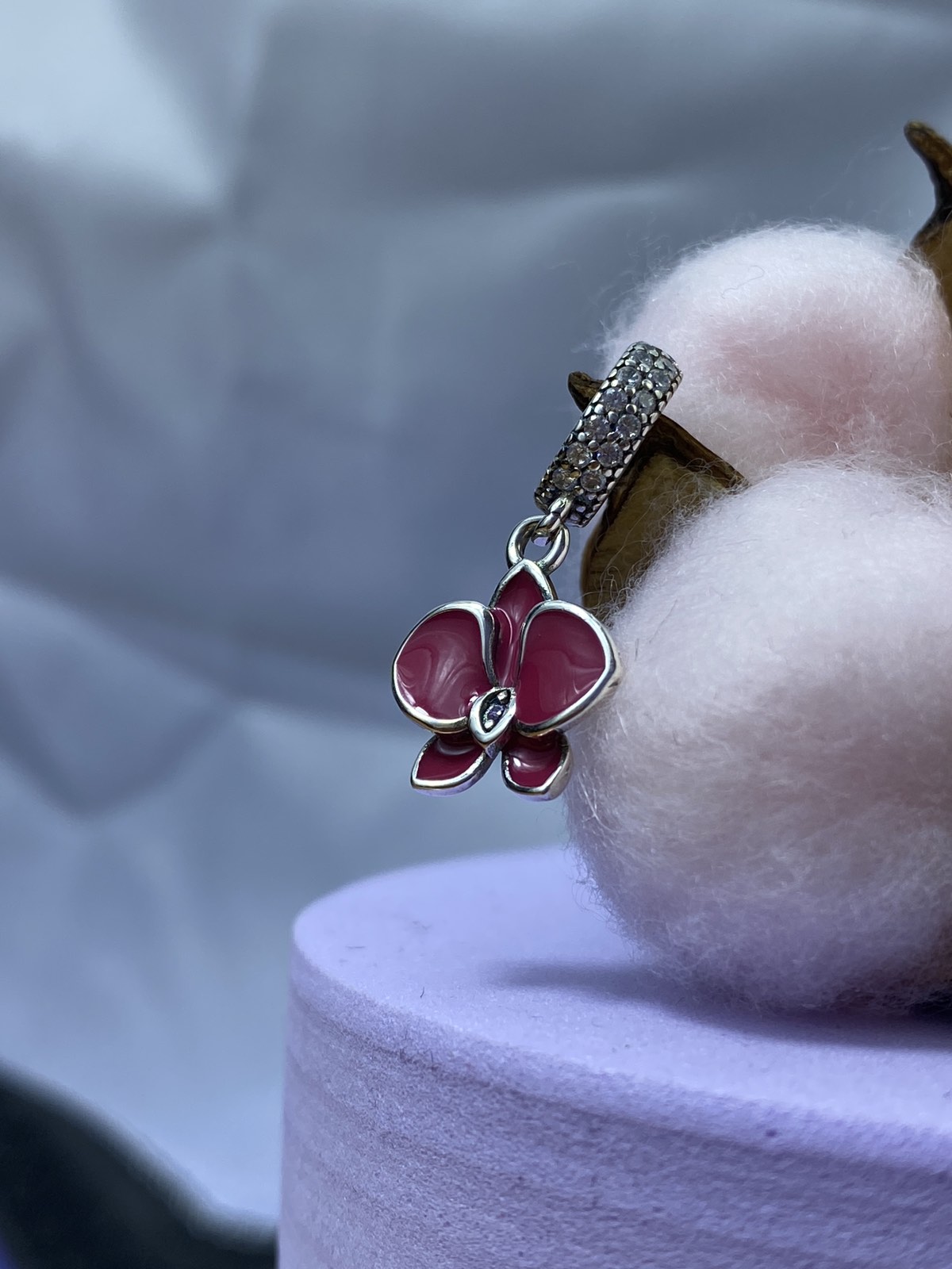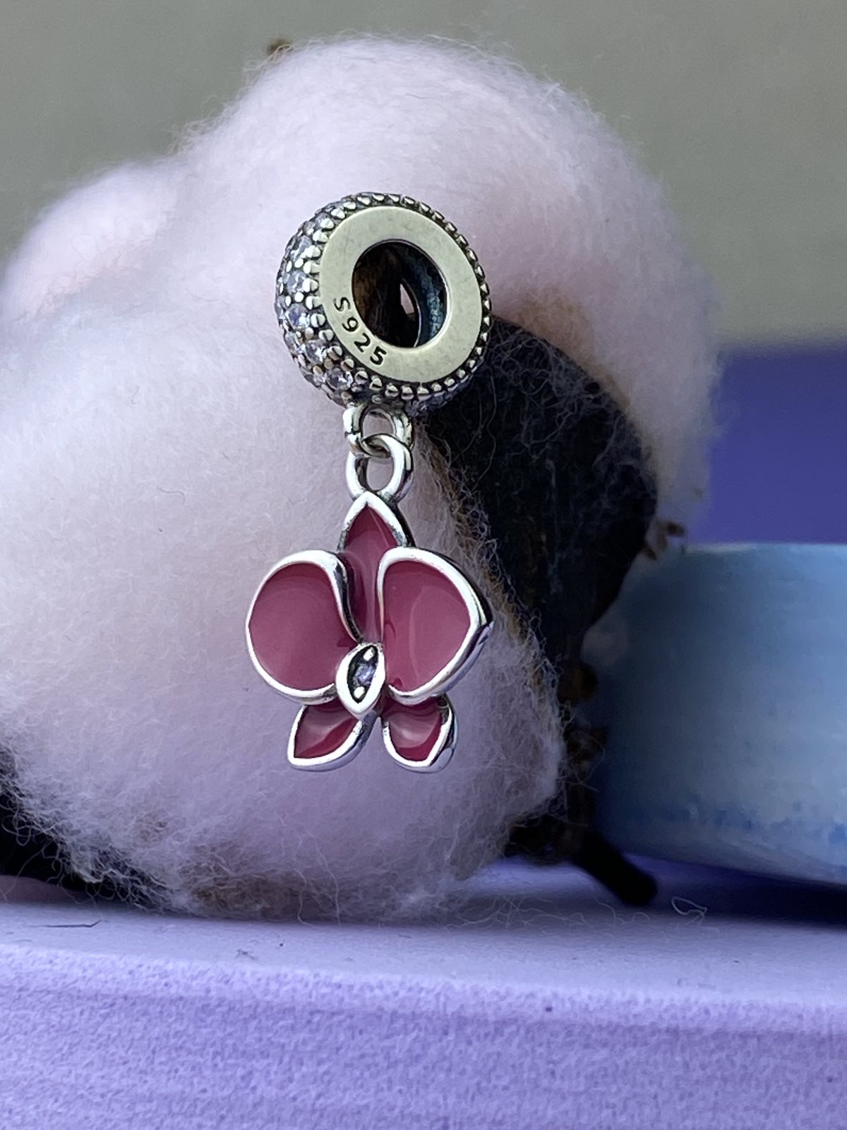 Відкрийте для себе чарівну красу та елегантність з чудовою шарм-підвіскою "Орхідея". Ця прикраса не просто вражає своєю витонченістю, але і вносить нотку природної краси та загадковості на ваш браслет .