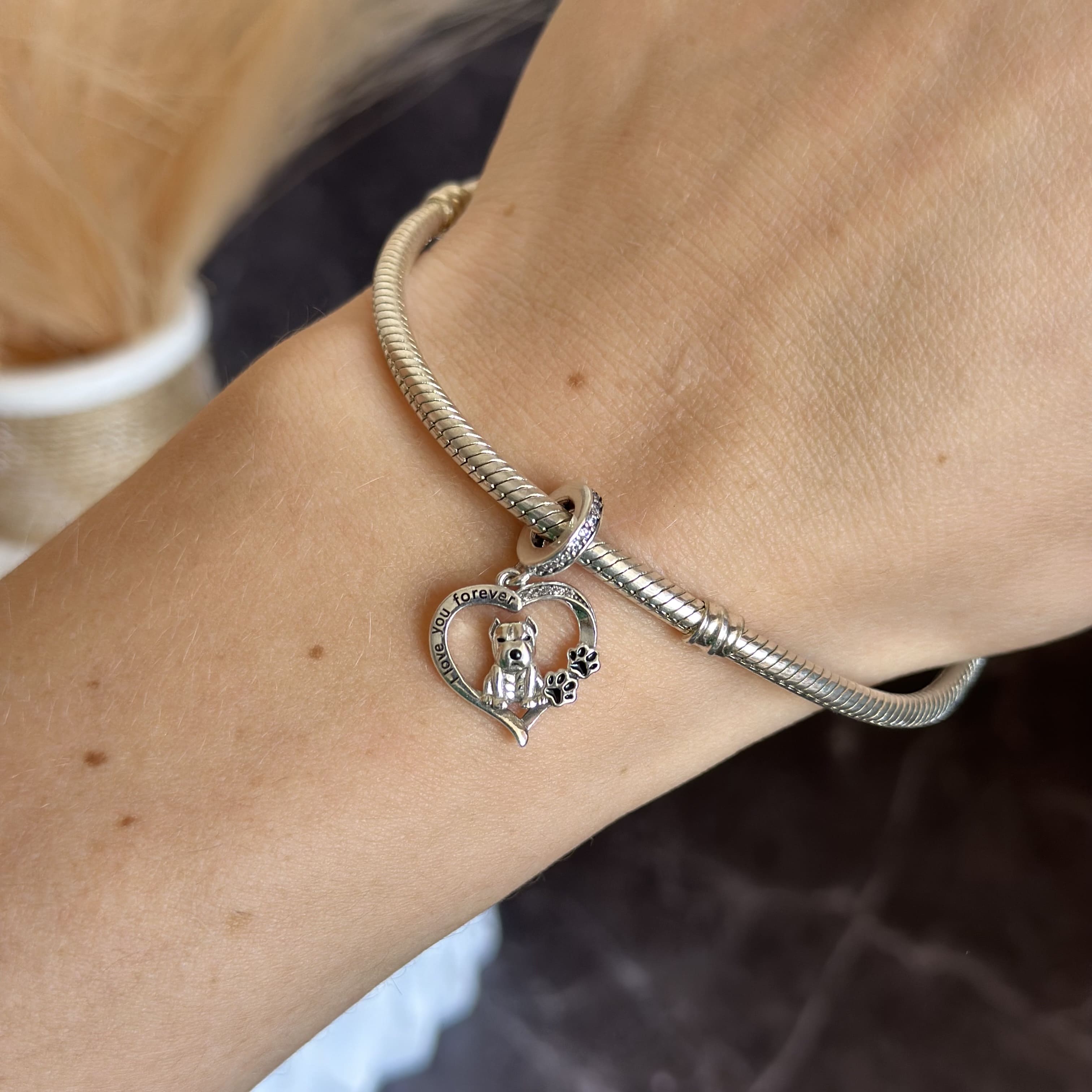 Шарм-підвіска «Песик бультер’єр» чудово підходить для браслетів зі змінними підвісками та сумісний із популярними системами. Його легко поєднувати з іншими шармами — лапками, сердечками, символами удачі або тематичними підвісками, створюючи персональний браслет із власною історією.