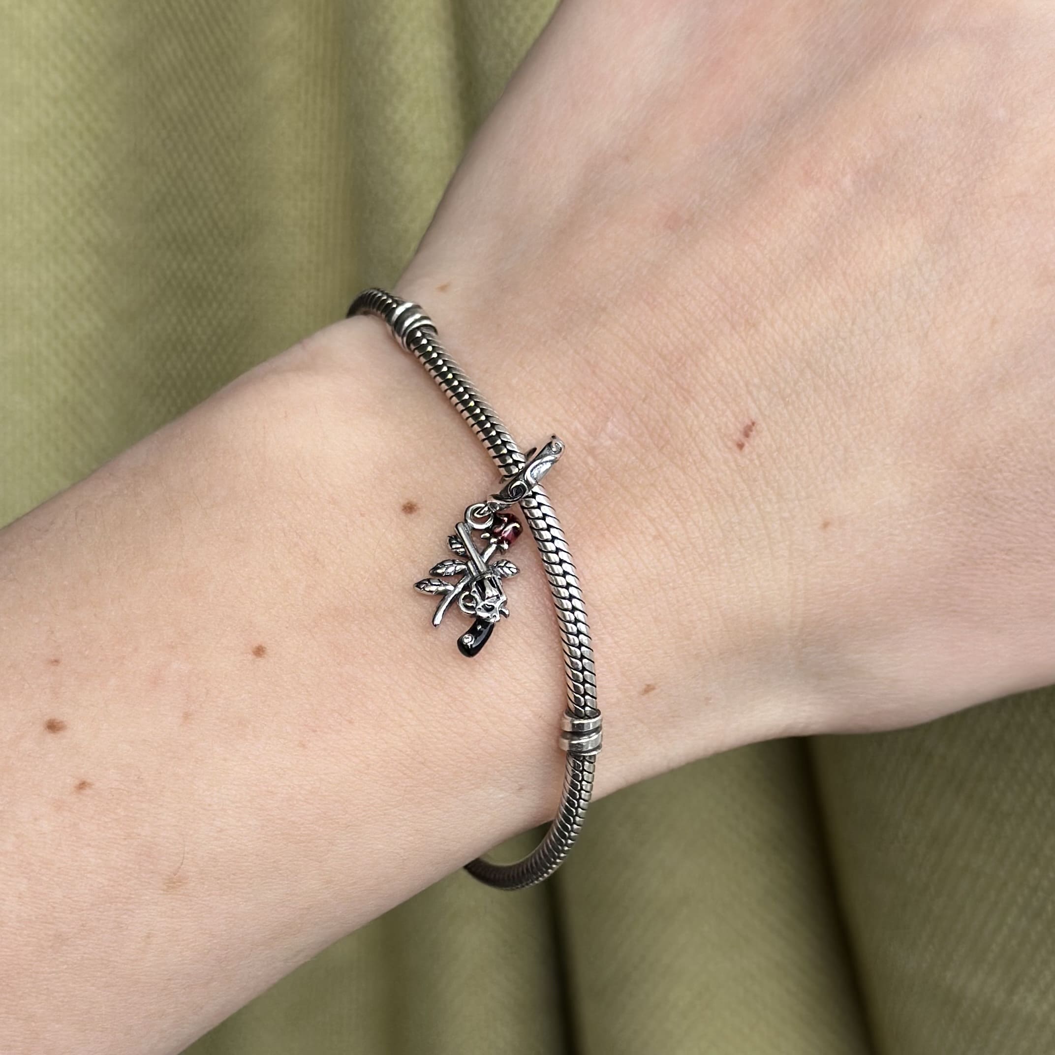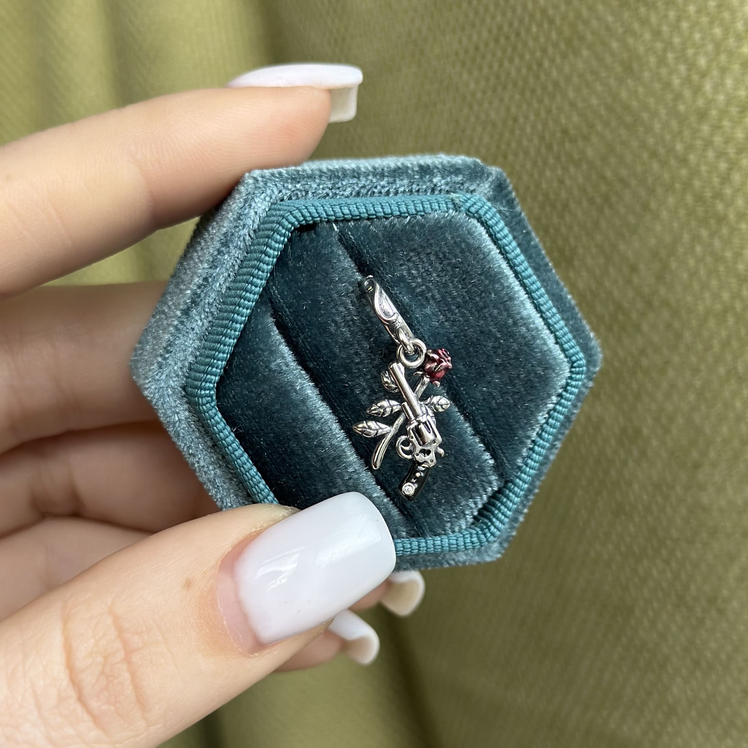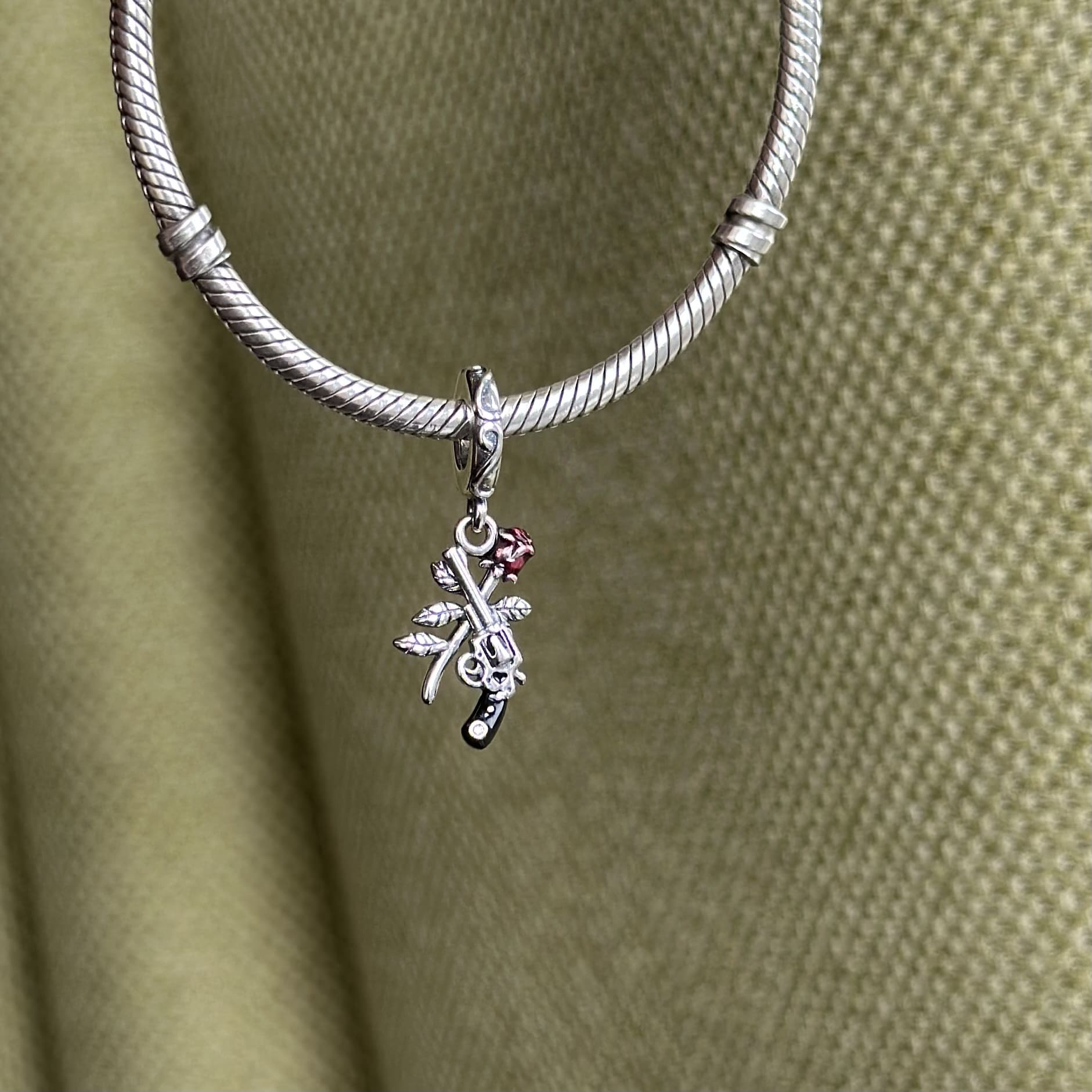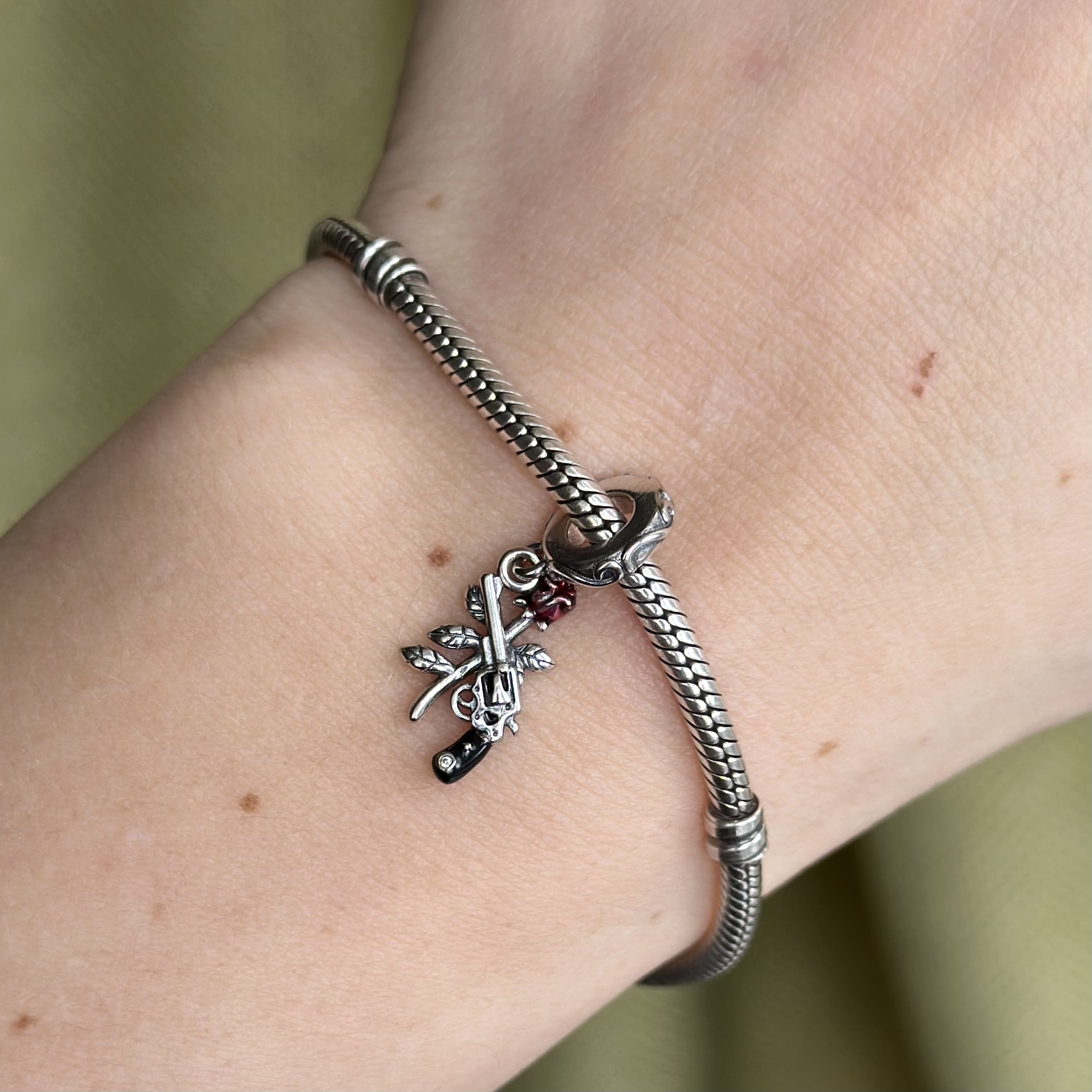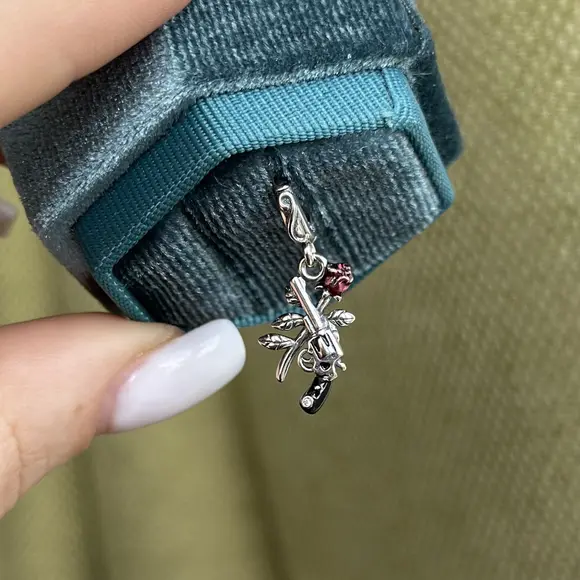 Шарм підвіска револьвер та троянда