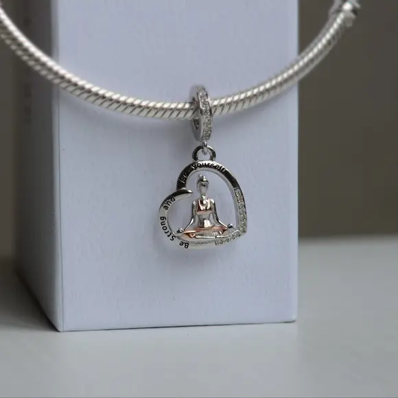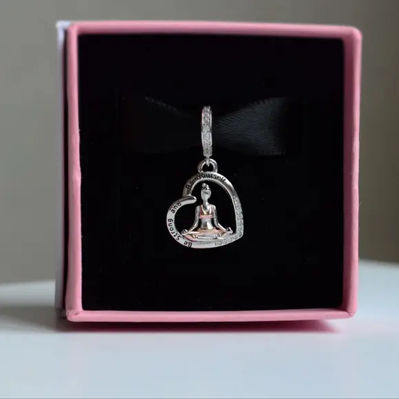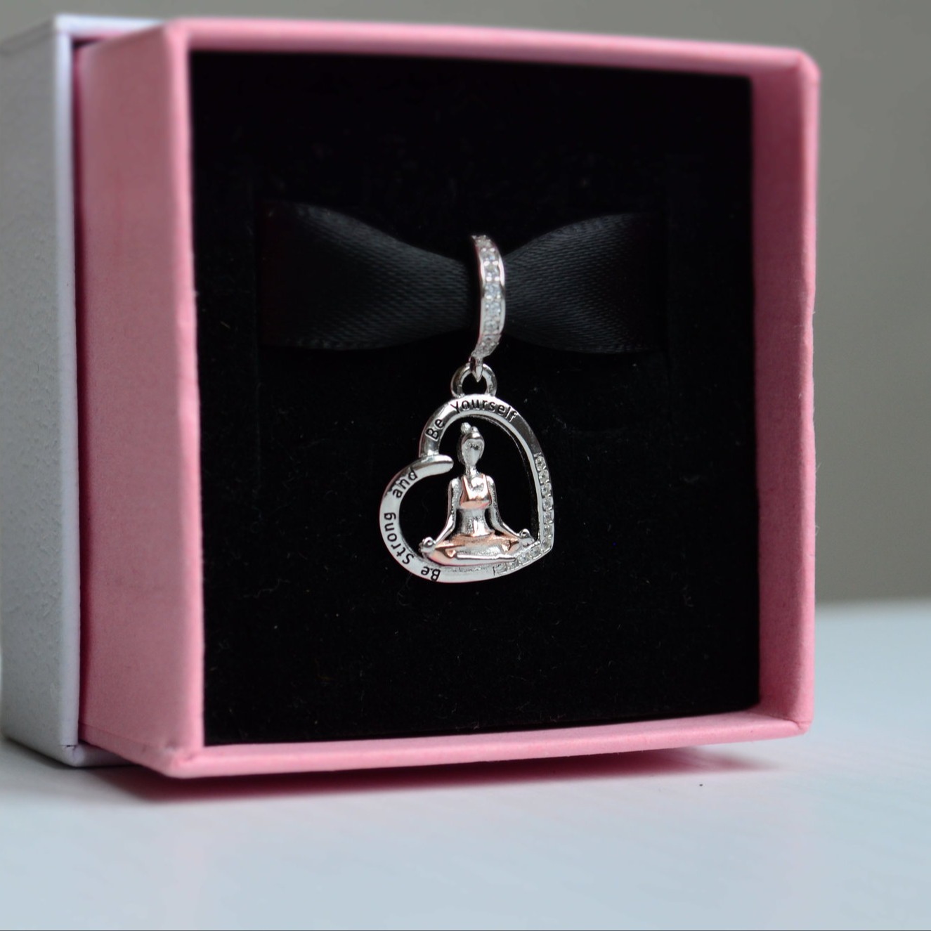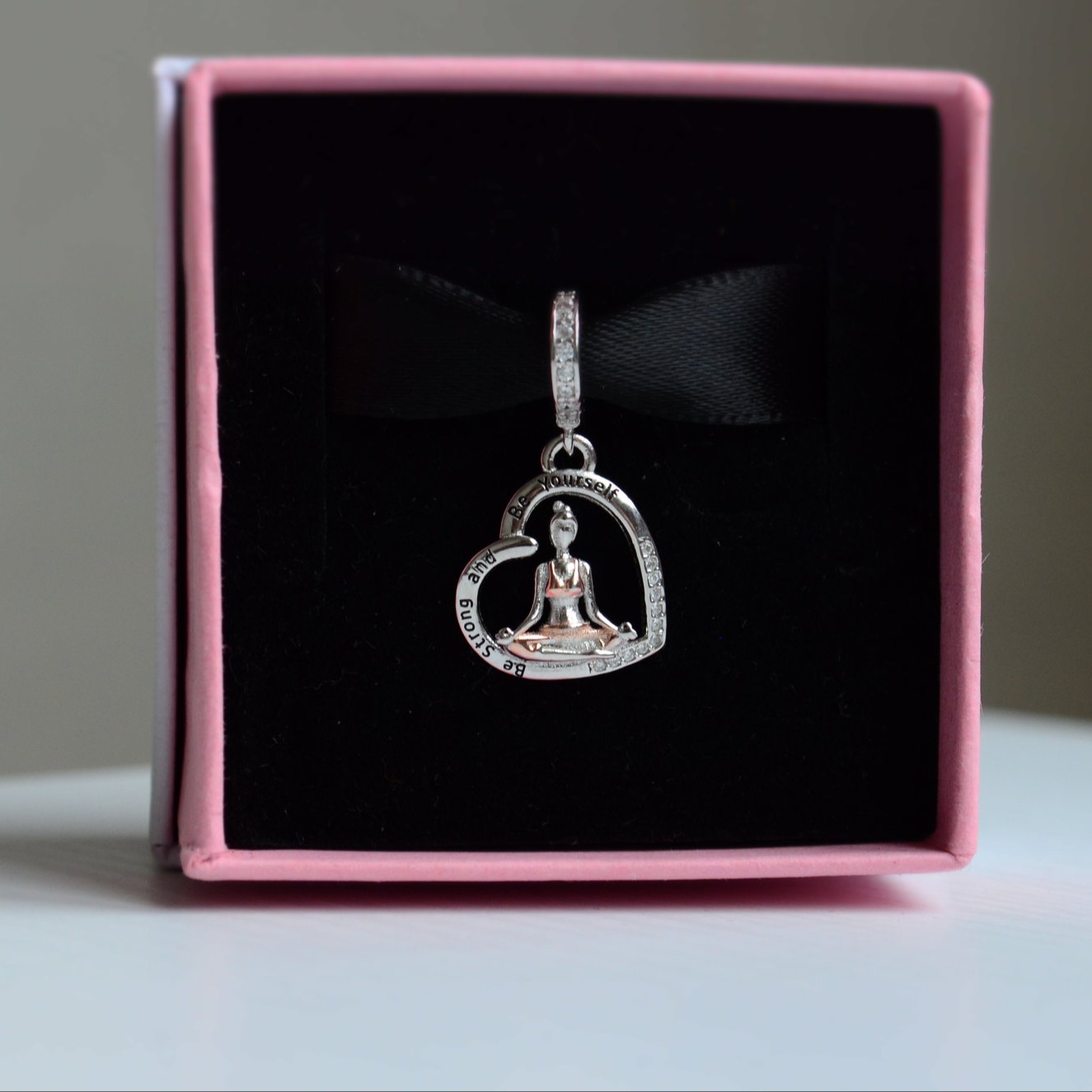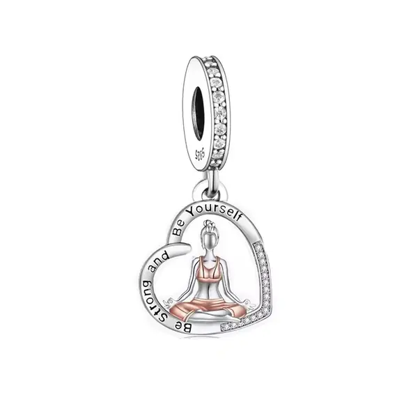 Шарм-підвіска «Yoga» – це справжній талісман для тих, хто шукає баланс, гармонію та внутрішній спокій. Витончений дизайн у формі серця із зображенням медитуючої постаті символізує духовний розвиток, силу розуму та глибоке самопізнання. Напис «Be Strong and Be Yourself» нагадує про важливість залишатися собою та знаходити опору всередині себе.