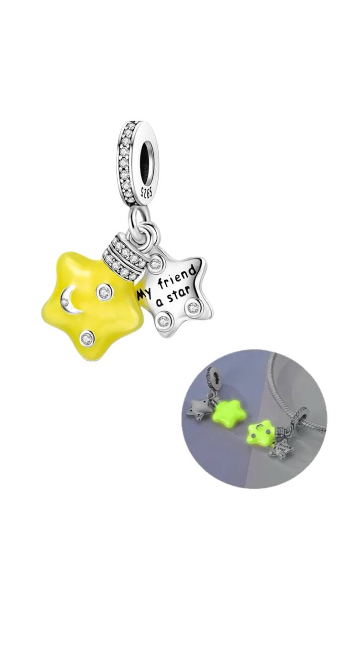 Дозвольте вашому стилю сяяти як яскрава зірка на небесах за допомогою шарм-підвіски "Жовта зірка". Цей унікальний шарм виготовлений з високоякісного матеріалу і оснащений світловим ефектом, який надає йому чарівної аурою в темряві.