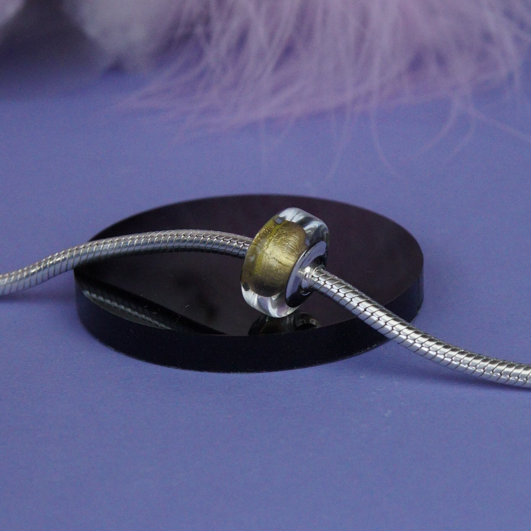 Цей шарм – ідеальний подарунок для тих, хто цінує стиль, розкіш і вишукані деталі. Він здатен стати центральним елементом вашої колекції, що завжди нагадуватиме про важливі моменти та людей. Незалежно від того, носите ви його самостійно чи в парі з іншими шармами, «Золоте скло» завжди привертатиме увагу своєю красою та символізмом.