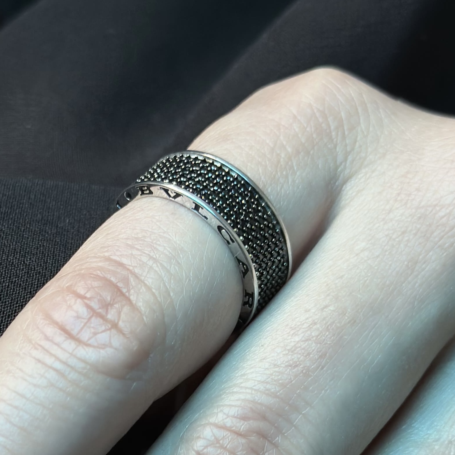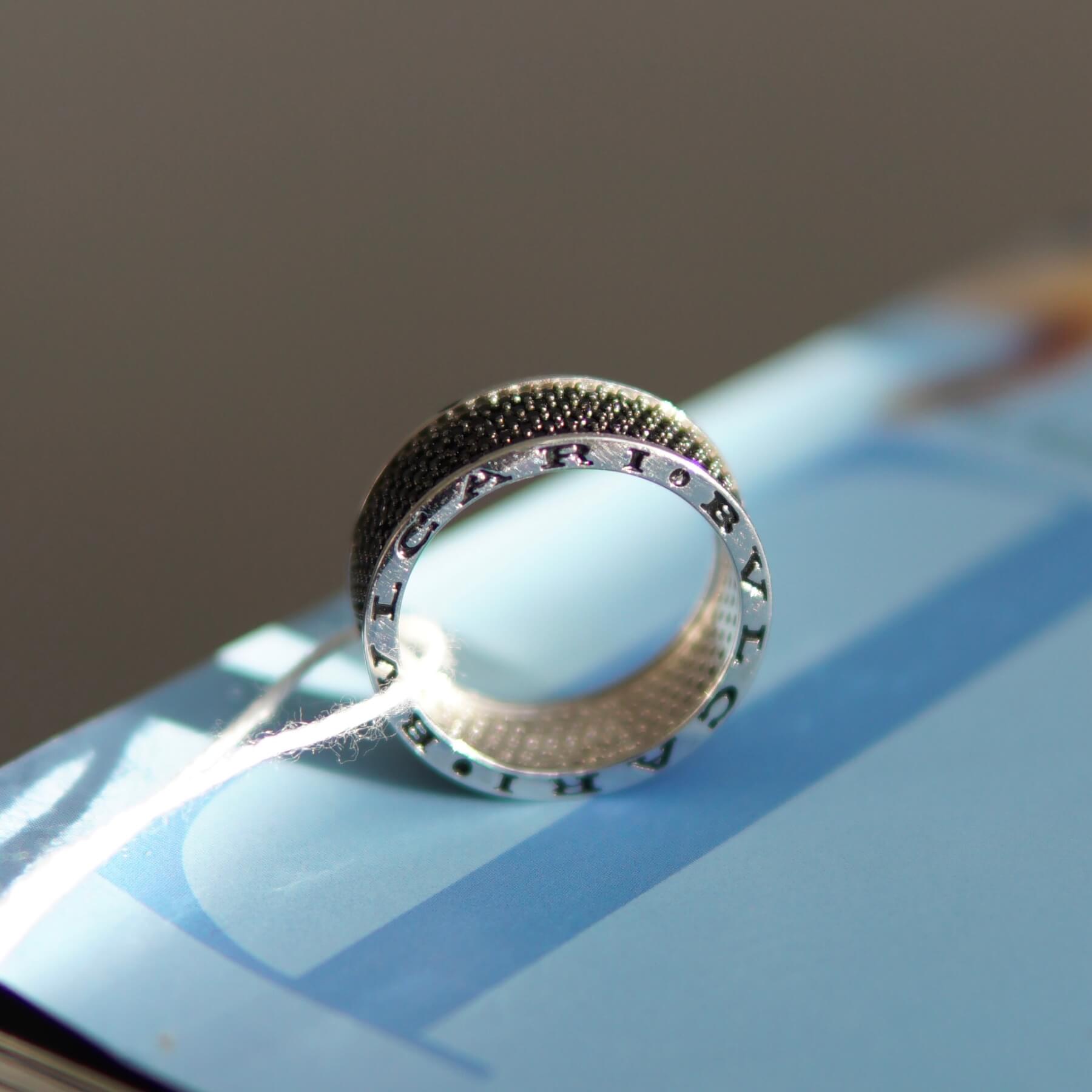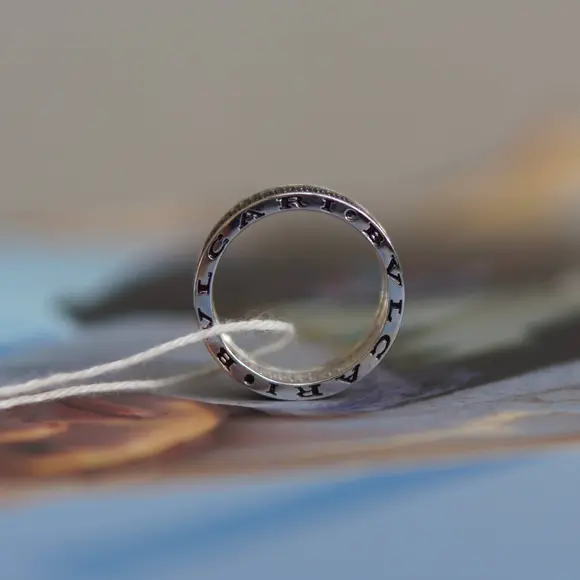 Срібна каблучка BVLGARI з чорними камінчиками стане вашим незамінним символом сили, витривалості і неперевершеного смаку, надихаючи вас на нові досягнення і нагадуючи, що справжня розкіш – це поєднання класики і сучасності.