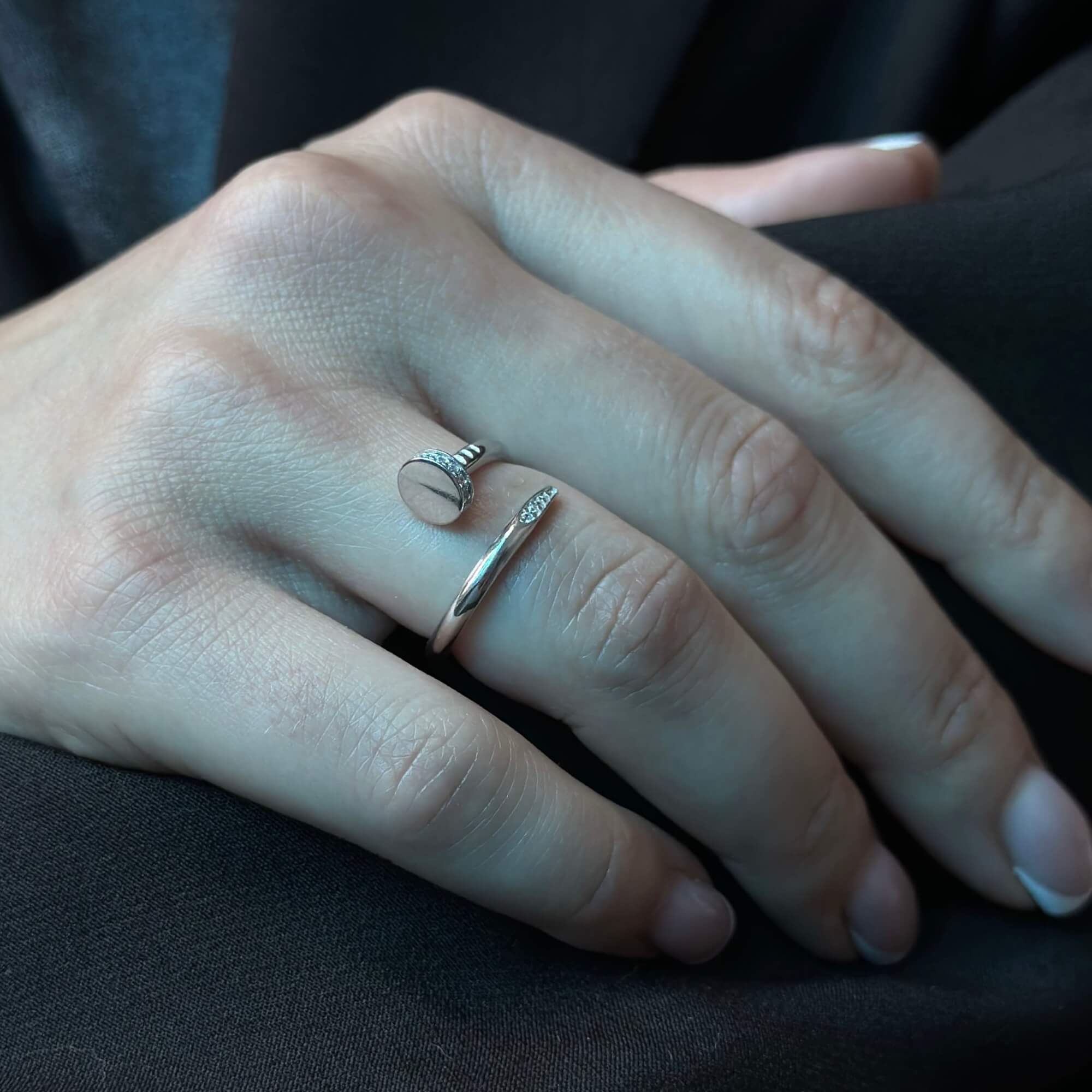 Каблучка «Цвях» — унісекс-модель, яка однаково гарно виглядає і на чоловічій, і на жіночій руці. Вона чудово поєднується з іншими прикрасами: браслетами, ланцюжками або мінімалістичними каблучками, створюючи стильний і гармонійний образ.