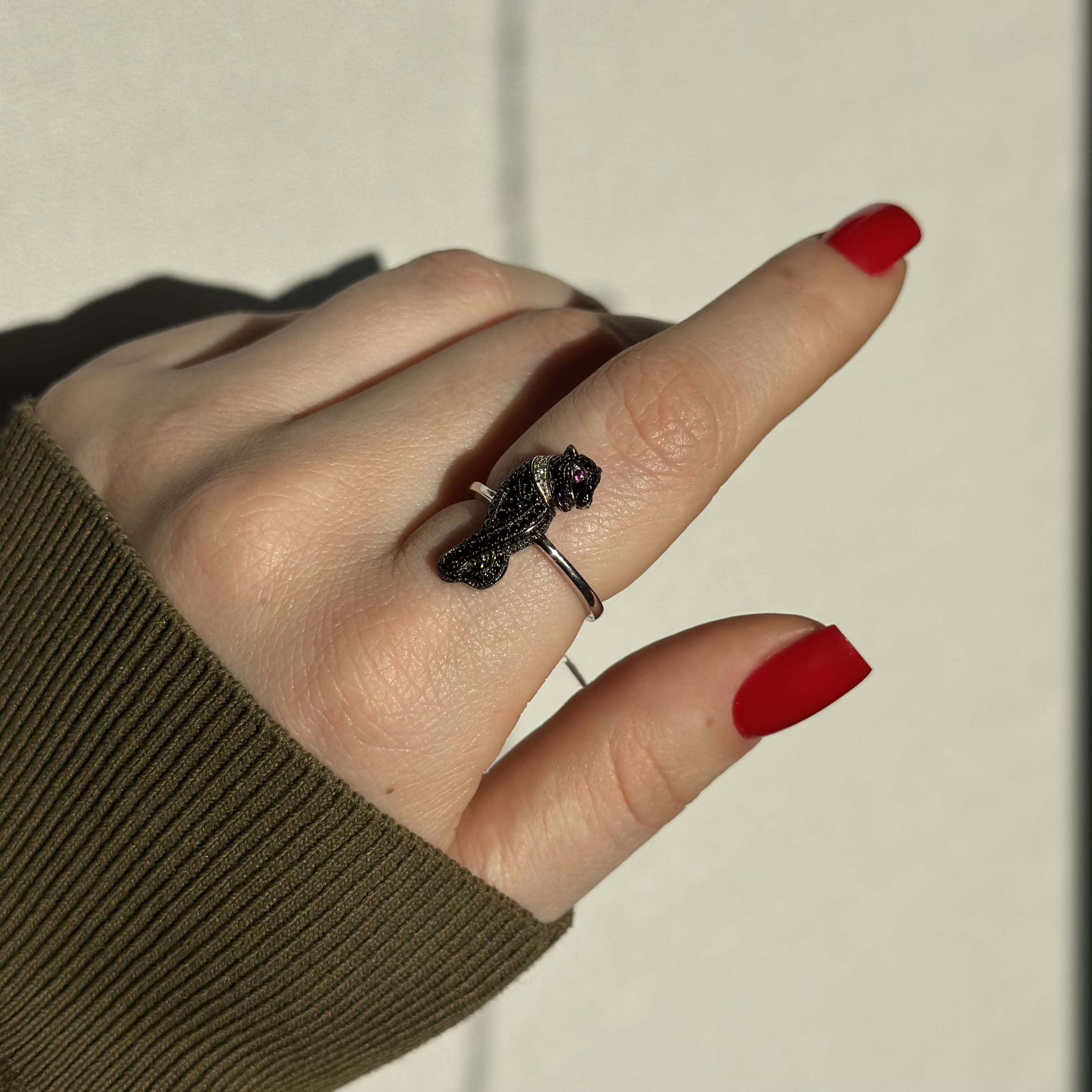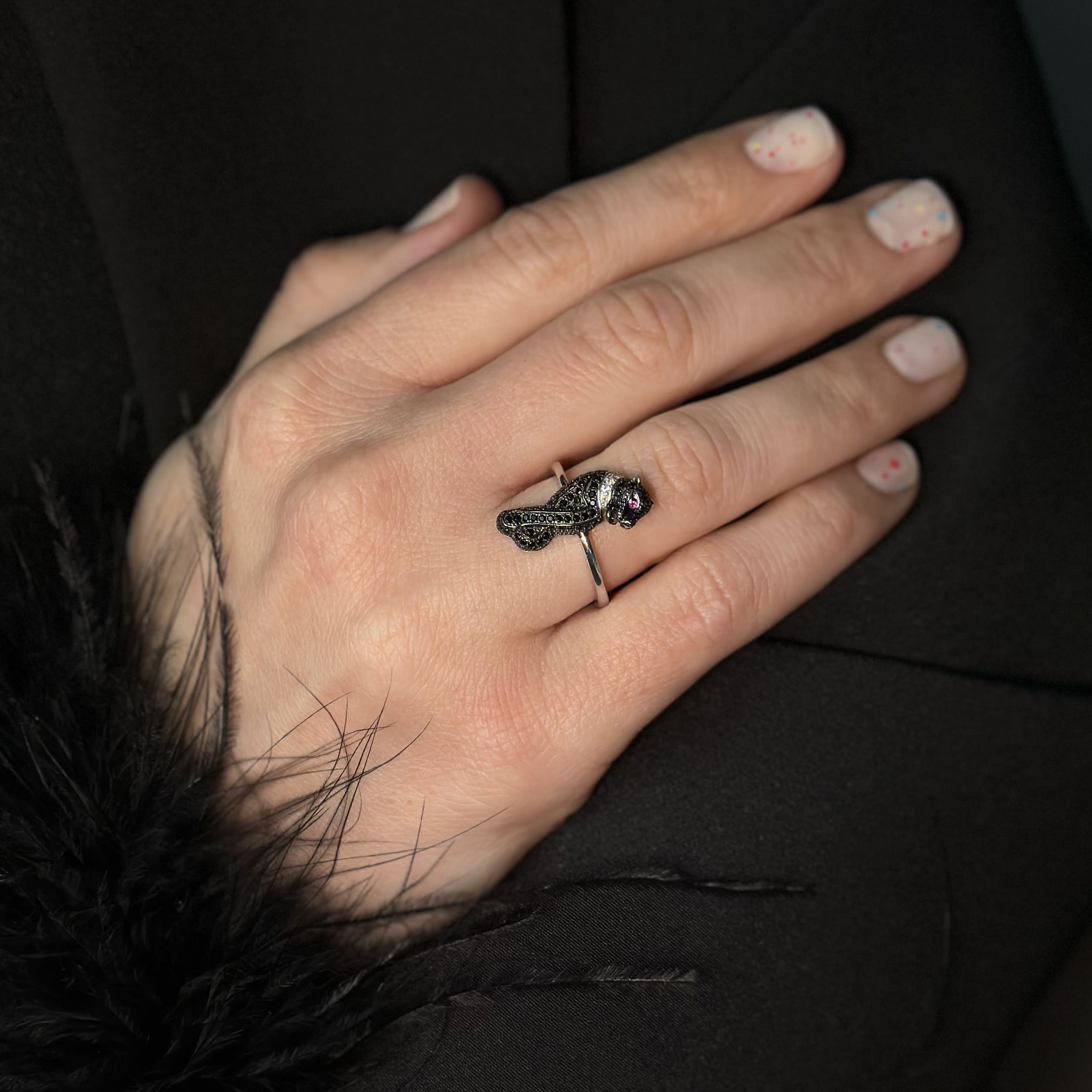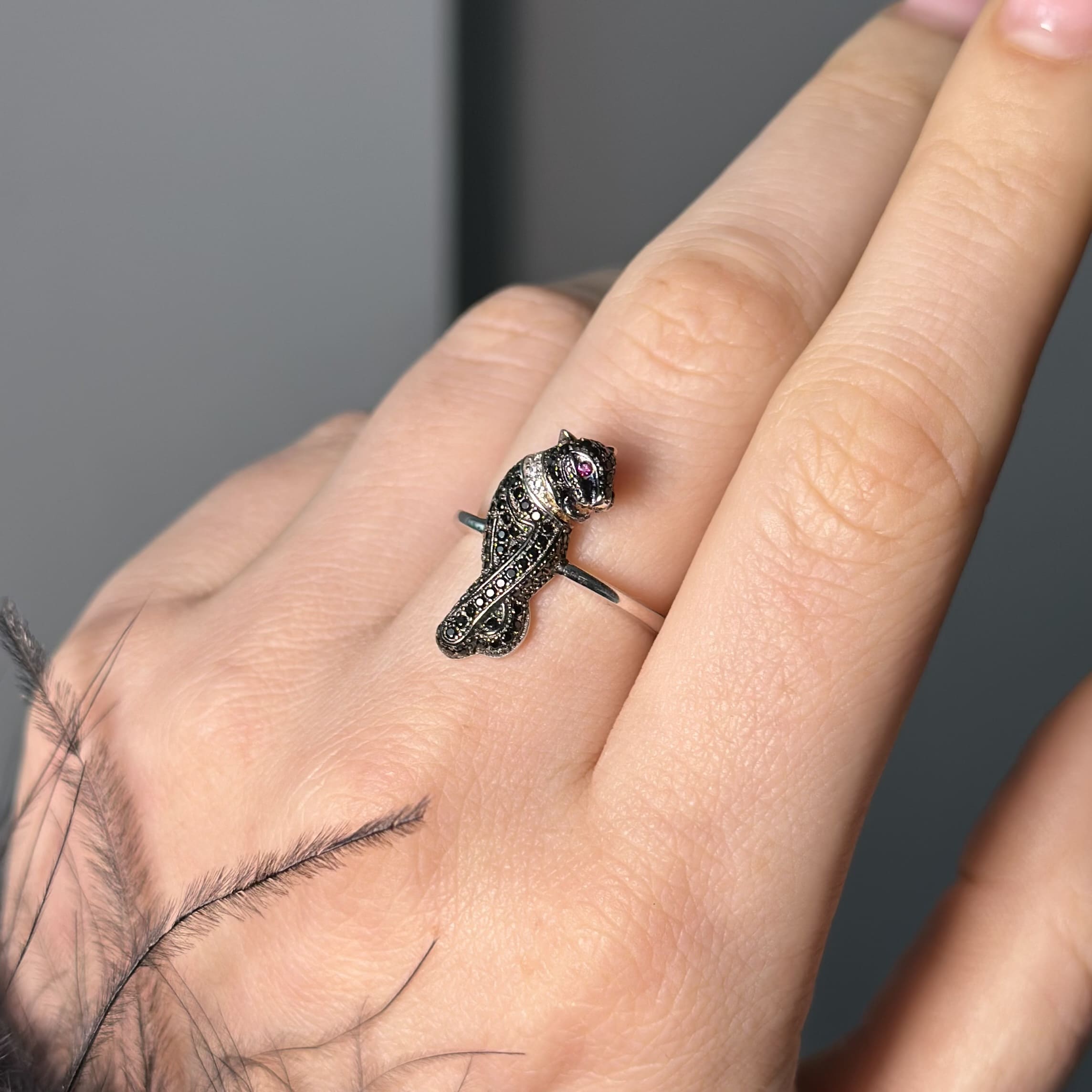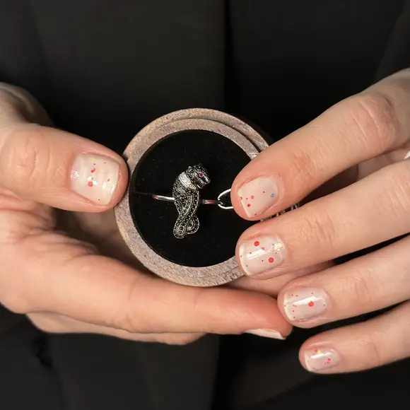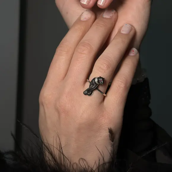Срібна каблучка в стилі "Cartier" чорна пантера