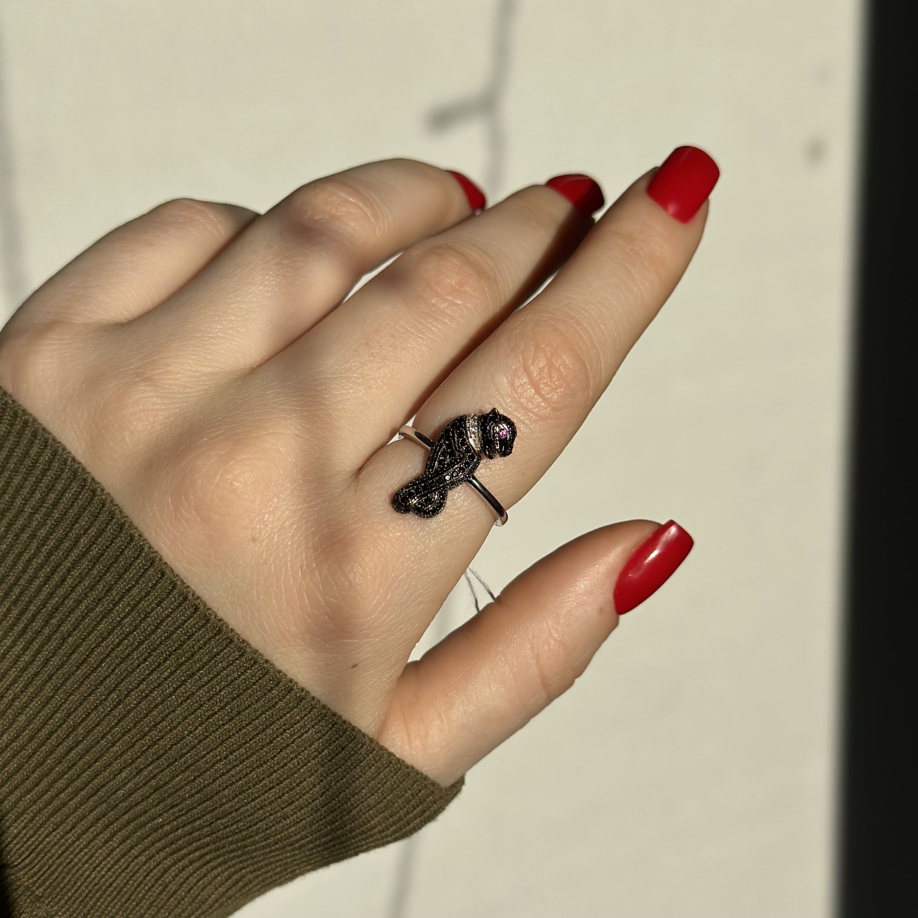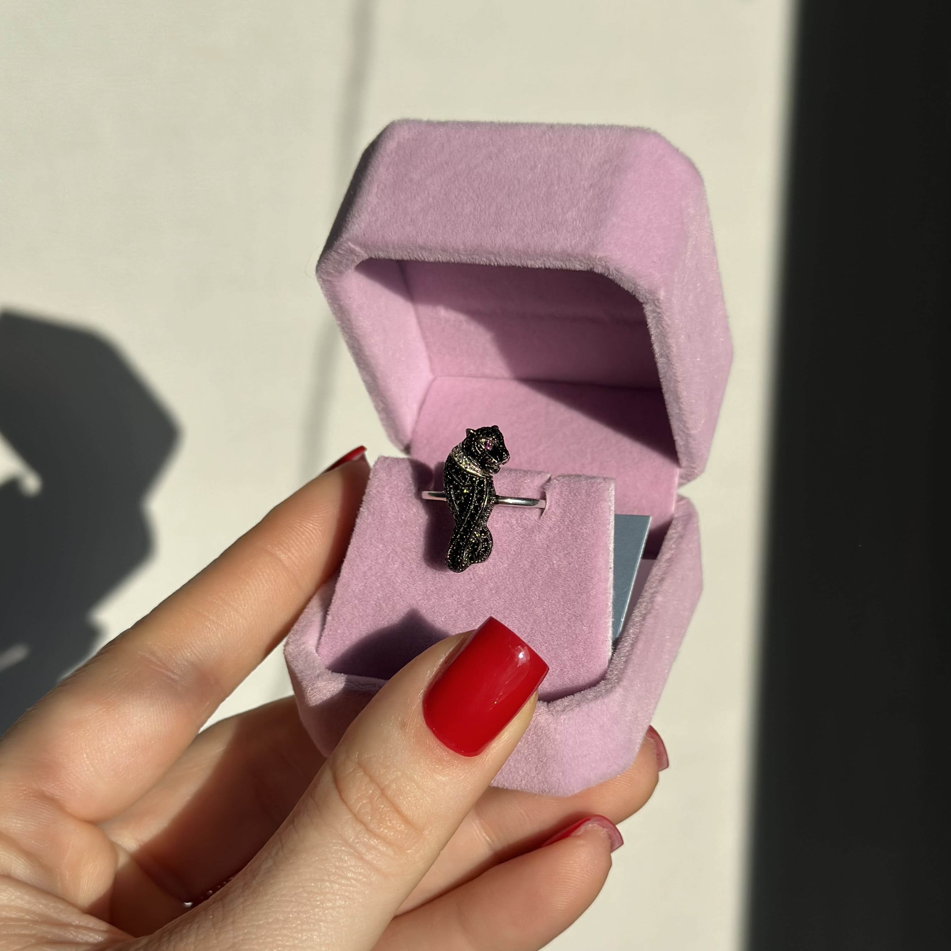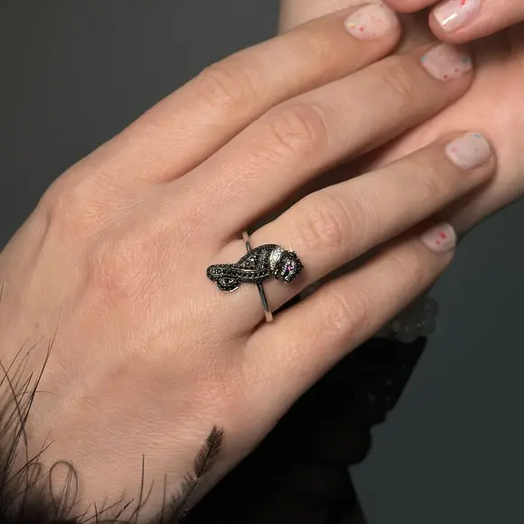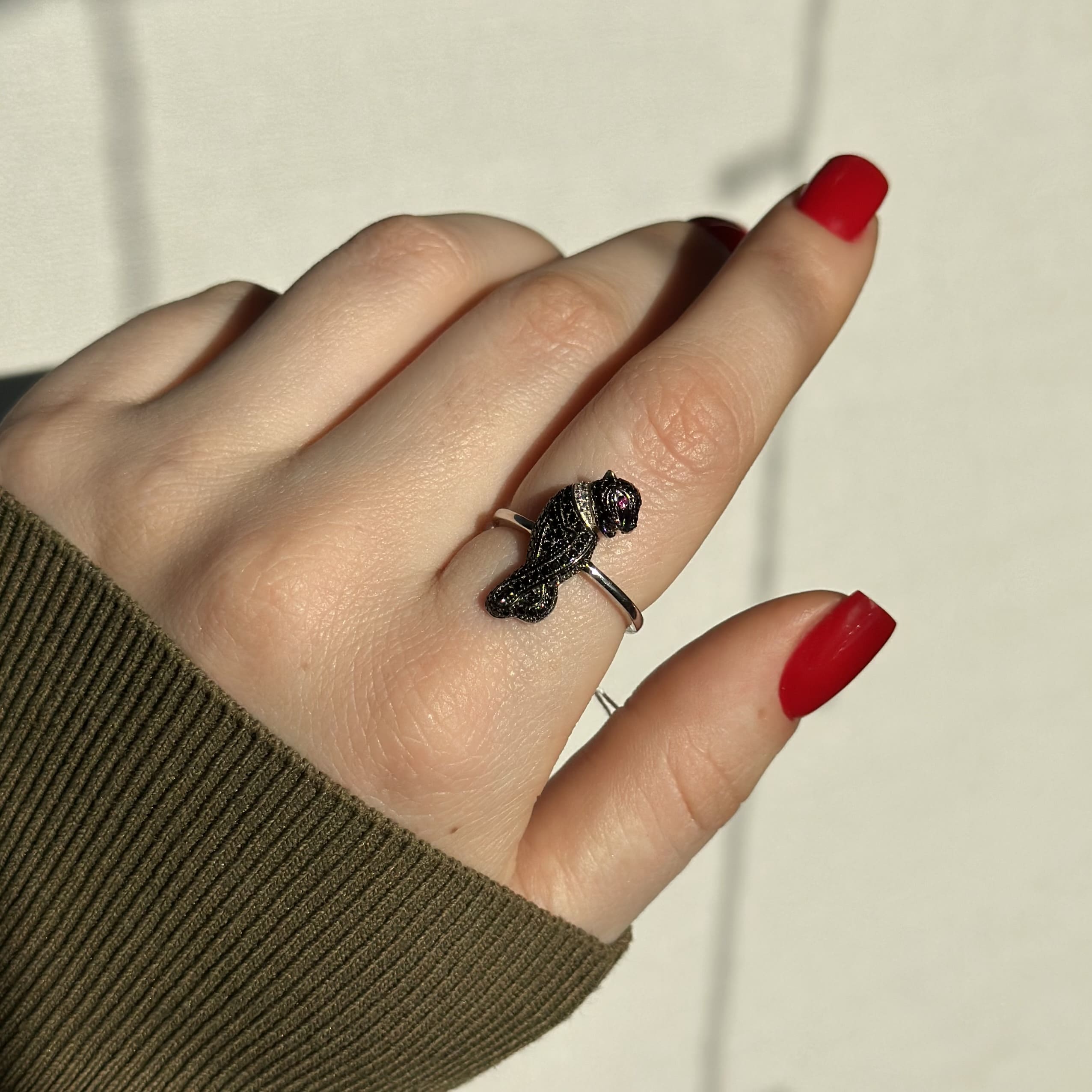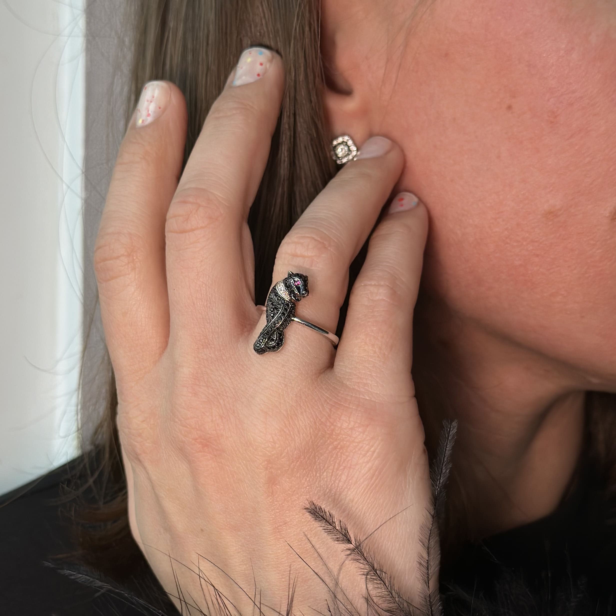 Срібна каблучка в стилі "Cartier" чорна пантера