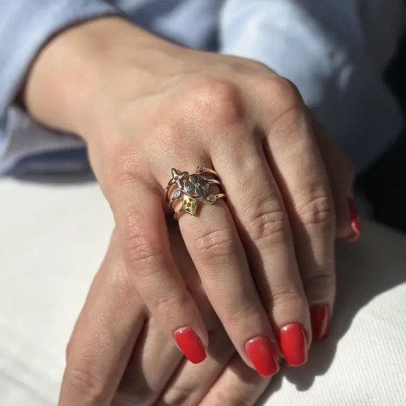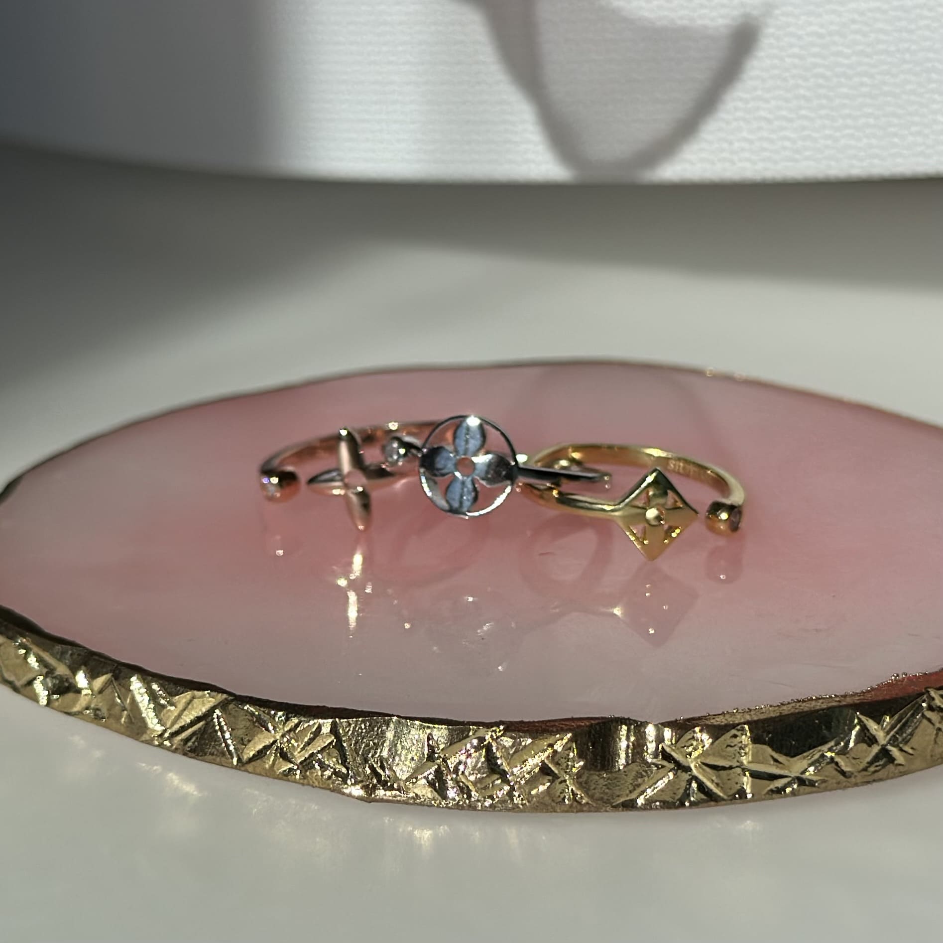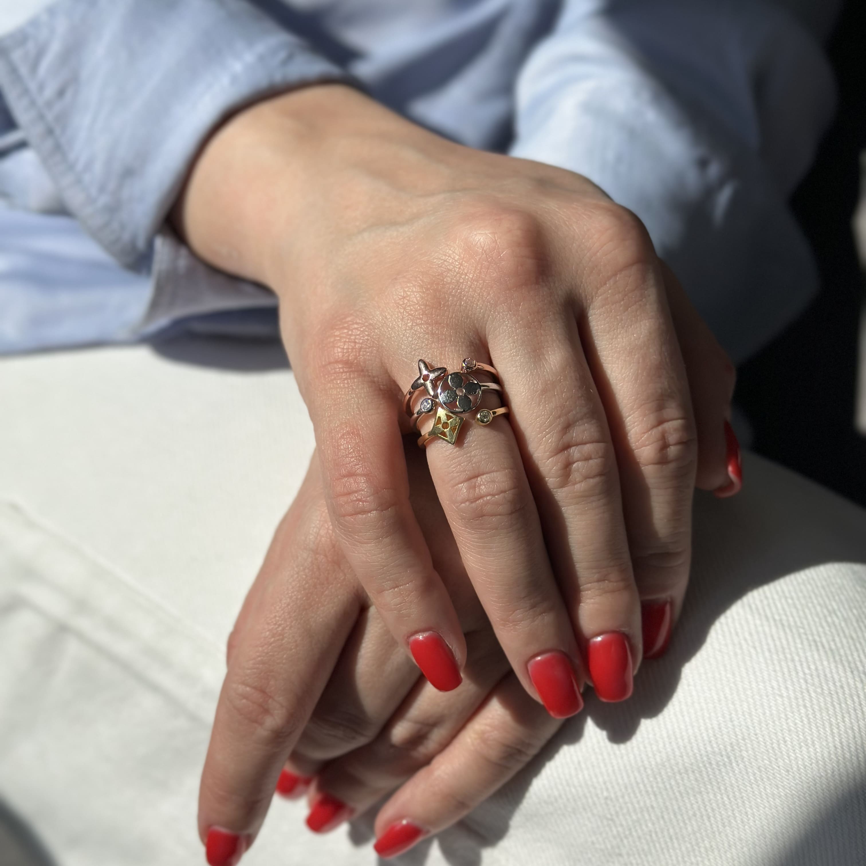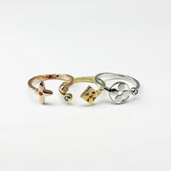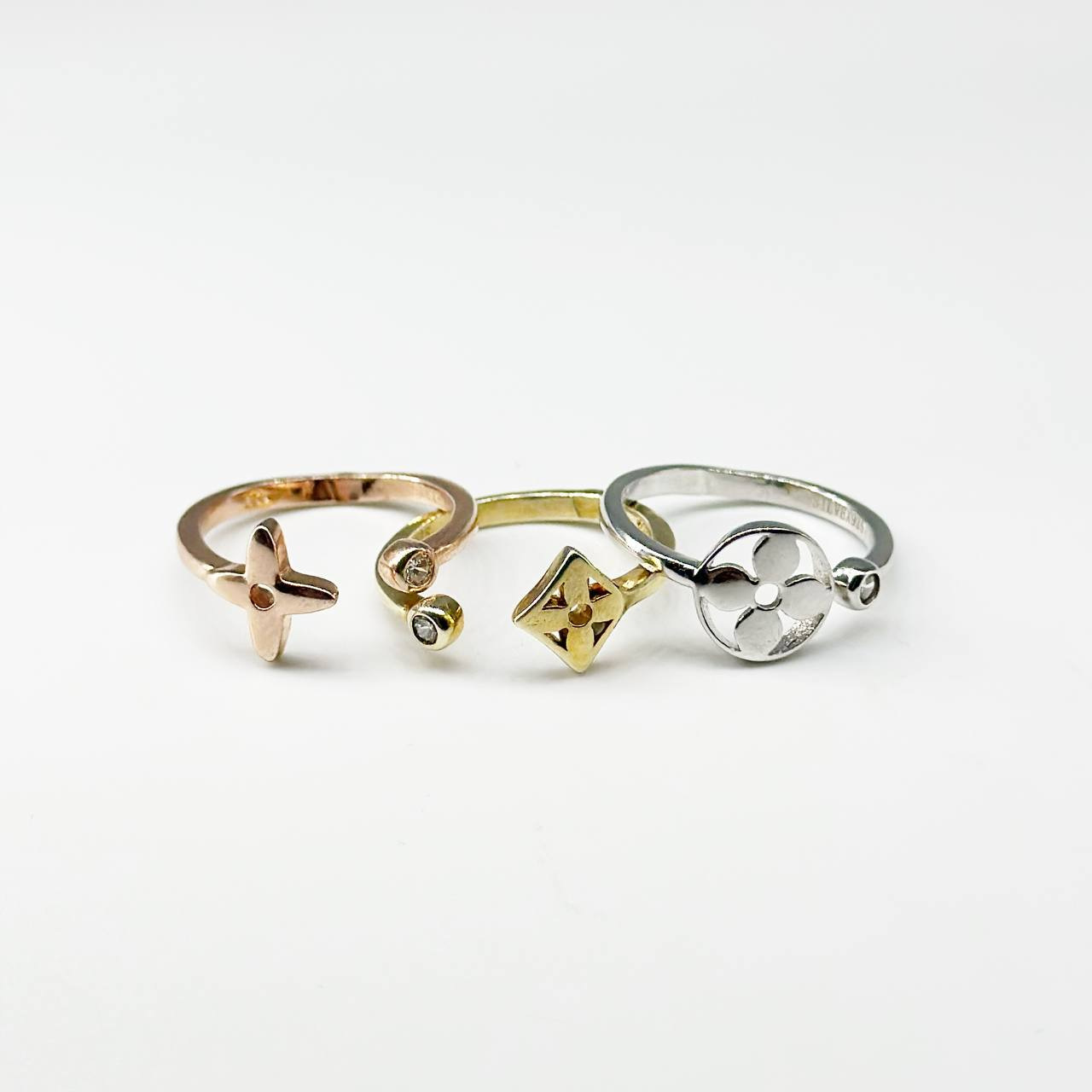 Срібна каблучка трьох колірна в стилі "Louis Vuitton" з фіанітами