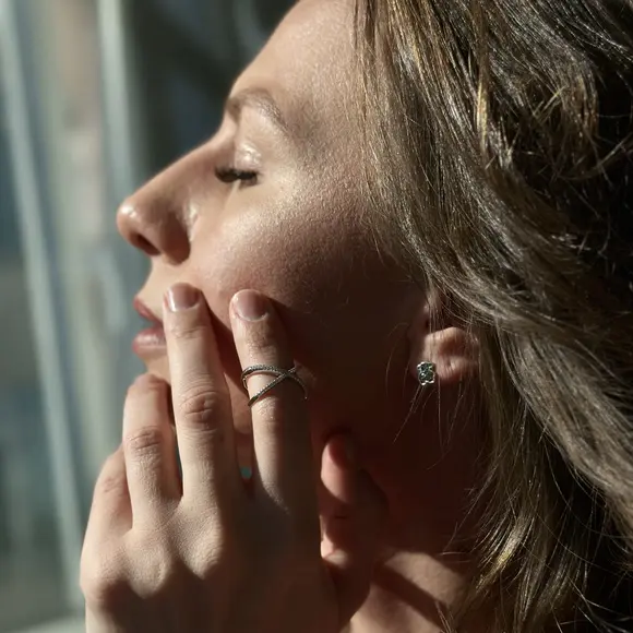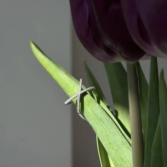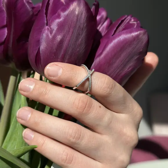 Срібна каблучка в стилі "Louis Vuitton" з фіанітами