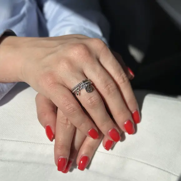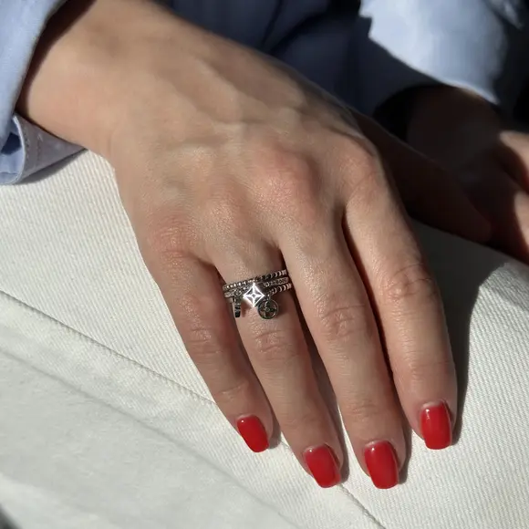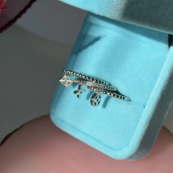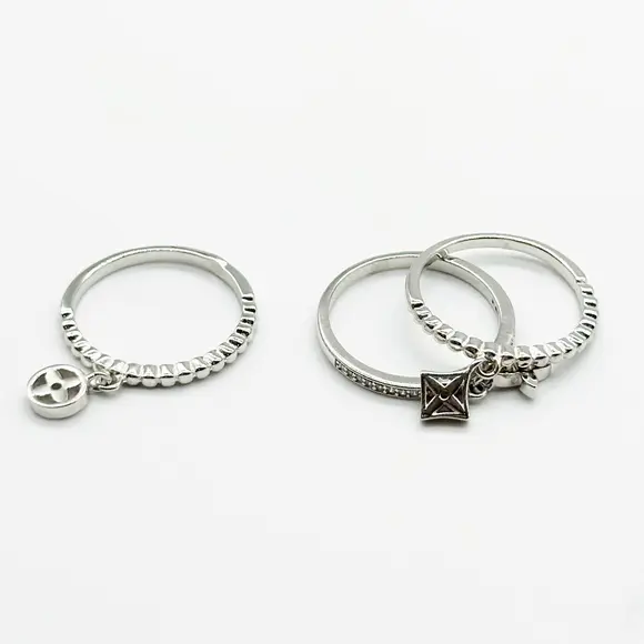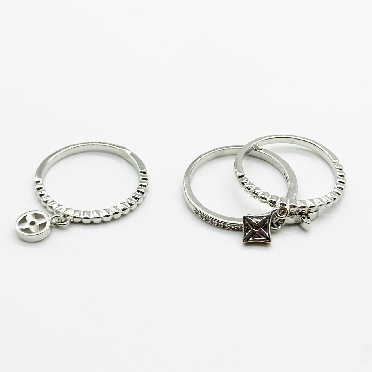 Потрійна срібна каблучка в стилі "Louis Vuitton" зі вставкою фіаніт